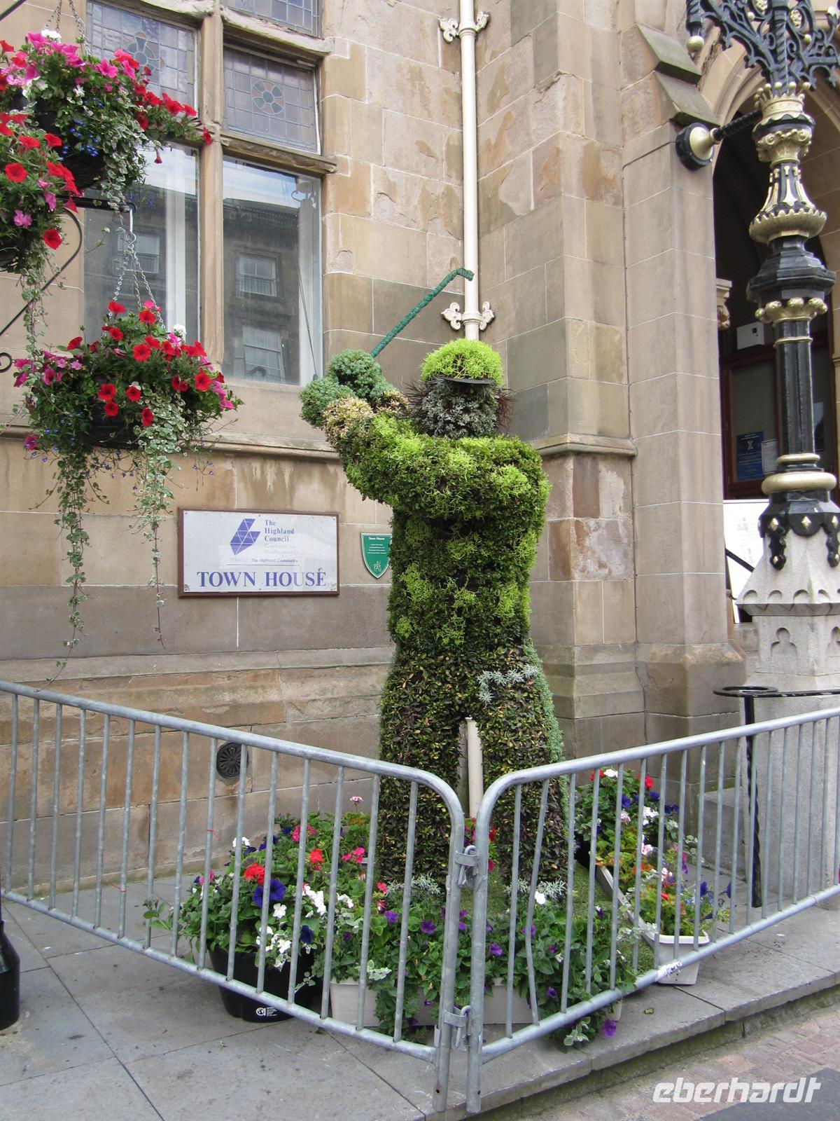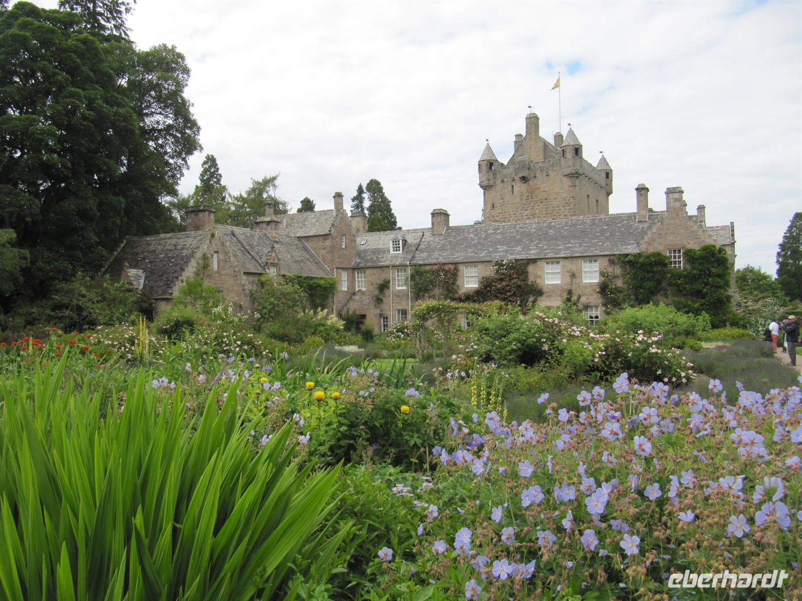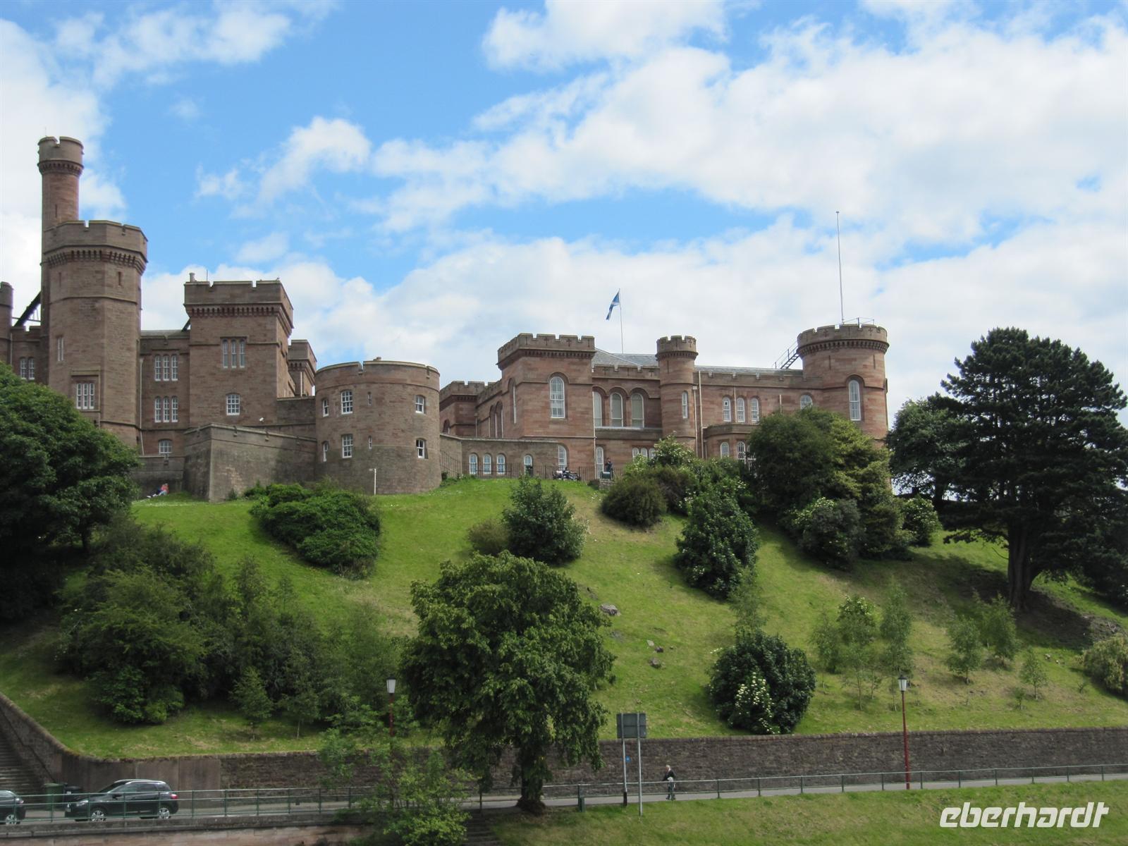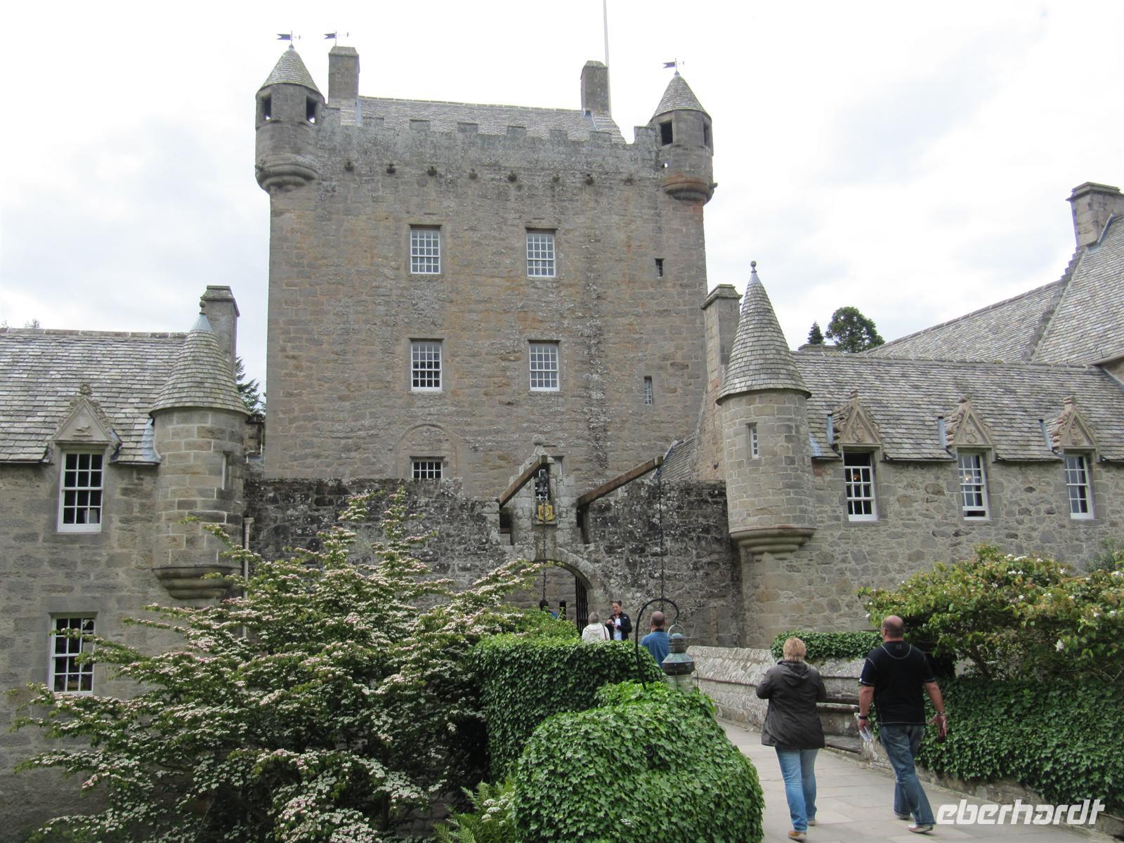 Burg ist zwar heute nur noch eine Ruine, aber dennoch sehr imposant. Die Geschichte der Festungsanlage geht bis ins 7. Jahrhundert zurück und bereits 1692 wurde die Burg gesprengt. In einem kurzen Film erlebten wir sehr anschaulich die Ereignisse aus längst vergangener Zeit. Nun führte uns die Route weiter in die Hauptstadt des Hochlandes nach Inverness. Diese typische schottische Stadt liegt am Fluss Ness. Wir bummelten durch die kleine Innenstadt und sahen das ehemalige Schloss, den Dom und die hübschen kleinen Häuser. So manch einer fand auch noch ein Mitbringsel. Uns Susanne hat sogar den Highländer in Inverness getroffen. Anschließend setzten wir die Fahrt und erreichten das Cawdor Castle. Dieses Schloss befindet sich heute noch in Privatbesitz und wird zum Teil noch bewohnt. Wir besichtigten die Räume des Schlosses. Sie waren mit vielen antiken Möbeln und Kunstwerken, aber auch mit vielen persönlichen Dingen der Besitzer ausgestattet. Man konnte sich gut vorstellen, wie die Hausherren an kalten Winterabenden vor den Kaminen sitzen und ein gutes Buch lesen. Besonders sehenswert waren der große Garten und die gepflegte Parkanlage. Wir spazierten durch den Blumengarten und durch den Irrgarten. Im Naturgarten bestaunten wir die wunderschönen alten Bäume, die sicher schon mehrere Jahrhunderte alt waren. Durch die Landschaft des Hochlandes mit den Hügeln und Feldern und kleinen Orten kehrten wir zum Schiff zurück. Invergordon liegt in einer Meeresbucht mit einer recht engen Einfahrt. Natürlich wollten wir das Auslaufen des Schiffes erleben. Es war ein Erlebnis an der schottischen Landschaft vorbeizugleiten. Petrus war uns auch noch hold und bescherte uns einen wunderschönen Sonnenuntergang.