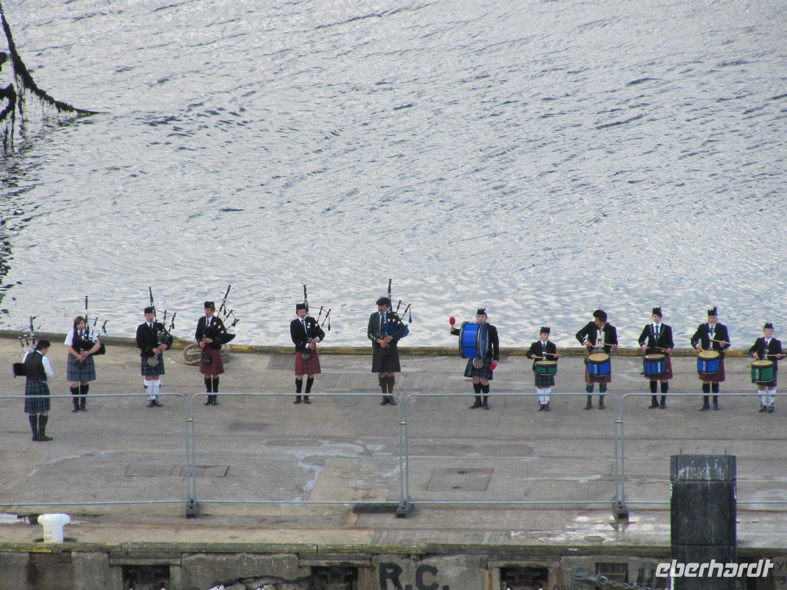 Am frühen Morgen legte unser Schiff in Invergordon in Schottland an. Unsere Gäste hatten alle unterschiedliche Ausflüge gebucht. Wir erlebten unter anderem die Highlights in der Umgebung von Invergordon. Zunächst führte uns die Tour durch die schottische Landschaft. Vorbei an den so typischen Cottages, die aus rotem Sandstein erbaut wurden, ging es in das Hochland zu Loch Ness. Trotz größter Bemühungen konnten wir Nessi, das Seeungeheuer leider nicht entdecken. Deshalb besuchten wir Urquhart Castle. Diese ehemalige