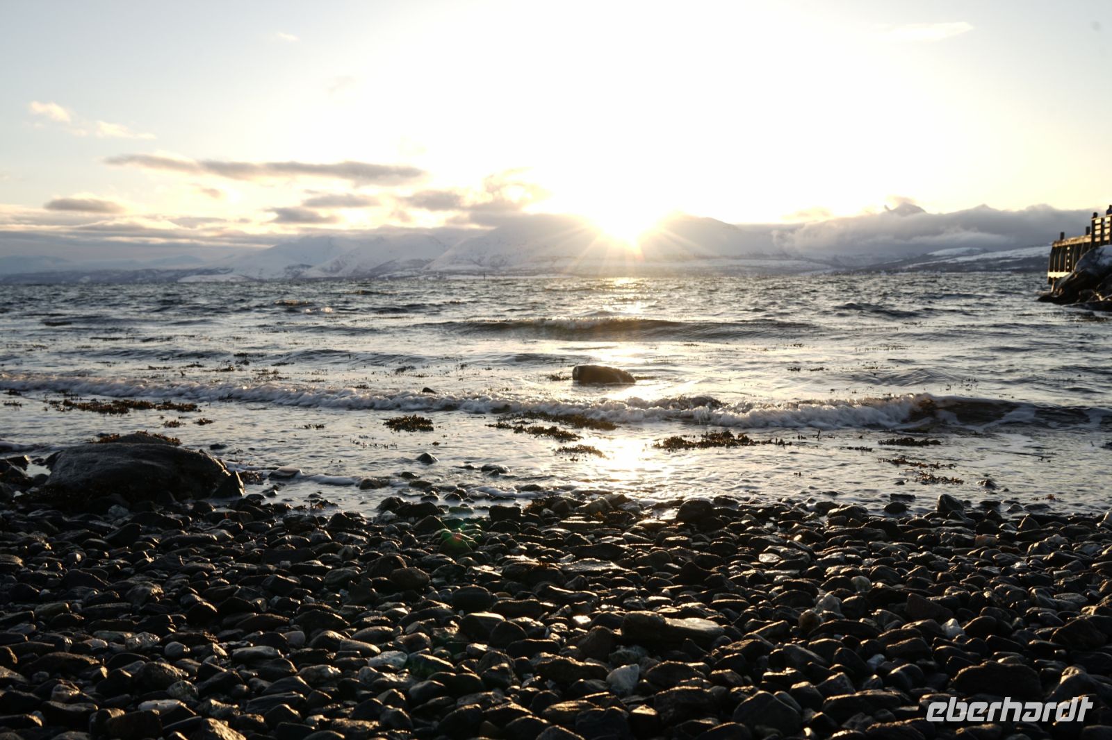 Trotz kurzer Nacht, waren alle bei bester Laune und auch das Wetter punktete wieder vollends auf. Doch zunächst hieß es erst einmal die Theorie studieren. Bei einem kleinem Workshop freuten wir uns schon sehr auf die Erlebnisse der nächsten Tage. Kurz nach Mittag starteten wir, um vom Fjellheisen den Sonnenuntergang zu fotografieren. Auch hier wurden wir nicht enttäuscht und bekamen wunderbare Lichtverhältnisse, sowie traumhafte Ausblicke über das Stadtgebiet Tromsö. Den Rückweg bestritten wir zu Fuß, vorbei an der Eismeerkathedrale und über die Tromsö-Brücke. Nach den Abendessen hieß es: „Auf zu den Polarlichtern“. Unsere Euphorie wurde kurz gebremst, als unser Bus beim Weg zum ersten Punkt stecken blieb. Mit viel Kraft, einer Schippe und der Unterstützung der Gruppe, schaffte es unser Chauffeur Paul den Bus wieder frei zu bekommen. Zum Glück gab es gerade keine Polarlicht-Aktivität, sodass wir unsere Fahrt ohne Einbuße fortsetzen konnten. Leider war diese Nacht die Aktivität nicht so stark, weshalb wir nur einen leichten Schimmer fotografieren konnten.