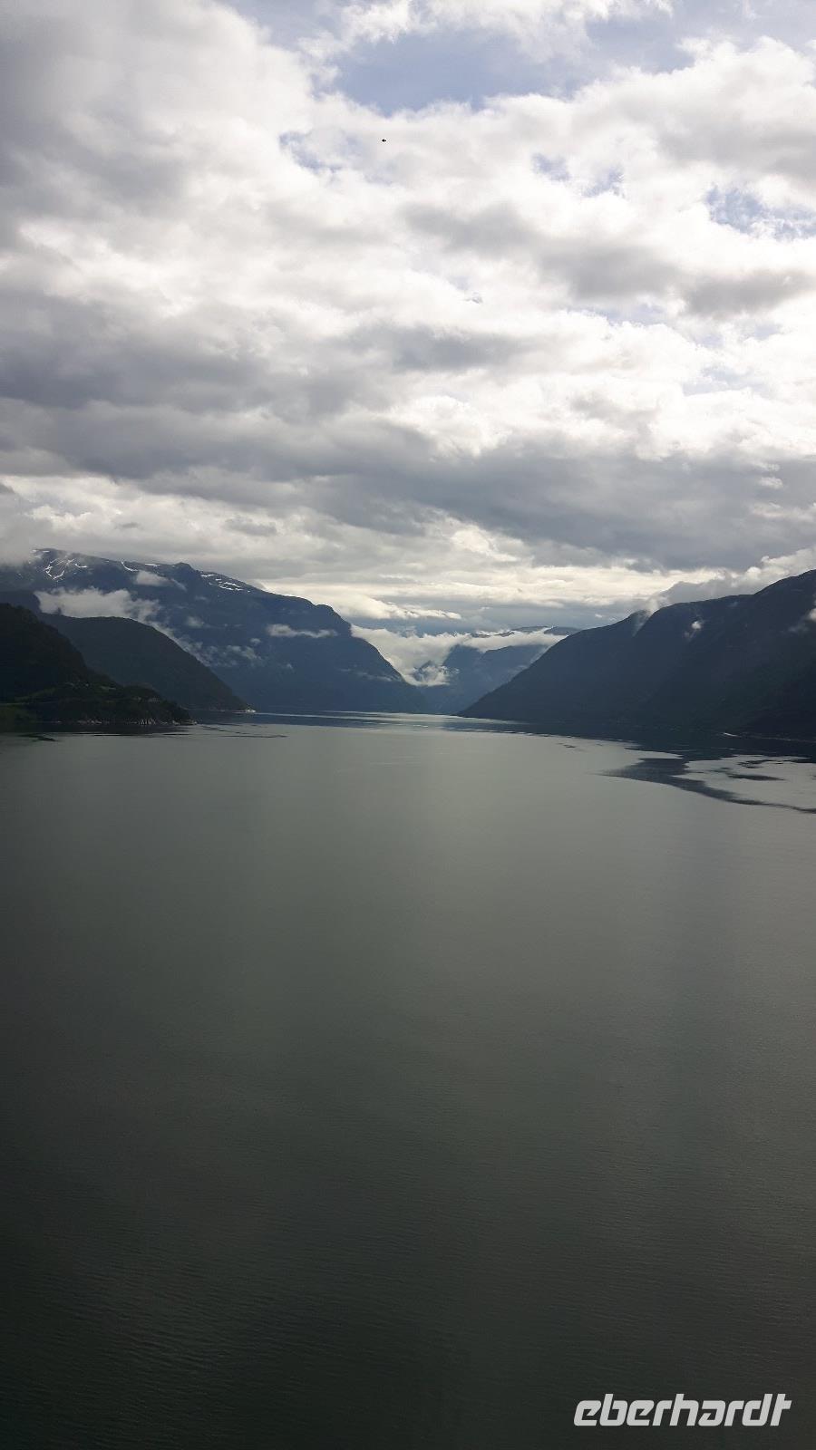 Eine Straßensperre zwingt uns heute zu einem Umweg über Aurland um Flam, ein idyllisches Städtchen am Aurlandsfjord zu erreichen.