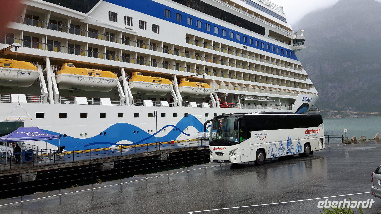 Heute Morgen beobachten wir wie die AidaSol am Kreuzfahrtkai in Eidfjord festmacht. Dann beginnen wir unseren Ausflug. In Tyssedal, am Sörfjord gelegen, befindet sich das einzige unter Denkmalschutz stehende Wasserkraftwerk Norwegens. Bei einer interessanten, kurzweiligen Führung lernen wir die faszinierende Geschichte der Elektrifizierung Norwegens kennen und erfahren nebenbei viel über die Lebenssituation damaliger Generationen.