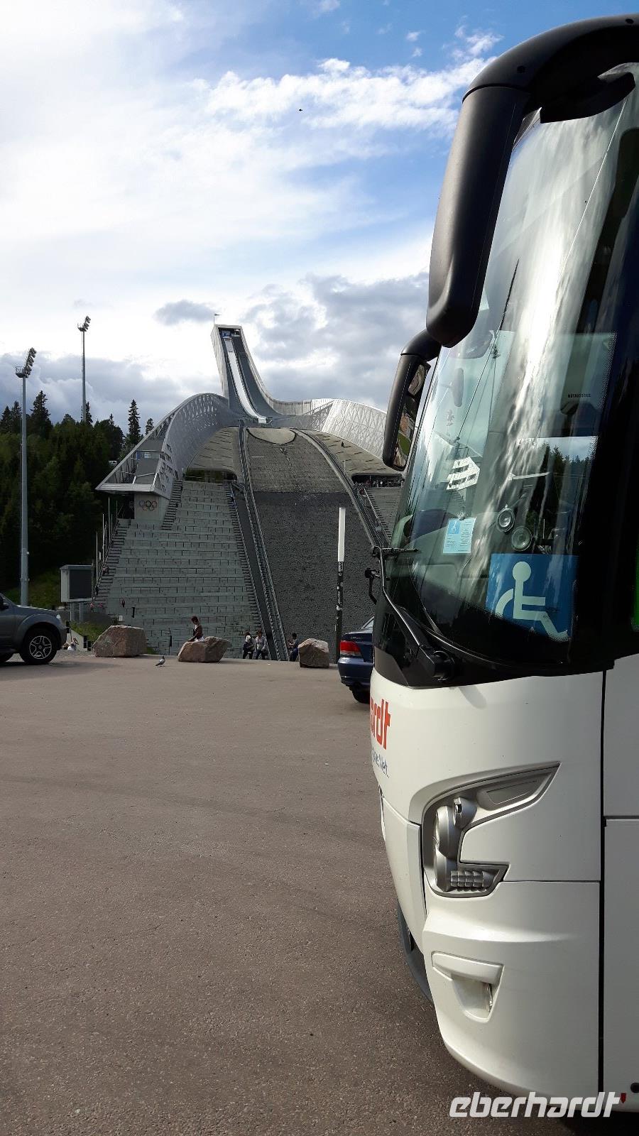 Bevor wir dann zu unserem Hotel fahren geht es noch auf den Holmenkollen. Der Hausberg der Osloer ist weithin als Mekka des Wintersports bekannt. So bestaunen auch wir die neue Sprungschanze, das Biathlonstadion und nicht zuletzt auch die phantastische Aussicht auf die Stadt und den Fjord