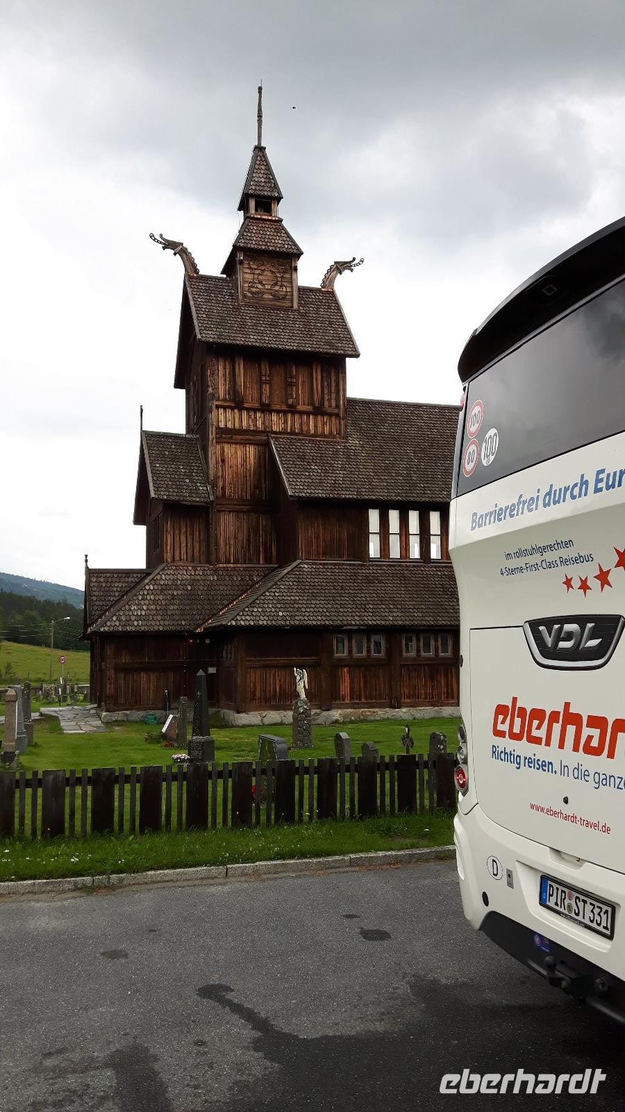 Heute verlassen wir Eidfjord und fahren über die Hardangervidda vorbei an Geilo und durch das Hallingdal nach Oslo. An der alten Stabkirche von Torpo legen wir eine Pause ein.