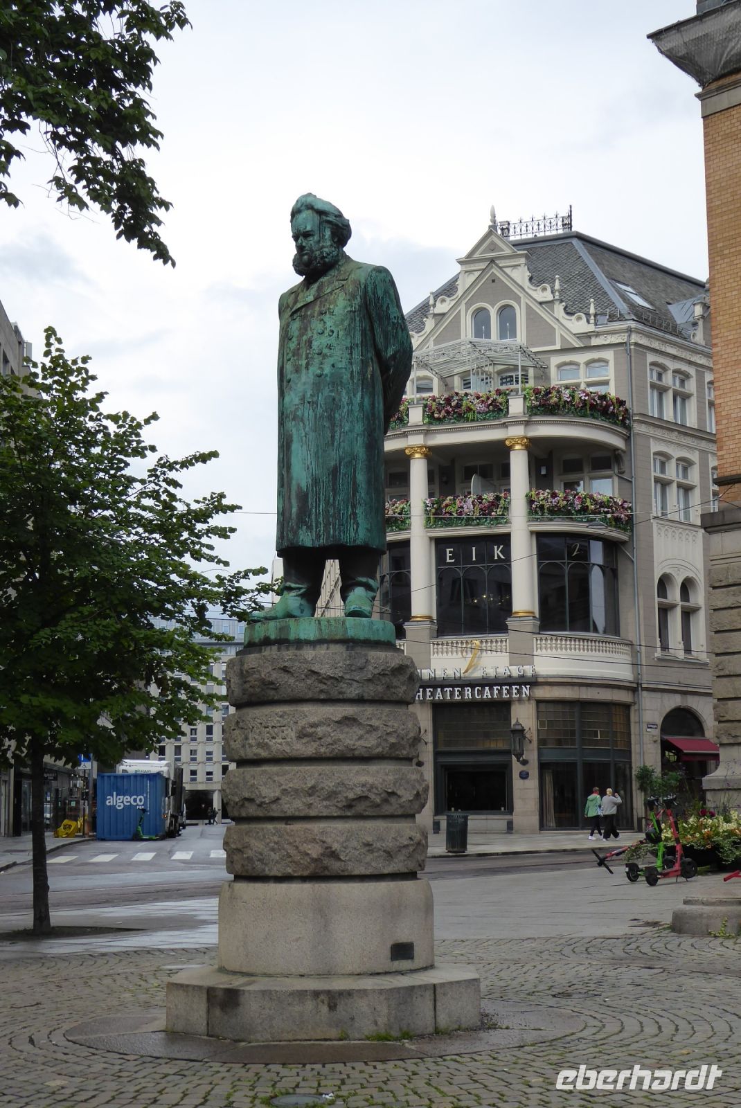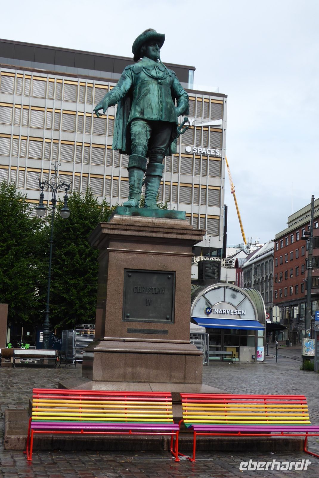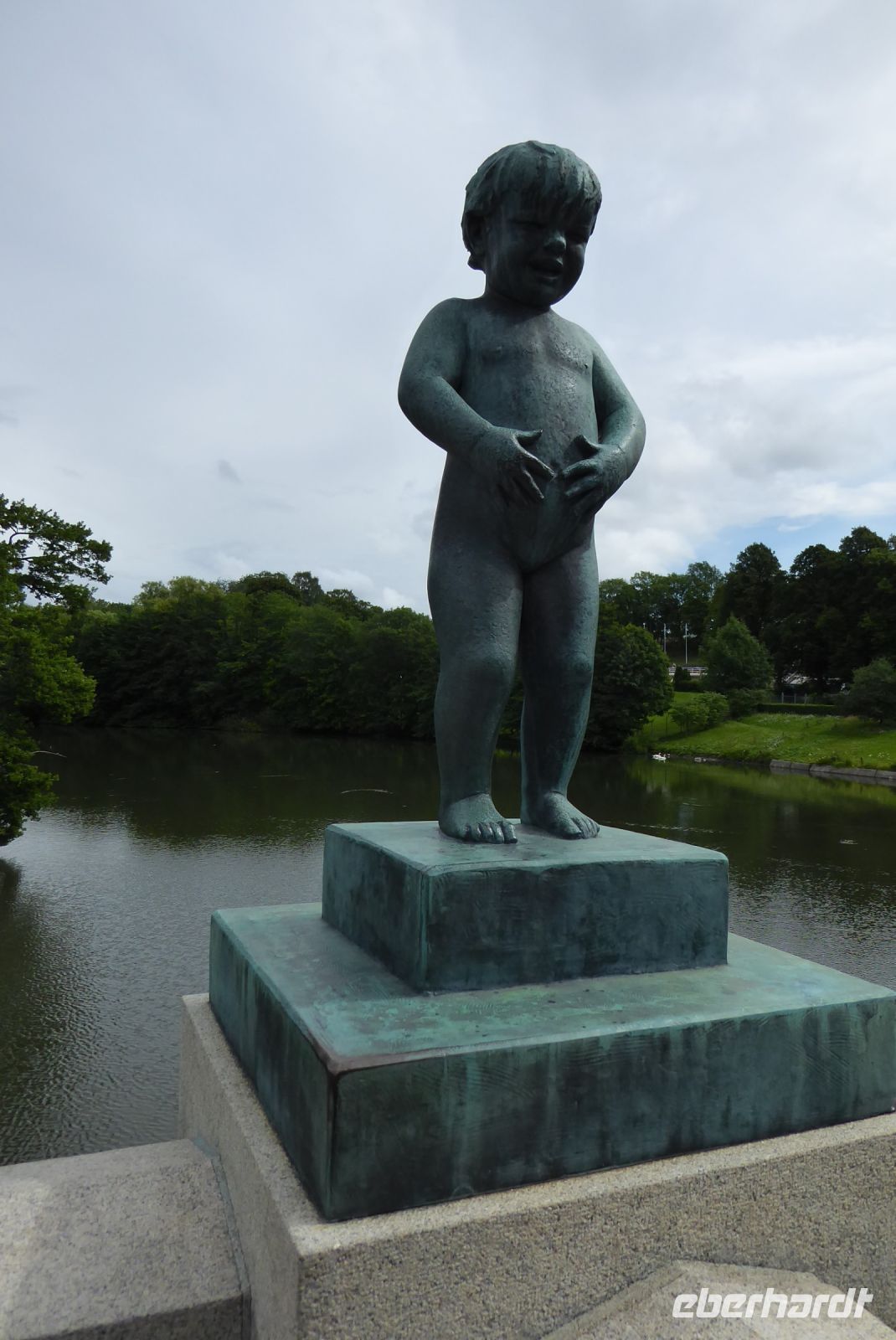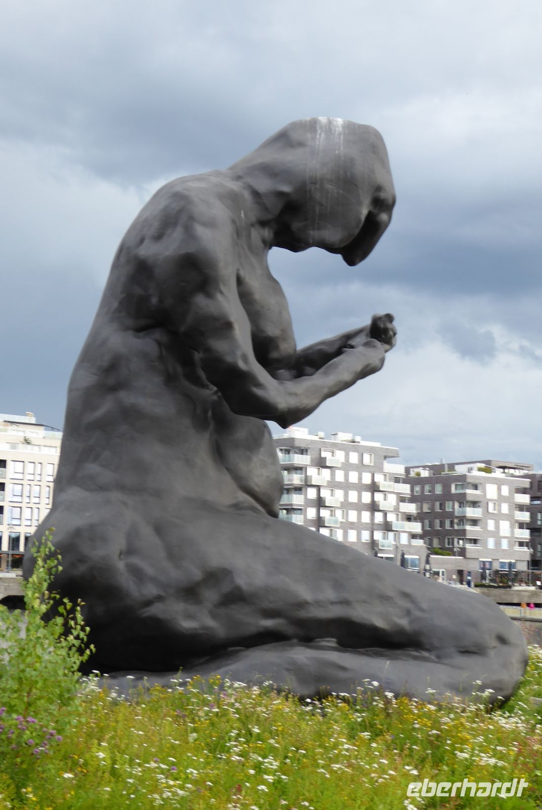 Nach einem sehr guten Frühstücksbuffet - wieder im angeschlossenen Restaurant - erwartete uns pünktlich unser Guide Oskar Hansen. Er sollte uns in drei Stunden Oslo zeigen und erklären. Nach einer kurzen Besprechung RL mit lokalem Guide schickten wir den ebenfalls bereitstehenden Bus erstmal weg, da wir die Innenstadt zu Fuß erkunden wollten. So konnten wir die Sehenswürdigkeiten der Stadt auch wirklich sehen, fotografieren, und Oskar gab uns dazu sehr fachkundige Erläuterungen. Da wir die neuen Gebäude schon am Vortag aus der Nähe und ausgiebig erleben konnten, gab es hier nur eine kurze Erklärung der Gebäude - in Sichtweite - und dann ging es in die Hauptstraße der Fußgänger, die vom Bahnhof schnurstracks zum Schloß führt, die Karl-Johans-Gate. Domkirche, Parlment "Storting", Universität,Nationaltheater und Schloß, alles aus der Nähe und in Ruhe. Weiter ging es zum Rathaus, das alleine schon viel Zeit benötigt hätte, zum Nobel Fredscenter, und dann zum Bus, denn die halbe Zeit war wie im Flug vergangen, und es gab ja noch mehr zu sehen. Der von Touristen und Bewohnern gern besuchte Vigelandspark, eigentlich Frognerpark, ist alleine schon für mehrere Stunden gut.