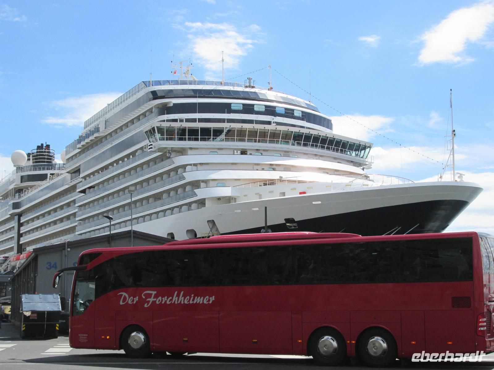 Nach einer kurzen Fährpassage ging es über die "Adlerstrasse" nach Geiranger am gleichnamigen Fjord, in dem sich 1 Kreuzfahrtschiff befand.