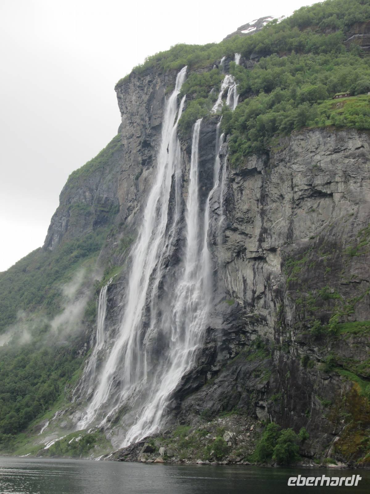 Die Fährpassage Geiranger-Hellesylt erwartete uns am Morgen und 1 Stunde ging es mit dem Schiff an "Sieben Schwestern" , "Brautschleier" , "Freier" und den alten Fjordhöfen vorbei.