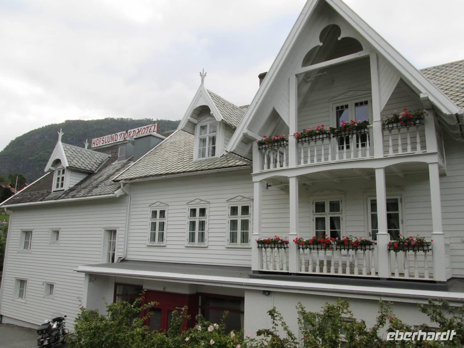 Alle Gäste waren wieder im Bus, Kaffee und auch ein Schnäpschen wärmten uns auf und so fuhren wir weiter an den größten und tiefsten Fjord, den Sognefjord. Im "Hofslund Hotel" wurden wir wieder mit einem tollen Buffet verwöhnt. Gern wären wir noch 1 Nacht länger in diesem schönen Hotel geblieben.