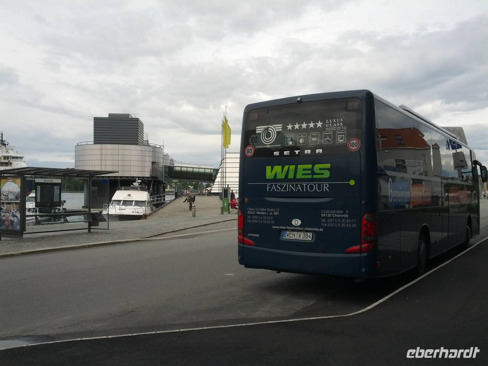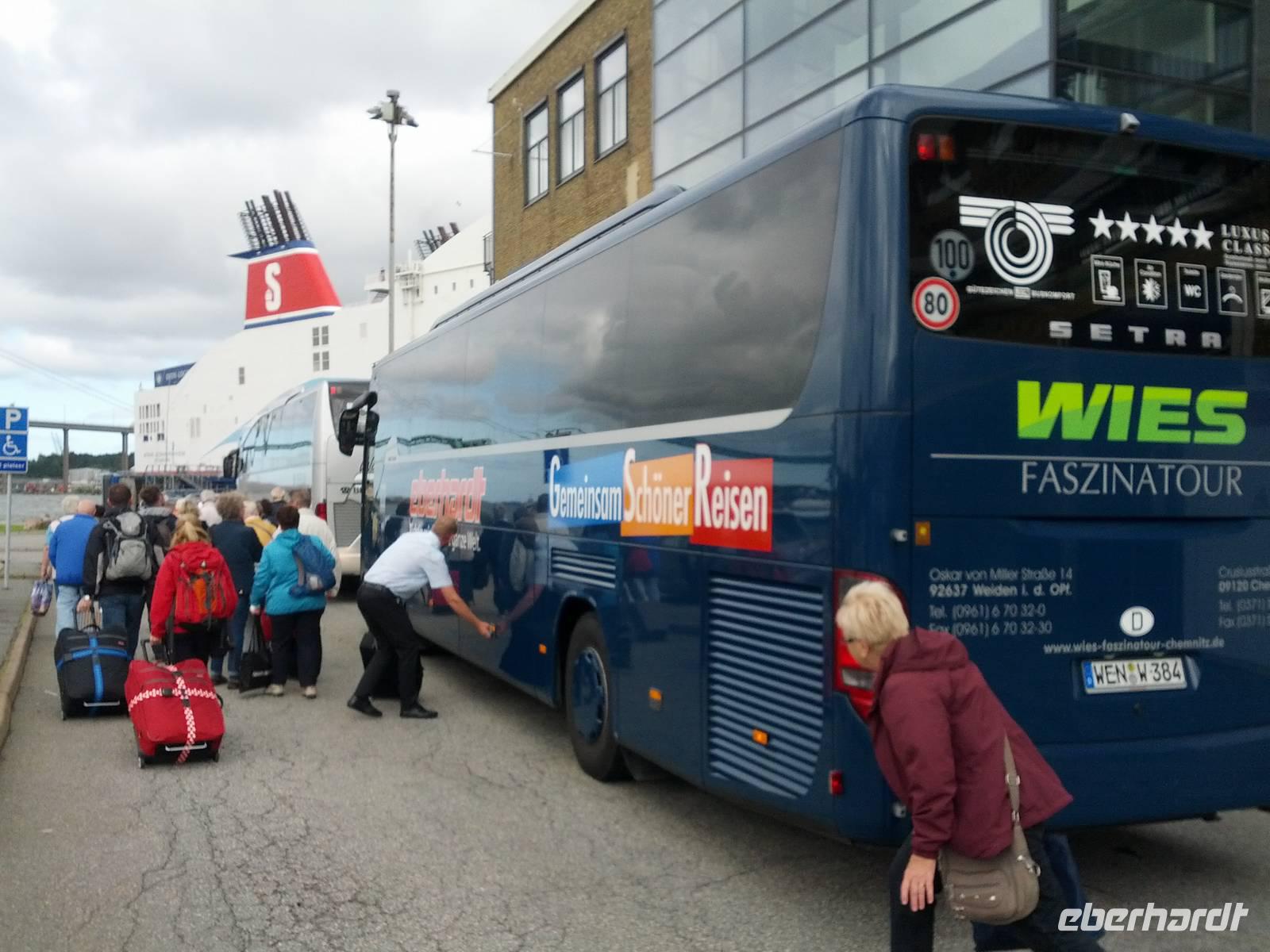 Nach dem Verlassen des Schiffes steht der Reisebus schon bald bereit;