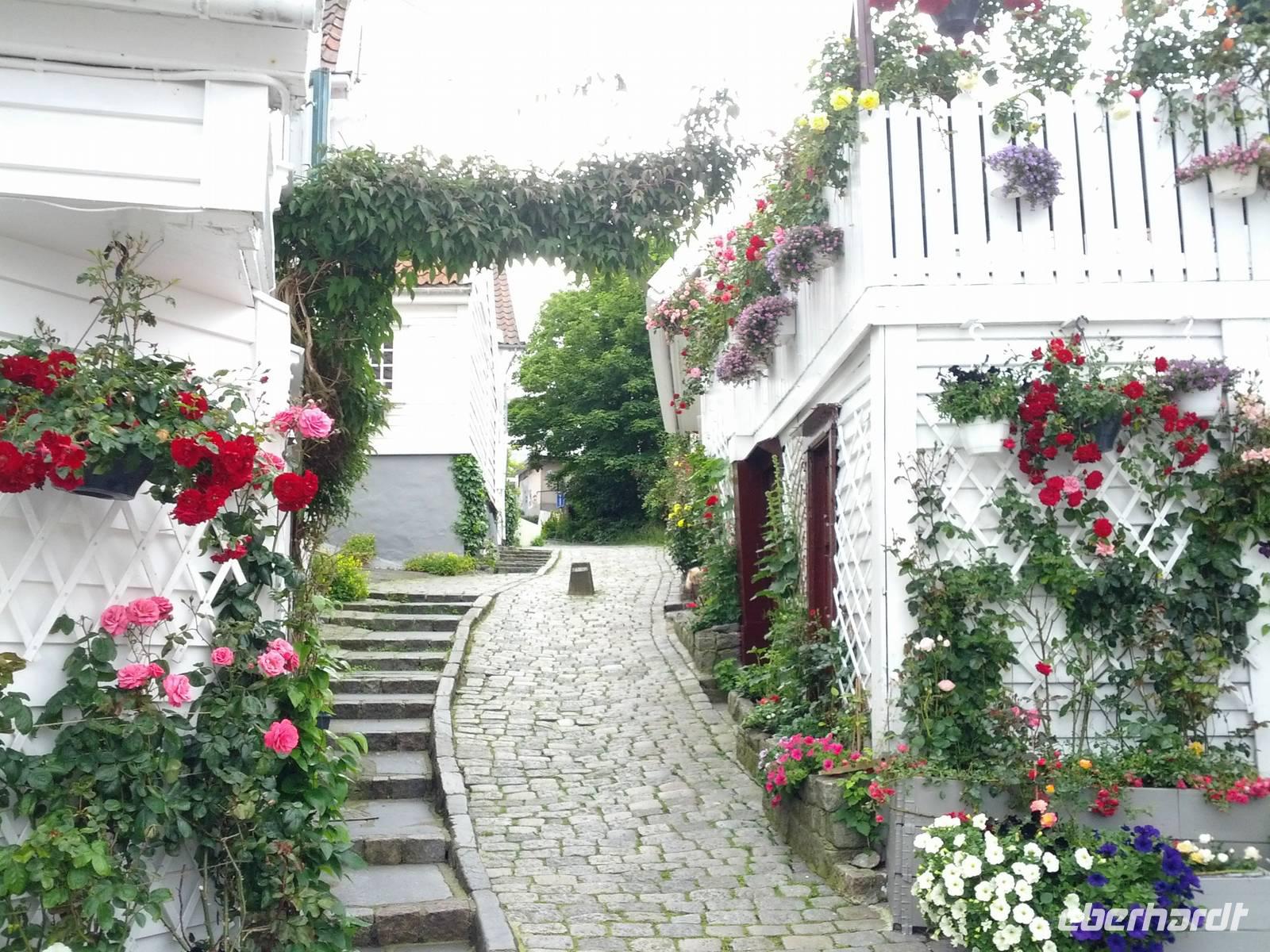 Von hier aus geht es weiter nach Gamle Stavanger, geprägt von idyllischen leuchtend weißen Holzhäusern.