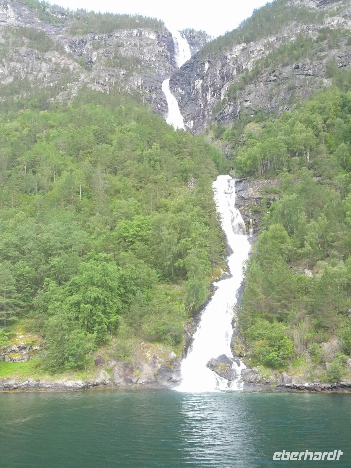 In Hellesylt angekommen legen wir Rast am großen Wasserfall des Ortes ein,