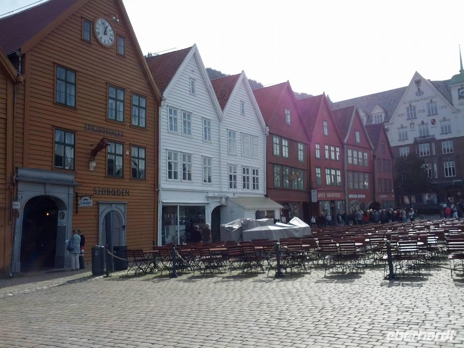 den historischen Stadtkern mit dem schönen Hafenviertel „Bryggen", den Fischmarkt,