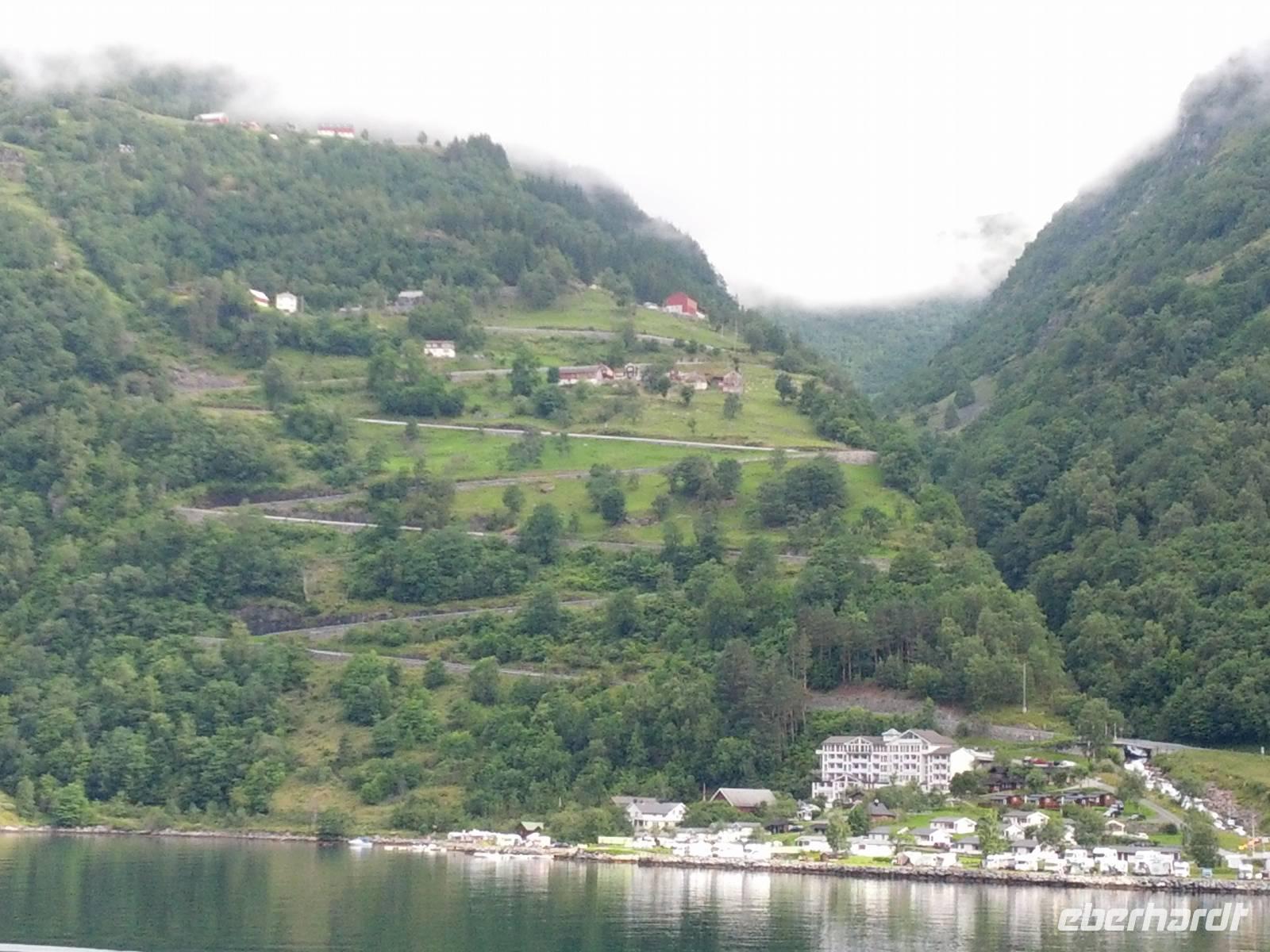 Über die fantastische Adlerstraße erreichen wir schließlich den Ort Geiranger am gleichnamigen Fjord.