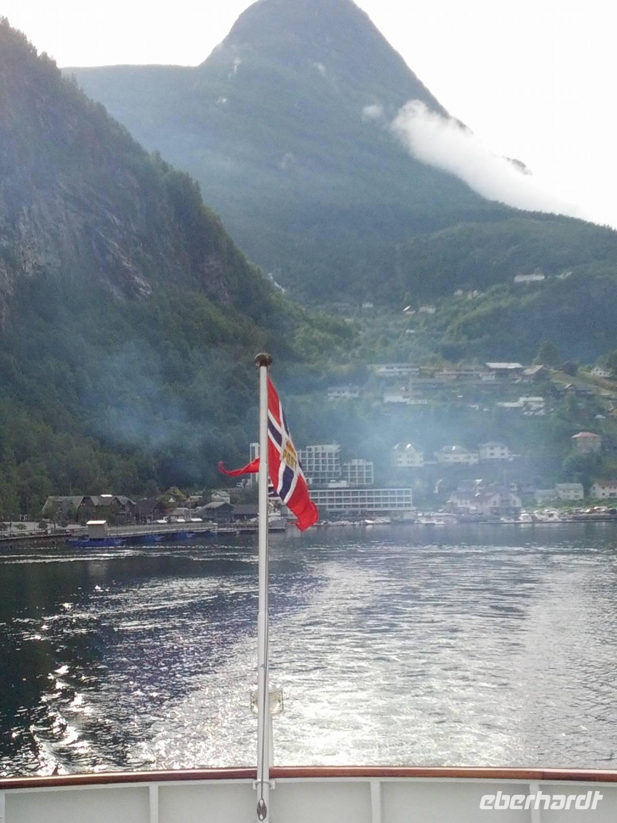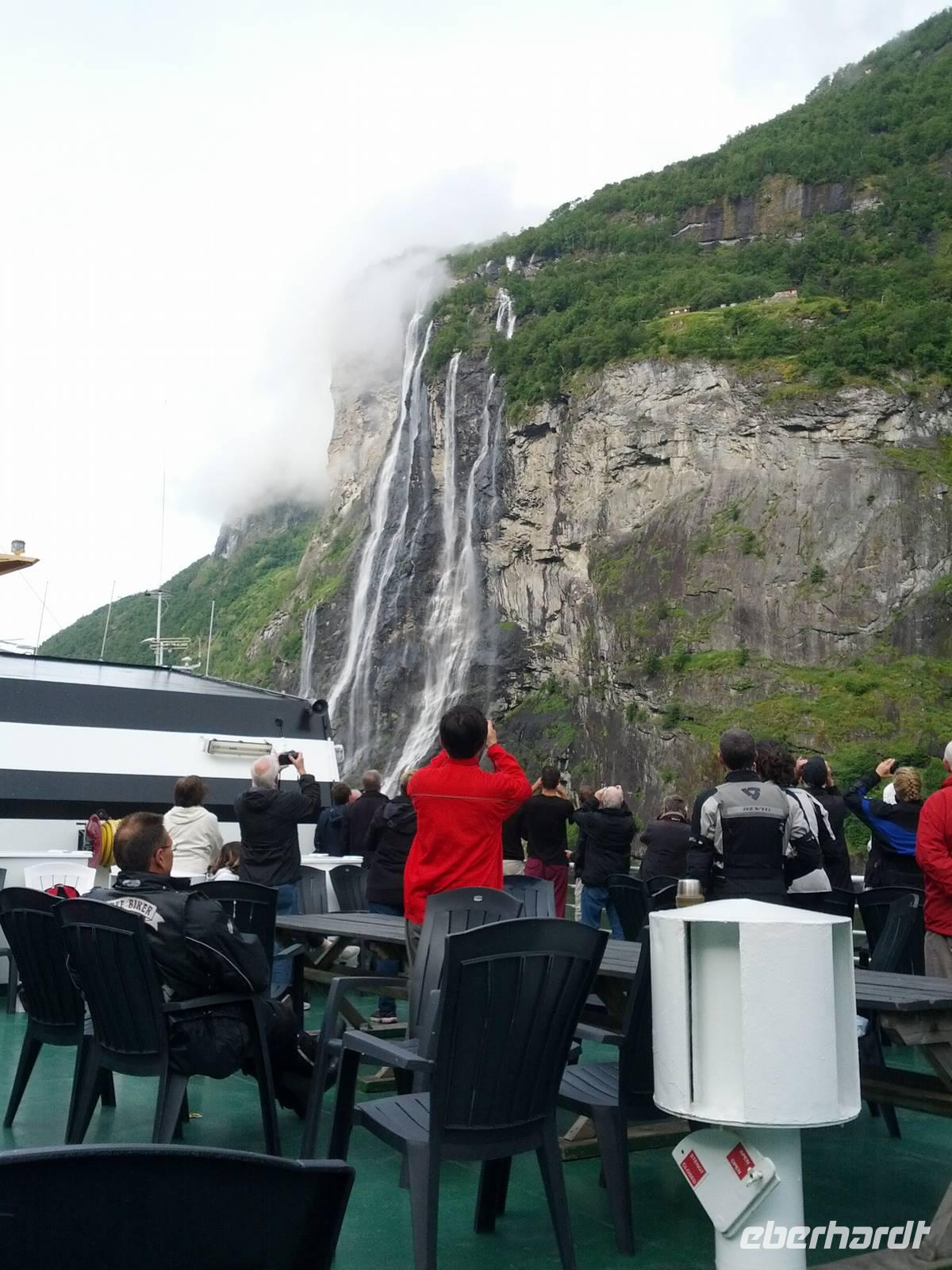 vom Oberdeck des Schiffes aus gleiten wir über den wohl schönsten Fjord Norwegens,