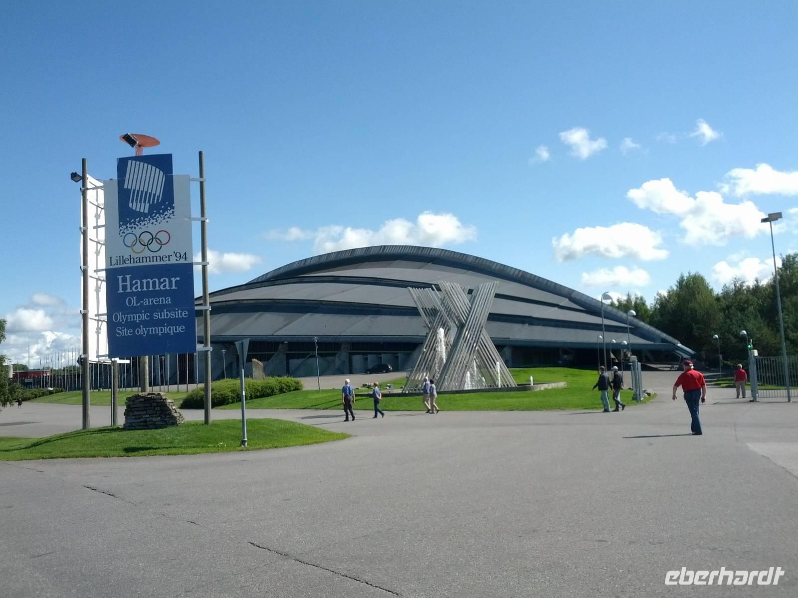 In Hamar bestaunen wir das „Wikingerschiff" eine riesige Eislaufhalle und eines der herausragenden Bauwerke der Olympischen Spiele 1994.