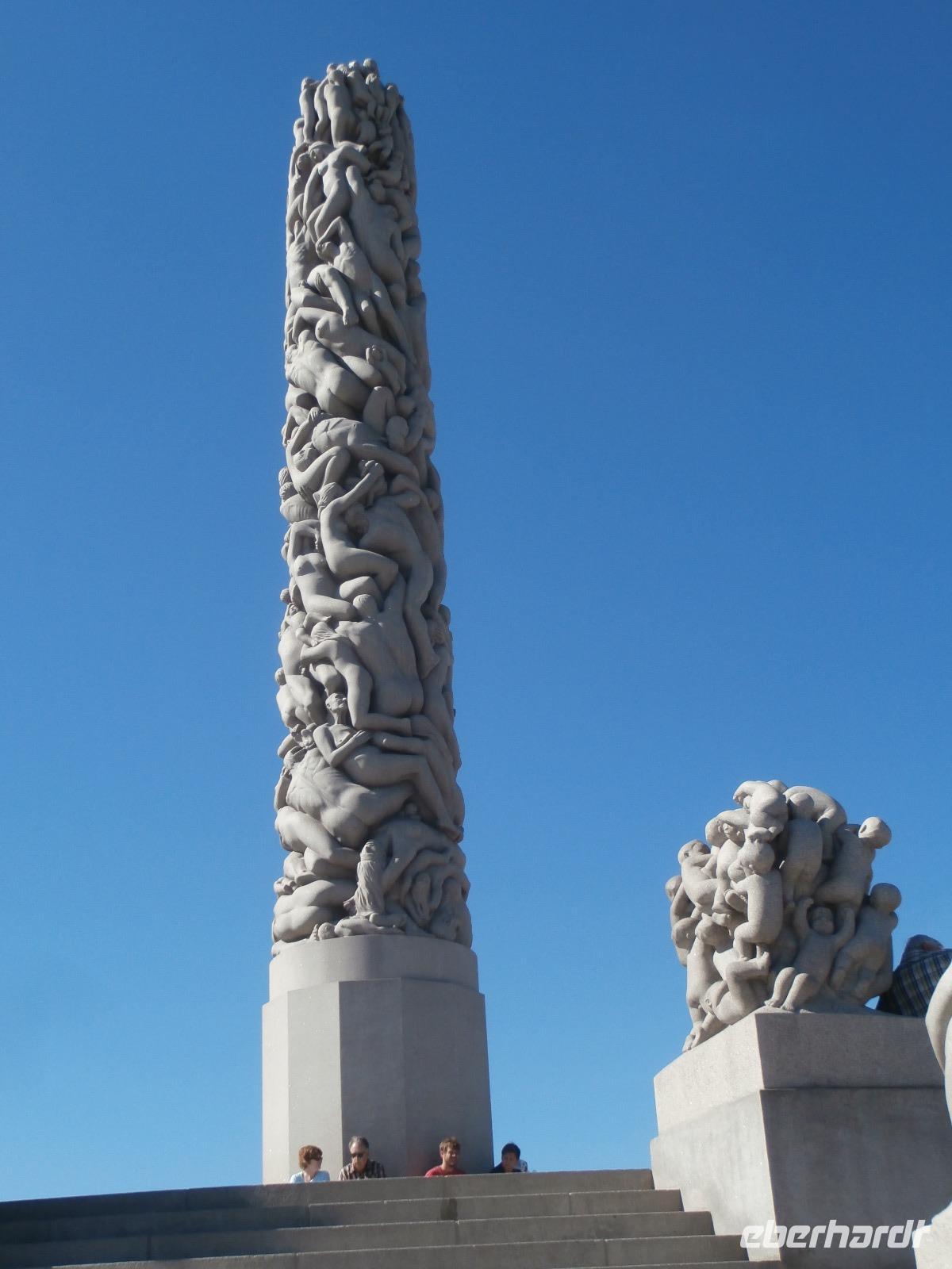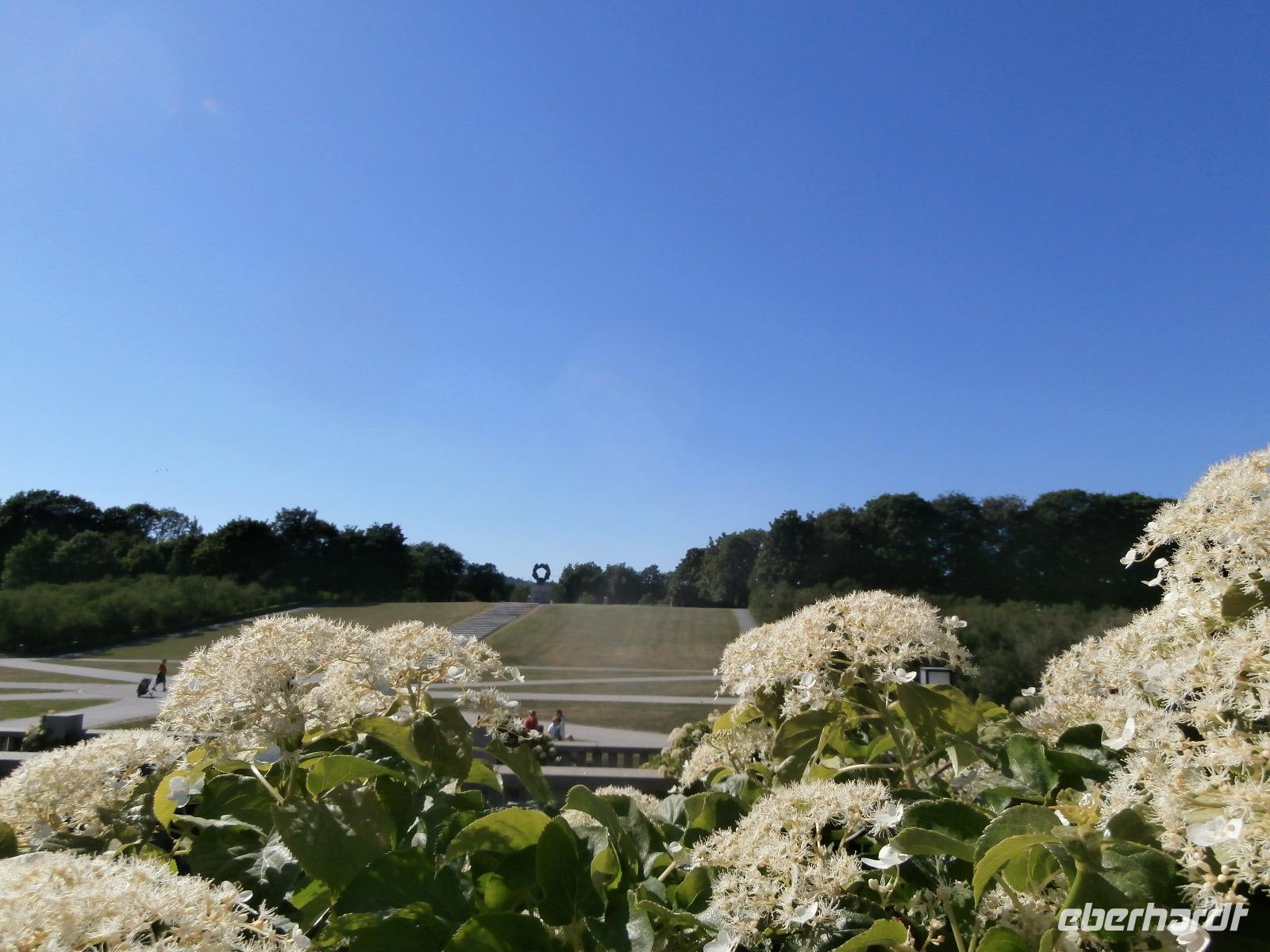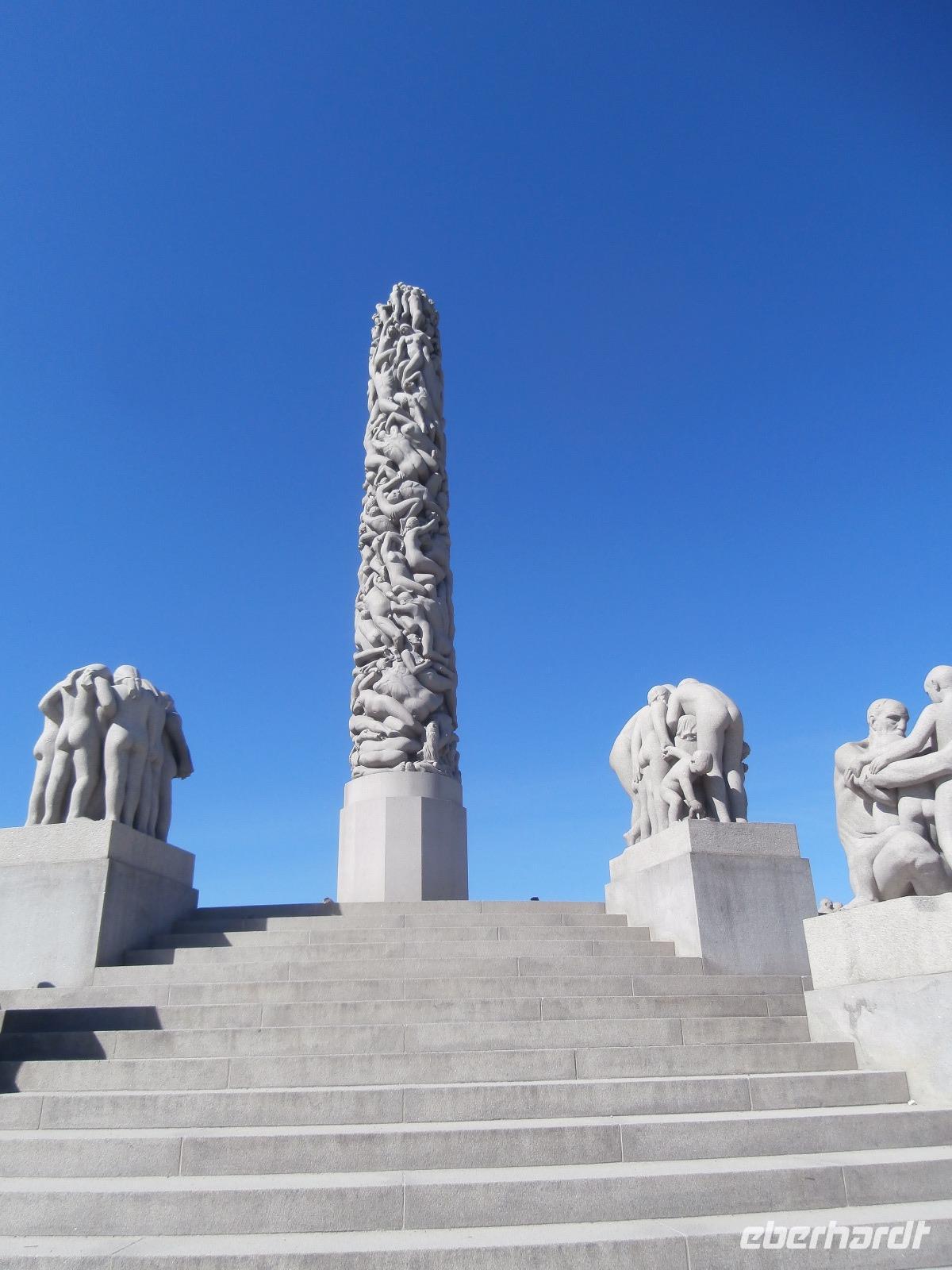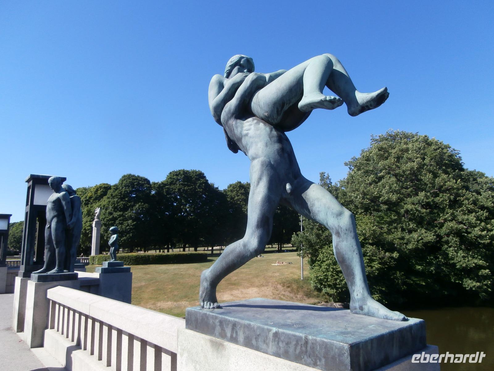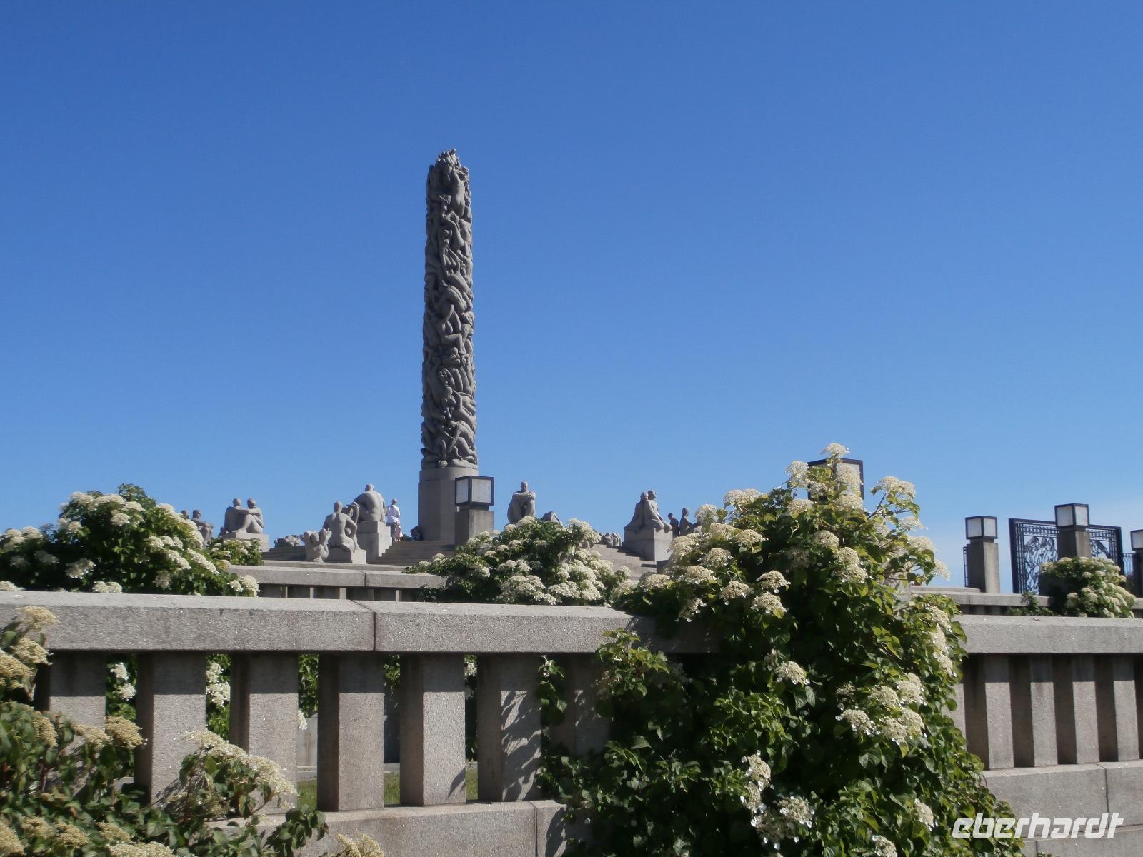 Einbogen Brücke, an der links und rechts die Fahrbahnen hängen, reisen wir in Norwegen ein. Ingrid spielt auch hier wie schon bei Ankunft in Schweden, die Nationalhymne ab. Wir haben einen schönen Blick auf die alte Brücke und den Svinesund, er markiert die Grenze zu Norwegen. Die norwegische Hauptstadt am Oslofjord erwartet uns mit Sommertemperaturen und azurblauen Himmel. Im Osloer Rathaus wird jährlich im Dezember der Friedensnobelpreis verliehen. Leider ist es heute nicht möglich hinein zugehen. Mit Gudrun, unserer örtlichen Führerin, fahren wir durch die Stadt, legen in Nähe der fantastischen Oper in weißen Marmor einen Foto Stopp ein und dann geht es zum Vigelandpark. Dieser Skulpturenpark zeigt unter anderem das Leben eines Menschen, ein ganz toller Zyklus geschaffen von Gustav Vigeland. Berühmteste Skulptur ist sicher der kleine Trotzkopf.