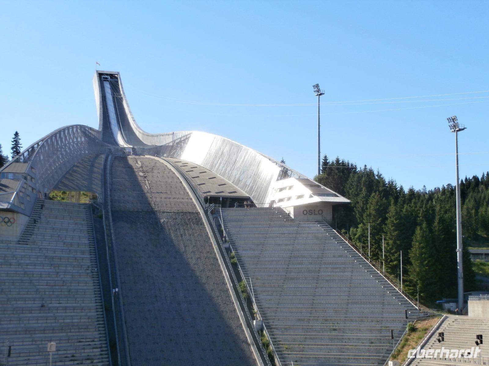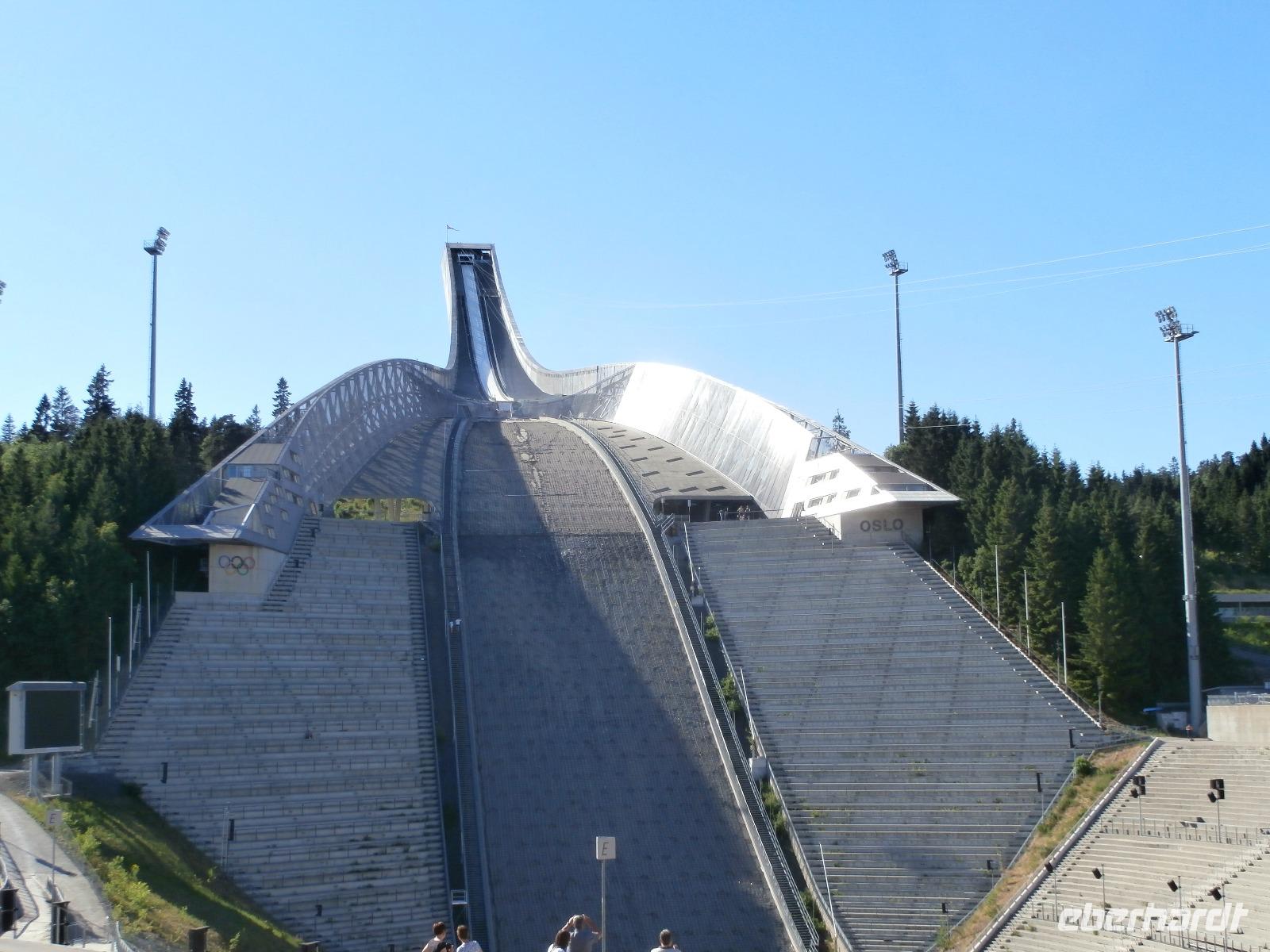 Gemeinsam fahren wir hinauf zur Schanze am Holmenkollen,
