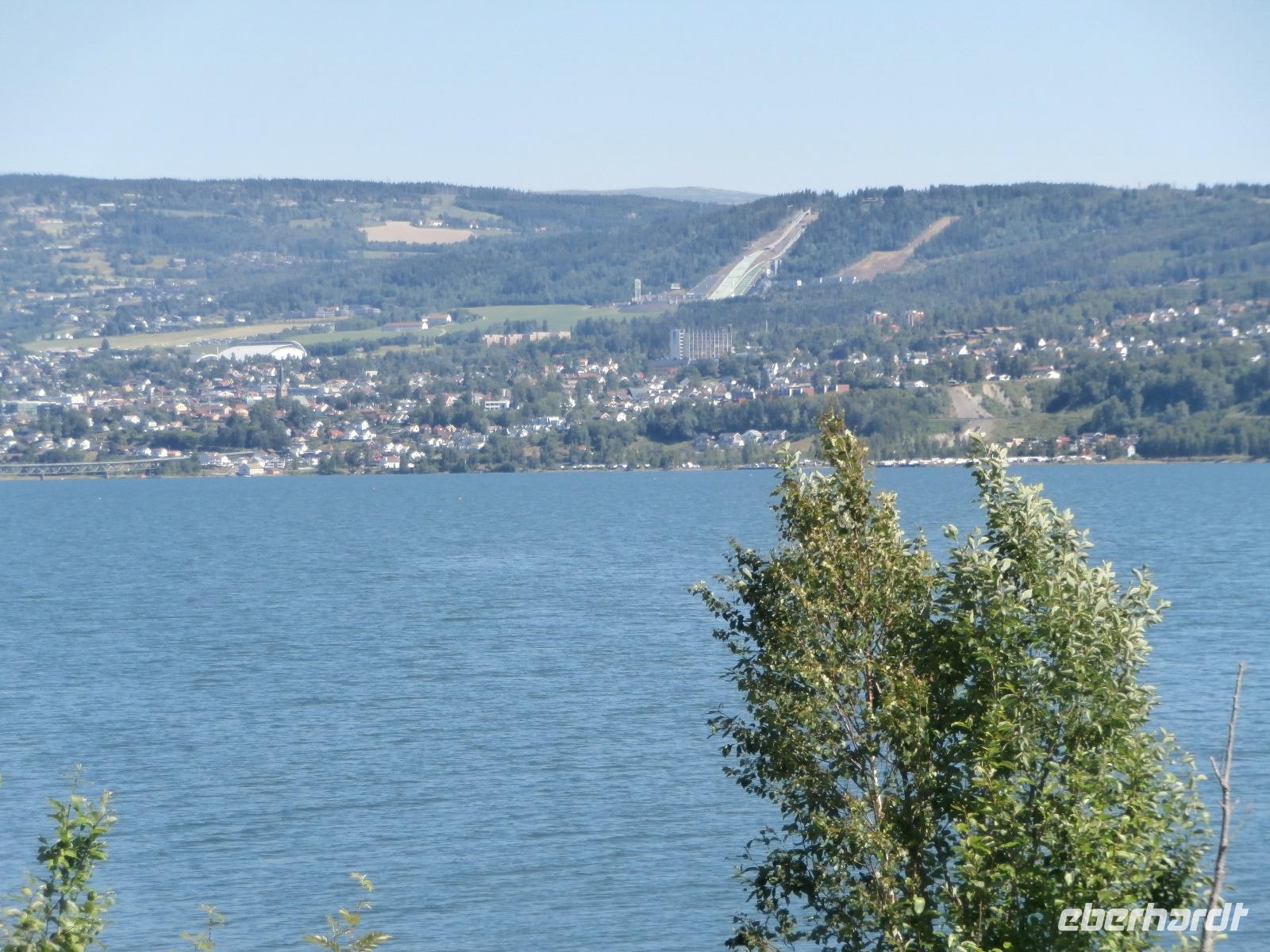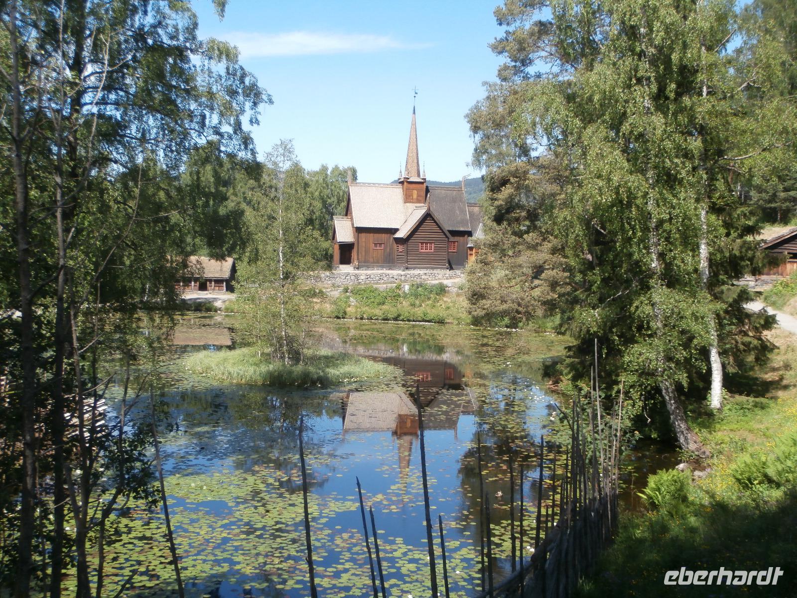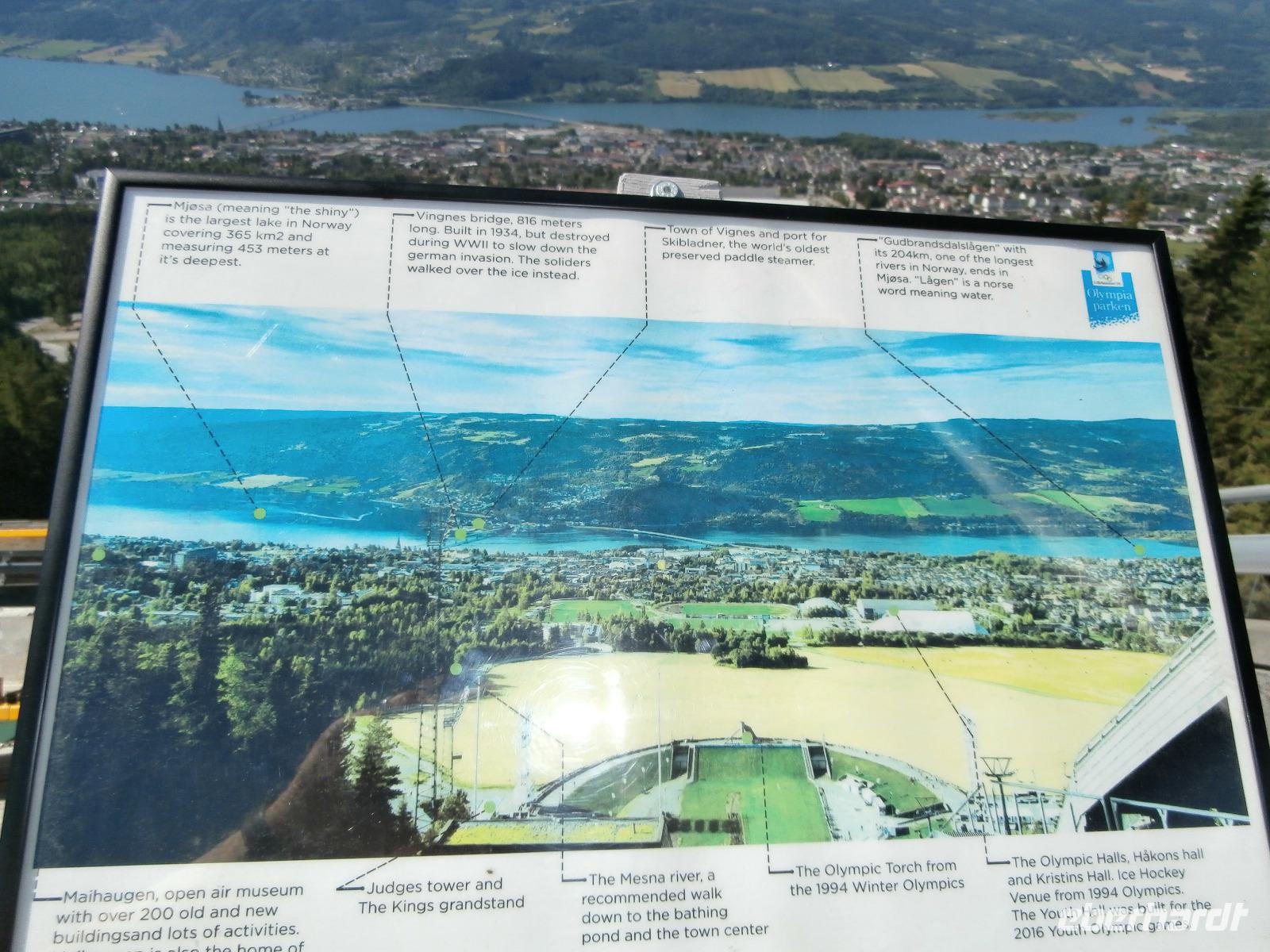 Wir erleben eine Riesenbaustelle an der E 6, der Ausbau geht voran und heute zum Samstag wird kräftig gebaut. In der Vorbeifahrt sehen wir die Olympiahalle Wikingship, ein Foto zu schießen gelingt vereinzelt. Erster großer Höhepunkt unserer Reise ist heute der Besuch der Schanzenanlagen in Lillehammer. Wir können wegen einer sportlichen Großveranstaltung mit dem Bus nicht wie gewohnt bis ran an die Schanzen fahren. Die Möglichkeit mit dem Bus bis ganz nach Oben zum Absprungbereich zu fahren, nutzen wir natürlich. Hier eröffnet sich uns eine gigantische Aussicht auf Lillehammer und den Mjösasee. Im Freilichtmuseum Maihaugen haben wir im Anschluss eine Führung in der Stabkirche, der alten Schule und auf dem Bauernhof. Etwas Freizeit verbringen wir im Anschluss in der Fußgängerzone von Lillehammer.