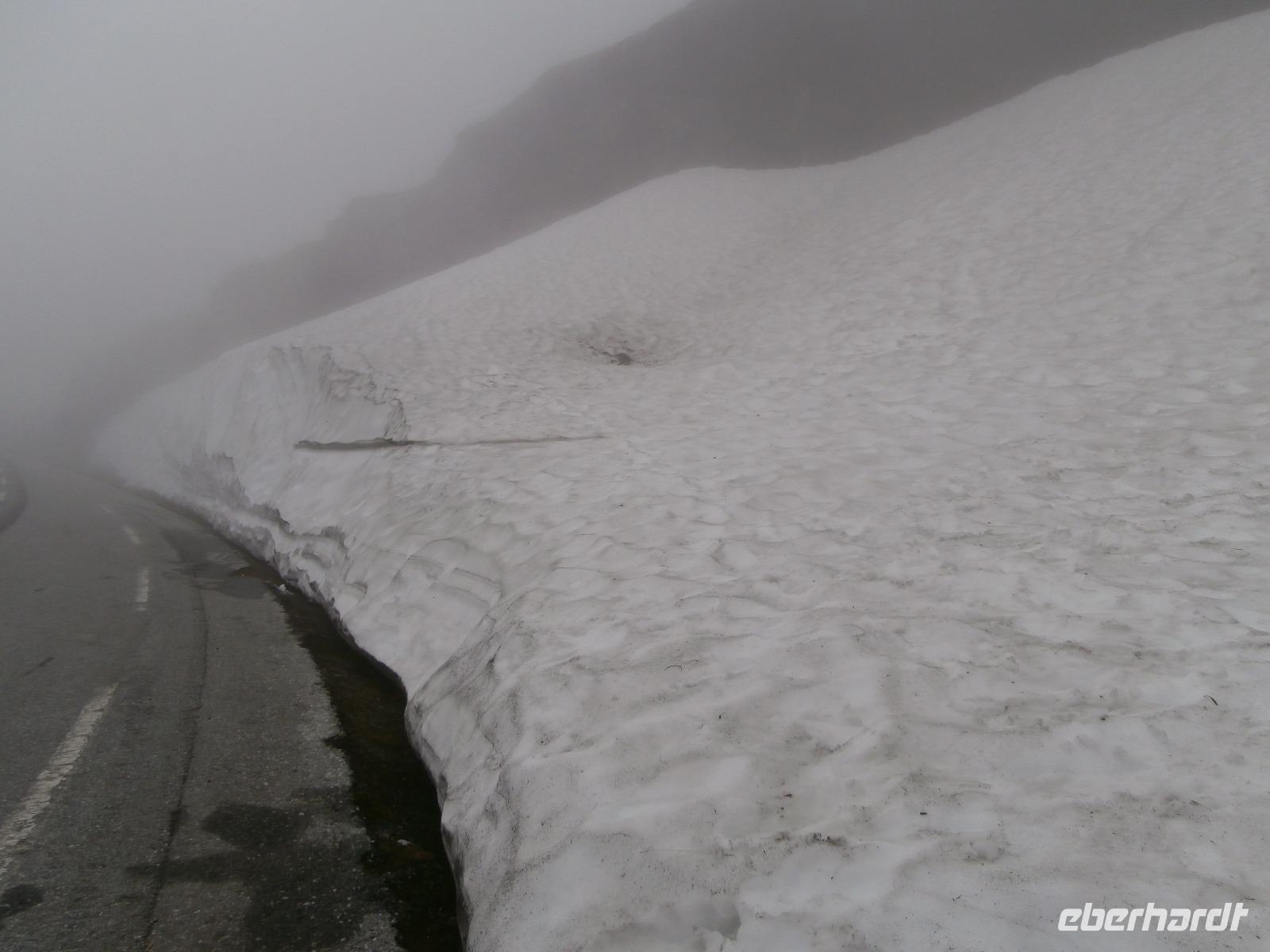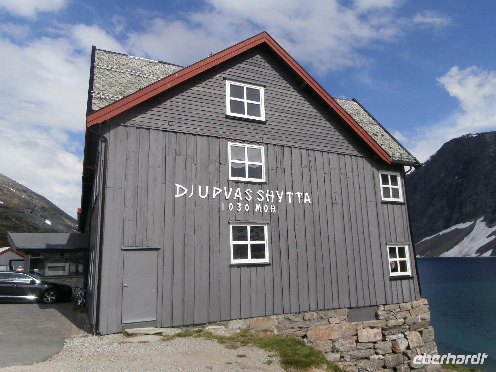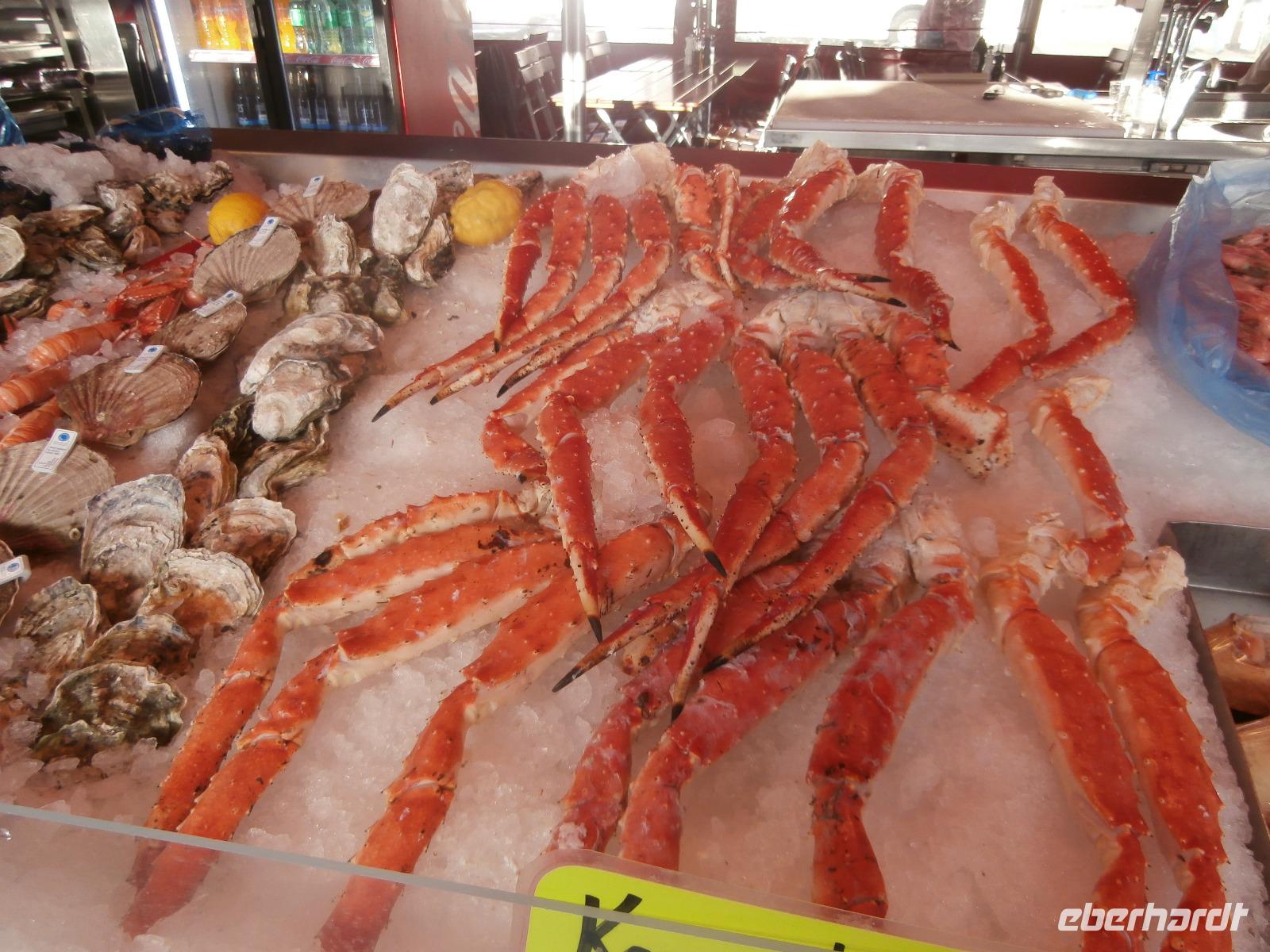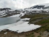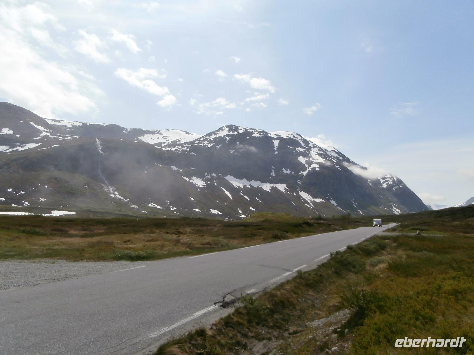 Kurs auf den Dalsnibba, dieser Aussichtsgipfel ist 1500m hoch. Leider wird zur Zahlung für die mautpflichtige Serpentinenstrecke unser Voucher nicht mehr akzeptiert, man hat auf Bezahlung mit Kreditkarte und Electronic umgestellt. Am Djupvassvatnet nutzen wir das schöne Wetter zum Fotografieren, Eisschollen zwischen Stein und Wasser sind toll anzusehen. Unterwegs gibt Ingrid noch im Namen von Eberhardt Travel ein kleines Picknick aus. Wir verkosten Elch-und Rentiersalami, Multebeermarmelade und auch Kaviar auf Knäckebrot.