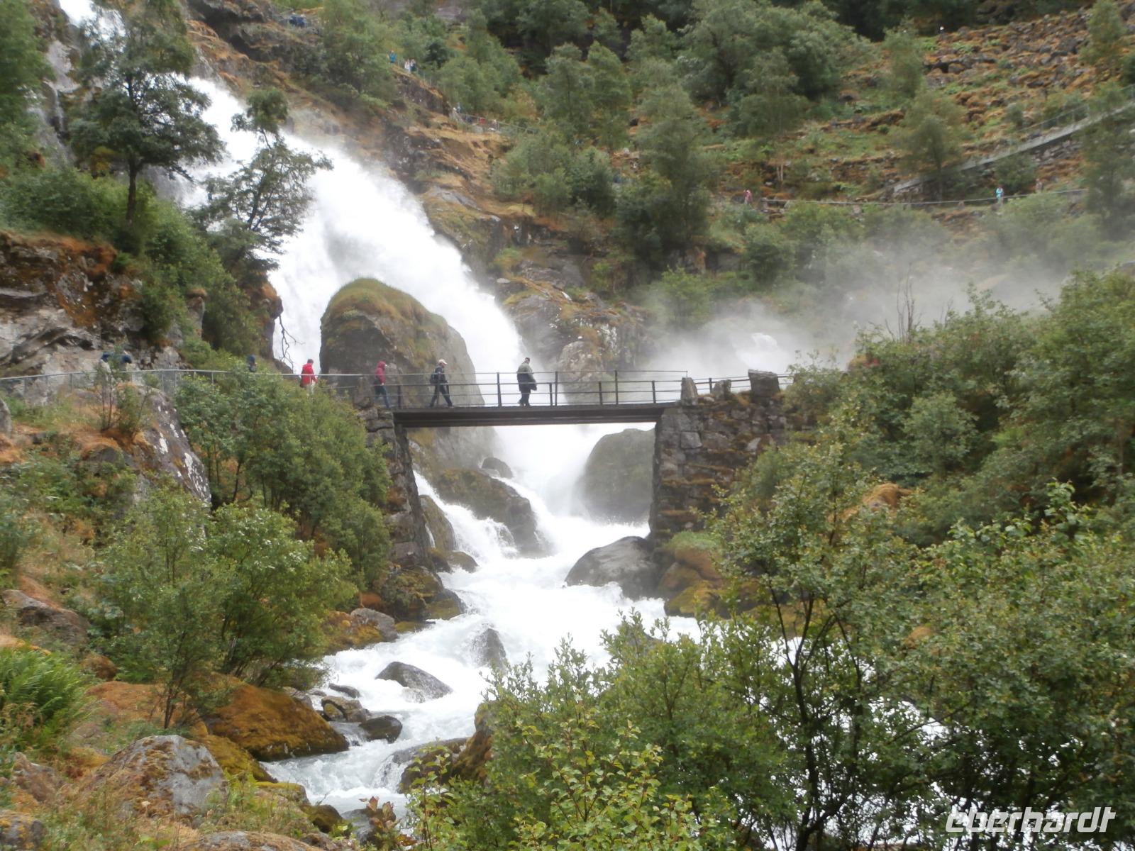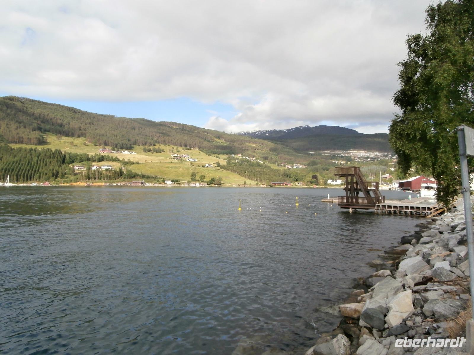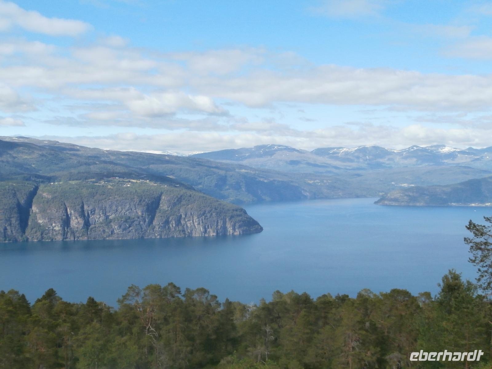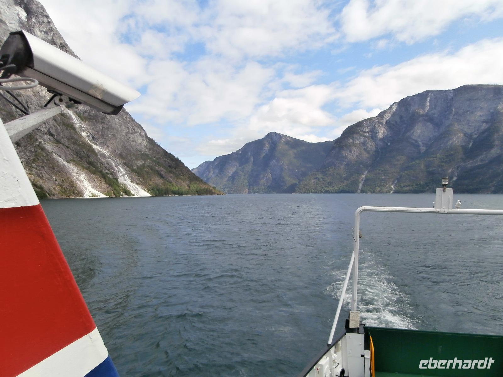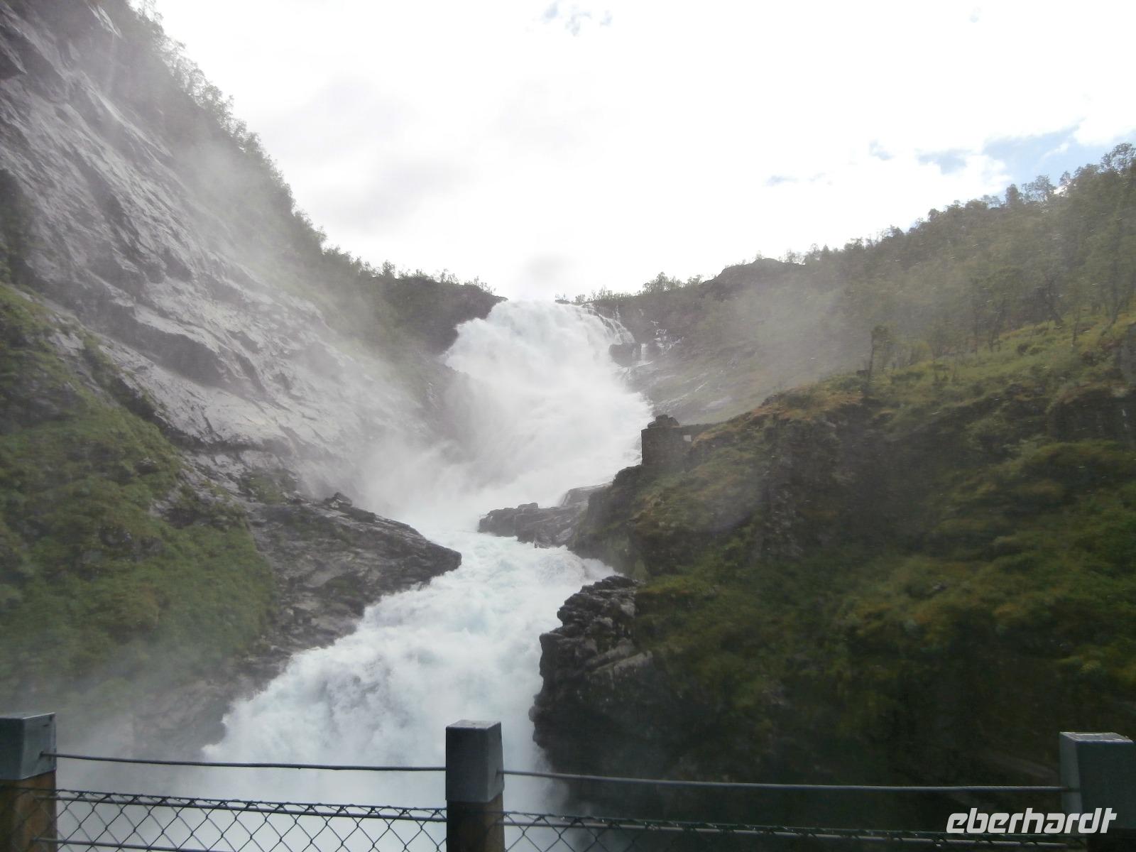 Unsere Reise geht weiter, heute Morgen fahren wir bis zum Fährhafen in Kaupanger, von hieraus starten wir zur Kreuzfahrt im Sognefjord, auch durch den Auerlandsfjord geht die Seereise. Sonnenschein und angenehme Temperaturen begleiten uns wieder, welch ein Segen. In Gudvangen können wir erst verspätet die Fähre verlassen, es wird knapp mit der Zeit. Mit dem Bus geht die Fahrt weiter nach Flam. Knapp vor Abfahrt der Bahn treffen wir ein, endlich können wir unsere reservierten Plätze im Zug einnehmen. Die Fahrt mit der Flam Bahn ist für uns ein fantastisches Erlebnis. Am Kjosfossen steigen wir aus und mit Musik und Tanz der Elfen gibt es den nächsten Höhepunkt des Tages. Auch die Bergenbahn muss auf uns warten in Myrdal, die Flam Bahn kommt verspätet an. Wir steigen um in die Bergenbahn und in einer rasanten Fahrt durch die herrliche Natur und viele Tunnel kommen wir nach Voss, hier werden wir schon von Jörg mit dem Bus erwartet. Nach unserer Kaffeepause treten wir die Fahrt nach Bergen an. Die Anfahrt zum Thon Hotel Bristol gestaltet sich schwierig, Ingrid erkundet am Ende zu Fuss, wo sich das Hotel befindet. Nach dem Abendessen im Restaurant Egon fahren wir zum Fløyen hinauf, blauer Himmel und Sonne, so präsentiert sich der Berg. Er bietet uns in einem guten Licht fantastische Ausblicke auf die Stadt und die Schärenwelt.