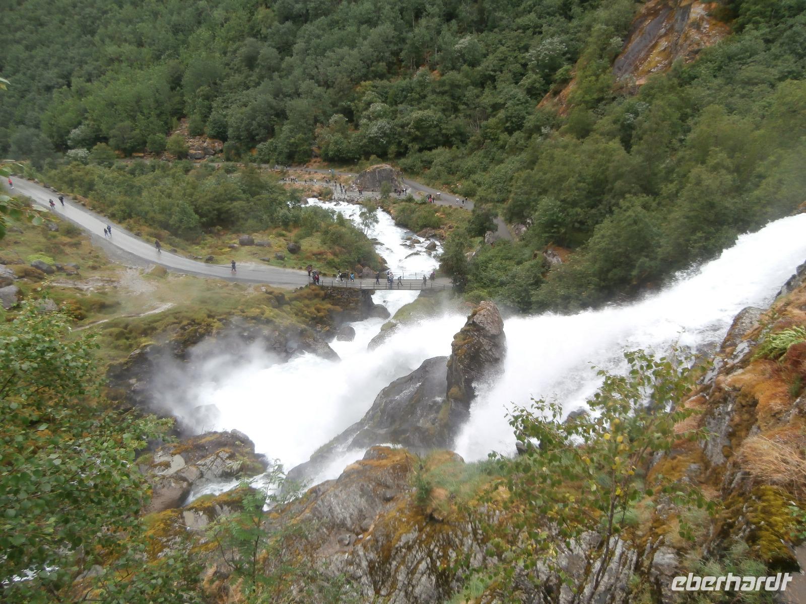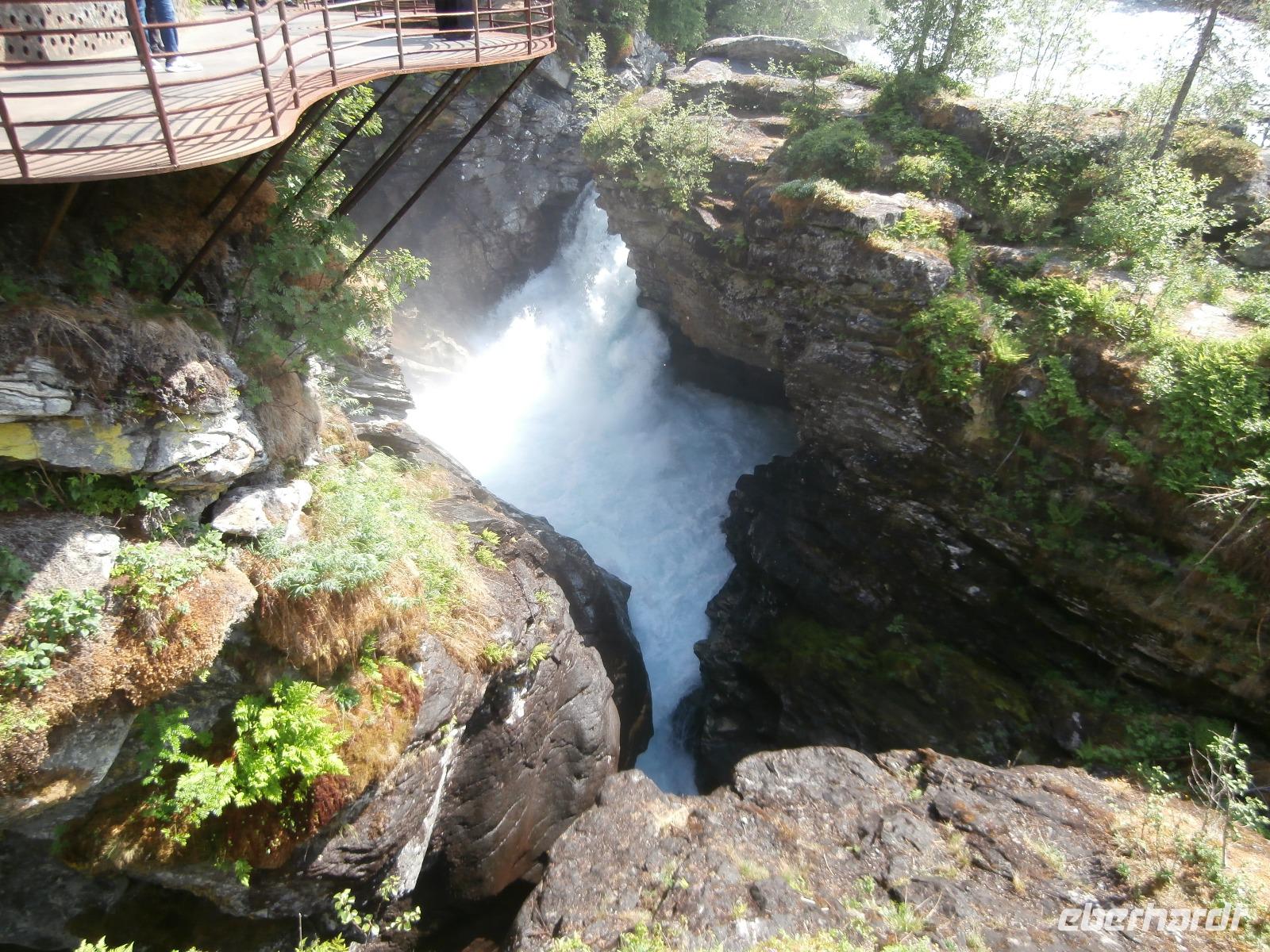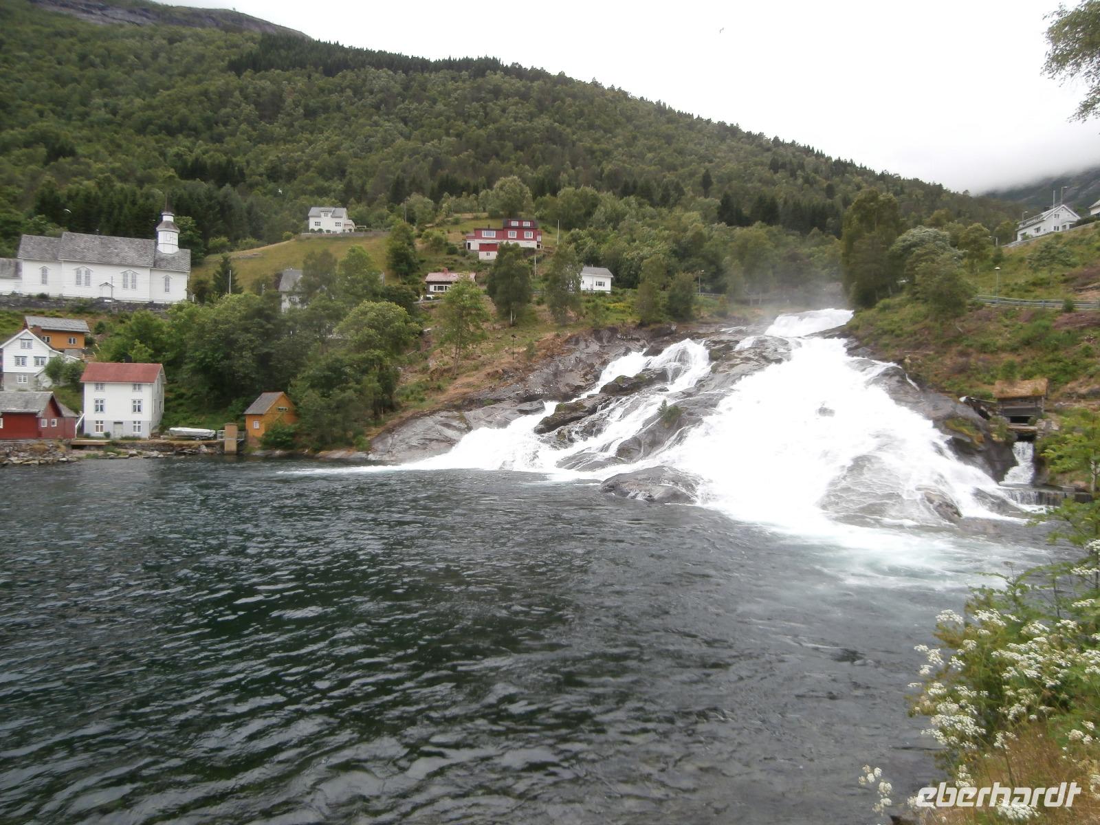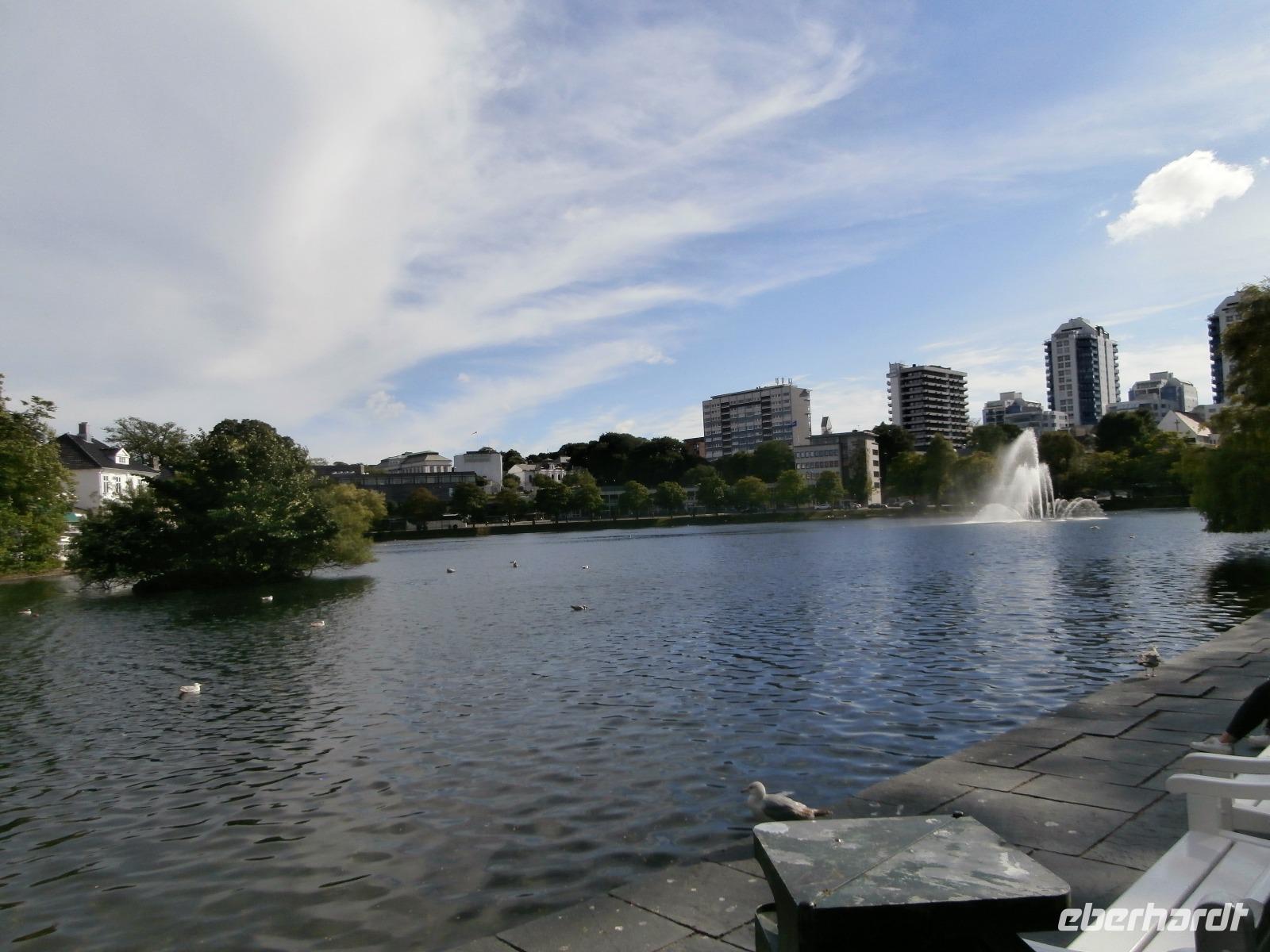 Unsere Reise geht weiter, heute Morgen fahren wir bis zum Fährhafen in Kaupanger, von hieraus starten wir zur Kreuzfahrt im Sognefjord, auch durch den Auerlandsfjord geht die Seereise. Sonnenschein und angenehme Temperaturen begleiten uns wieder, welch ein Segen. In Gudvangen können wir erst verspätet die Fähre verlassen, es wird knapp mit der Zeit. Mit dem Bus geht die Fahrt weiter nach Flam. Knapp vor Abfahrt der Bahn treffen wir ein, endlich können wir unsere reservierten Plätze im Zug einnehmen. Die Fahrt mit der Flam Bahn ist für uns ein fantastisches Erlebnis. Am Kjosfossen steigen wir aus und mit Musik und Tanz der Elfen gibt es den nächsten Höhepunkt des Tages. Auch die Bergenbahn muss auf uns warten in Myrdal, die Flam Bahn kommt verspätet an. Wir steigen um in die Bergenbahn und in einer rasanten Fahrt durch die herrliche Natur und viele Tunnel kommen wir nach Voss, hier werden wir schon von Jörg mit dem Bus erwartet. Nach unserer Kaffeepause treten wir die Fahrt nach Bergen an. Die Anfahrt zum Thon Hotel Bristol gestaltet sich schwierig, Ingrid erkundet am Ende zu Fuss, wo sich das Hotel befindet. Nach dem Abendessen im Restaurant Egon fahren wir zum Fløyen hinauf, blauer Himmel und Sonne, so präsentiert sich der Berg. Er bietet uns in einem guten Licht fantastische Ausblicke auf die Stadt und die Schärenwelt.