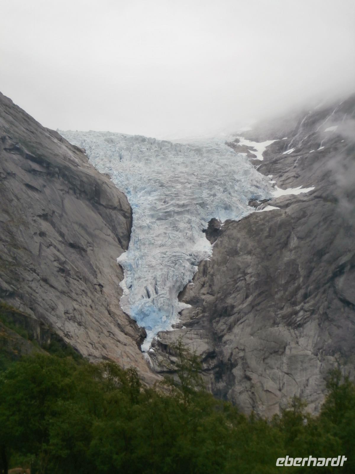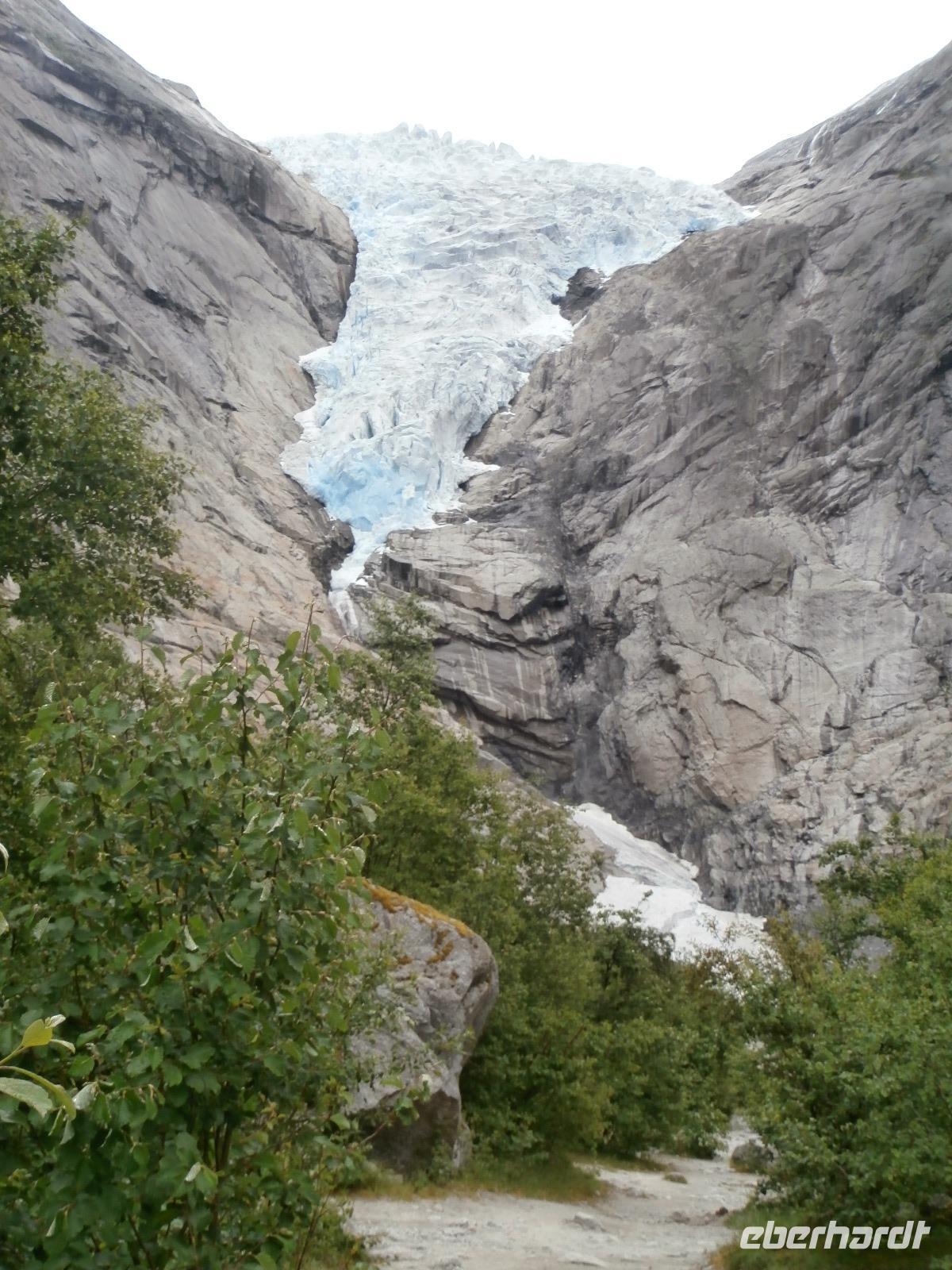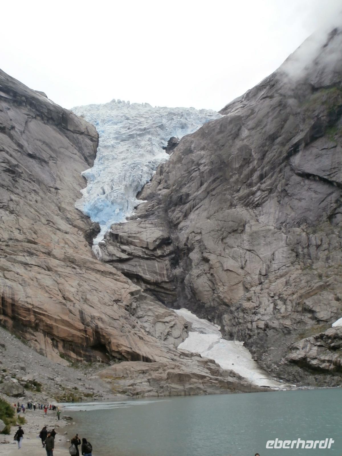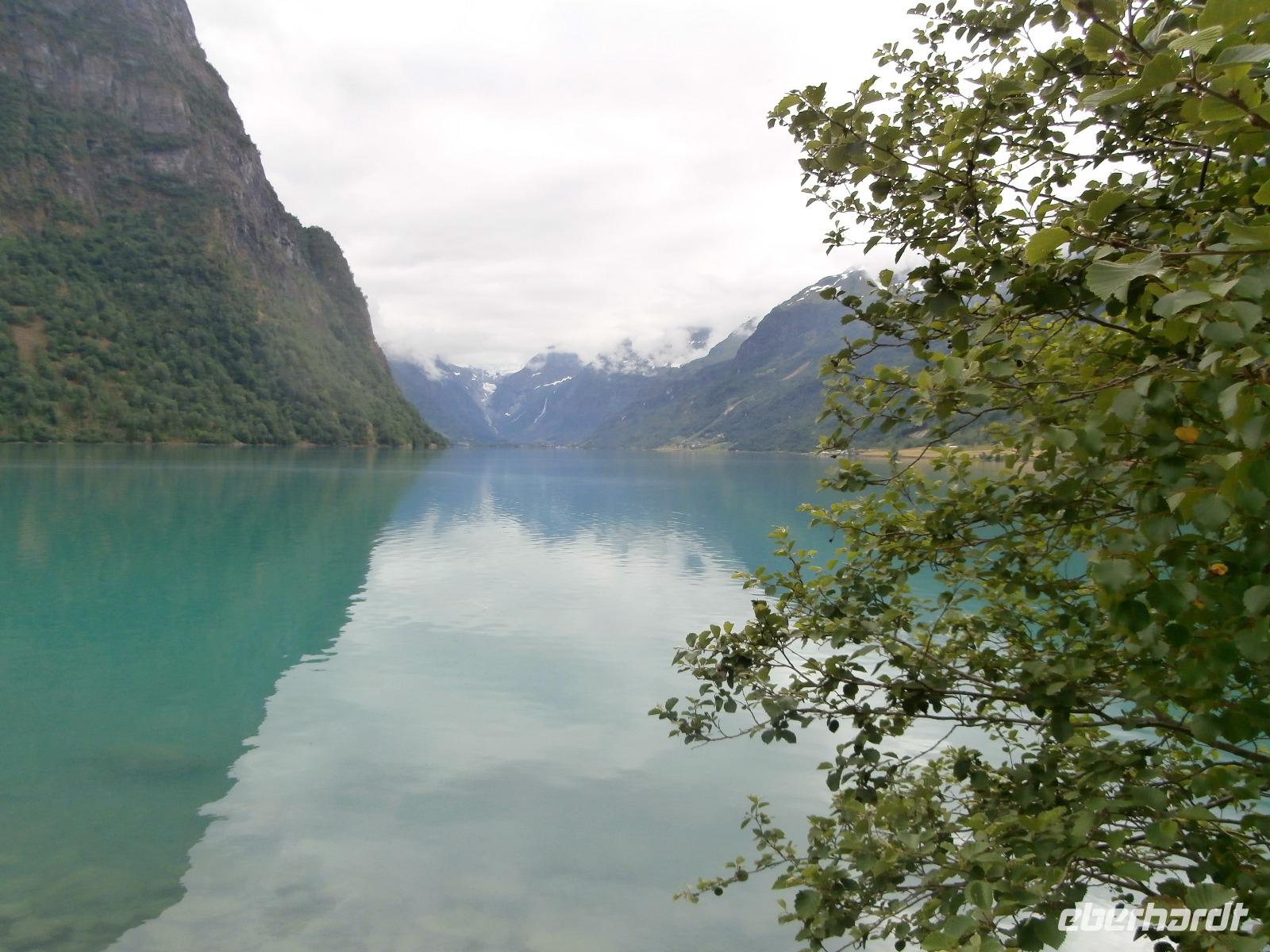Heute Morgen liegen 2 Kreuzfahrtschiffe im Geirangerfjord, „Mein Schiff 5" und die „Hamburg". Am späten Morgen starten wir unsere Kreuzfahrt im Geirangerfjord. Er zählt wohl zu den schönsten und meistbesuchten Fjorden mit bis zu 800 Meter hohen Felswänden zu beiden Seiten. Wir sehen in die Tiefe tosende Wasserfälle mit Namen wie "Die sieben Schwestern" oder "Der Freier." Von Hellesylt aus geht die Fahrt in Richtung Süd entlang von Fjorden bis hinein in das Gletschergebiet des Jostedalbreen. Auch auf der Anfahrt zum Gletschergebiet sehen wir nochmals Kreuzfahrer, ein Schiff der Rederei „Costa" liegt bei Loen im Fjord. Bei Sonnenschein begeben wir uns auf eine Wanderung zum Briksdalsbreen. Sehr viel Wasser ist in den Fossen, tosend stürzt das Wasser hinab begleitet von riesigen Gischtschleiern. Am Nachmittag geht unsere Fahrt mit einigen Fotostopps z.B.am Boyabreen, hinauf aufs Utvikfjell und vorbei am Fjaerfjord bis nach Sogndal am königlichen Sognefjord. In Hafslo nächtigen wir heute im Hotel Eikum am Hafslo See und lassen es uns gutgehen. Im Hotel herrscht eine angenehme Ruhe und die Lage direkt am See gefällt uns.
