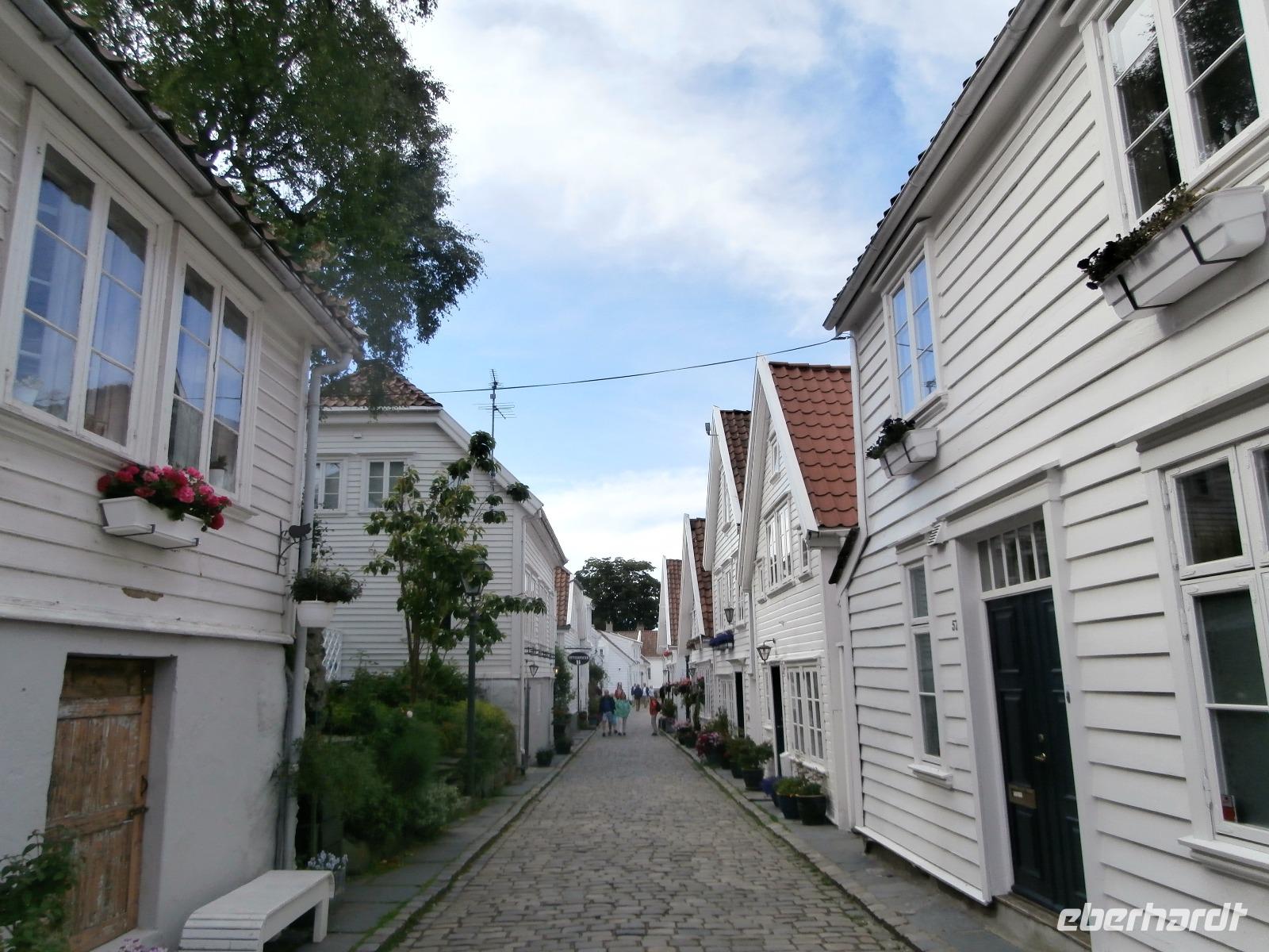 Bergen, gelegen auf mehreren Inseln und gerahmt von 7 Bergen, kommt uns etwas kühl am Morgen, aber die Sonne wärmt uns später und wir erleben diese Stadt trocken und mit blauen Himmel. Im Hafen haben mehrere Kreuzfahrtschiffe angelegt und bieten uns ein schönes Bild. Nach der Rundfahrt und Führung im Hanseatischen Viertel haben unsere Gäste noch Zeit auf dem Fischmarkt zu schauen und natürlich die Kostbarkeiten aus dem Meer zu probieren. Nachmittags erreichen wir das Schärengebiet südlich von Bergen. Weiter geht es durch einige lange Tunnel, die unter dem Meeresspiegel bzw. Meeresboden entlang führen. Fantastische Brücken schlagen den Bogen über Fjorde und Schären. Auch zwei längere Fährpassagen erleben wir heute auf unserer Fahrt nach Stavanger, der Ölmetropole Norwegens. Vor Ankunft im Clarion Hotel Energy stoppen wir für etwas Freizeit in der Ölhauptstadt Norwegens. Rund 170 liebevoll restaurierte, weiß gestrichene Holzhäuser stehen in den schmalen, mit Kopfsteinen gepflasterten Gassen von Gamle Stavanger. Ein betörender Rosenduft ist all gegenwärtig. Am Stadtsee Breivatnet sehen wir den eingerüsteten Dom, er ist neben dem Nidarosdom in Trondheim, der bedeutendste mittelalterliche Sakralbau Norwegens. Ein letzter Fotostopp gilt den „Schwertern im Felsen", sie stehen für Frieden, Einheit und Freiheit. König Harald Schönhaar soll an dieser Stelle, so berichtet die Geschichte, im Jahre 872 das Königreich geeint haben.