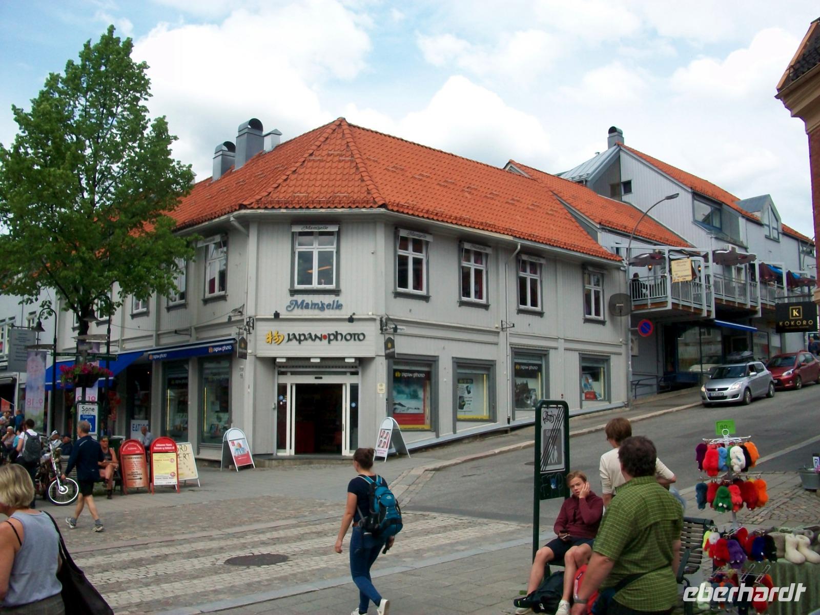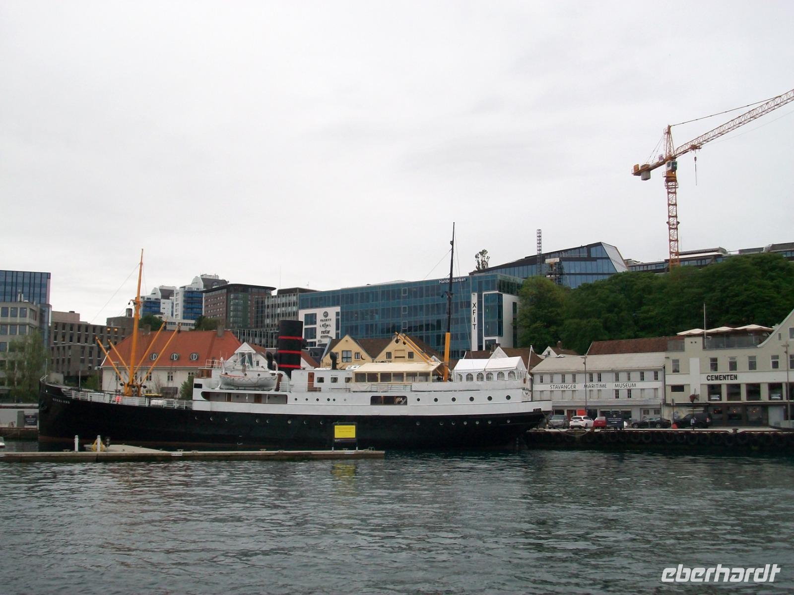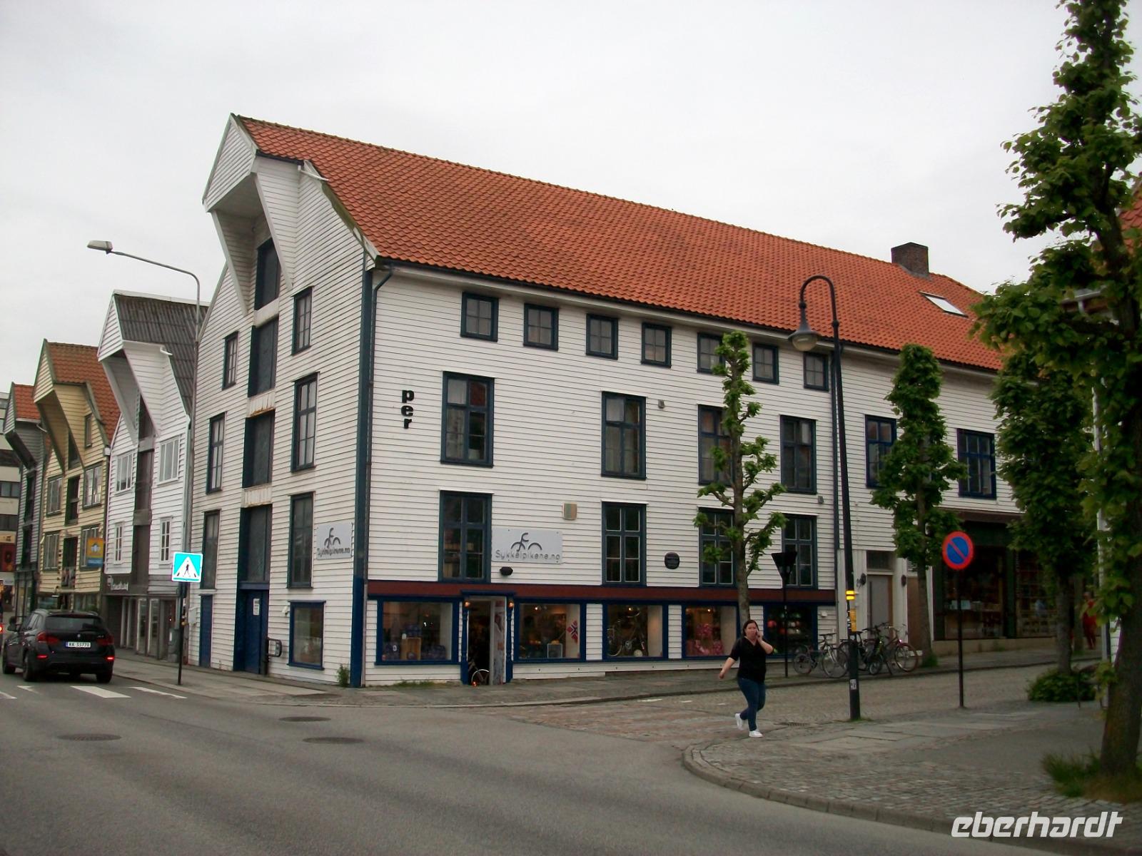 Leider hat sich der Himmel mehr und mehr bezogen als wir an unserem Ziel, dem Hafenort Stavanger, ankommen. Rechtzeitig um noch einen Bummel zu unternehmen; gleich vom Wasser aus gelangen wir in die wunderschöne Altstadt mit ihren malerischen hellen Holzhäusern. Im Hafen sehen wir die Industrie, denn draußen auf dem Meer wird Erdöl gewonnen, eine wichtige Einnahmequelle Norwegens.