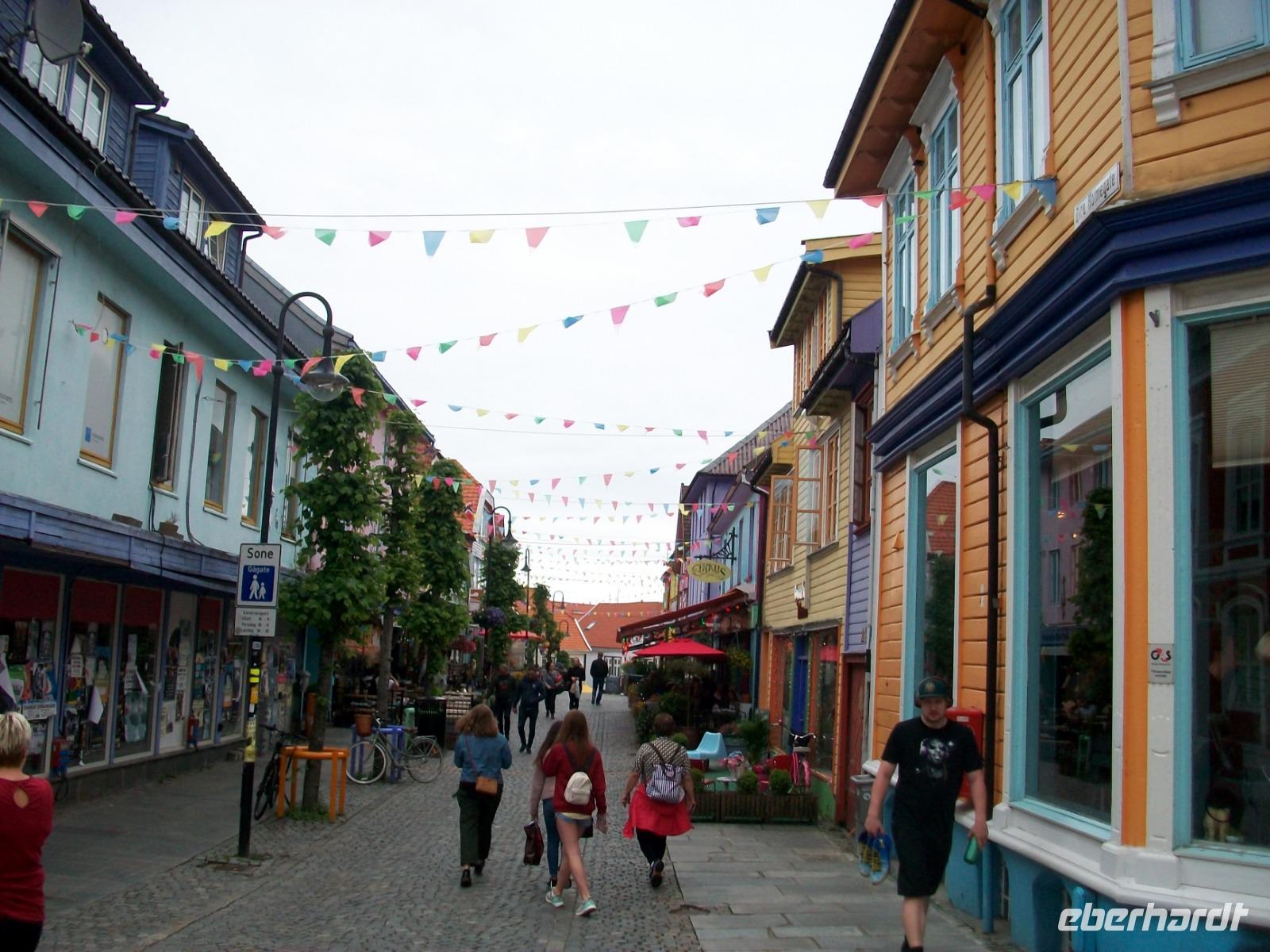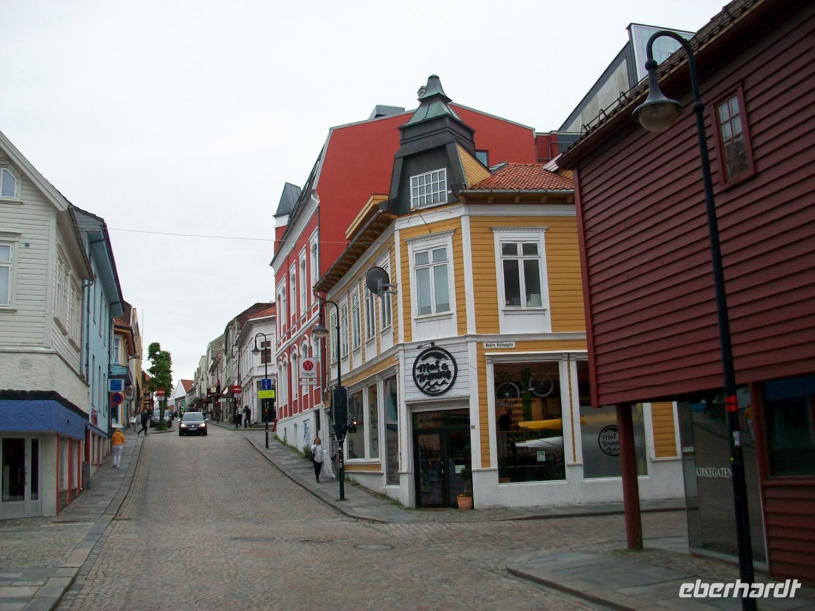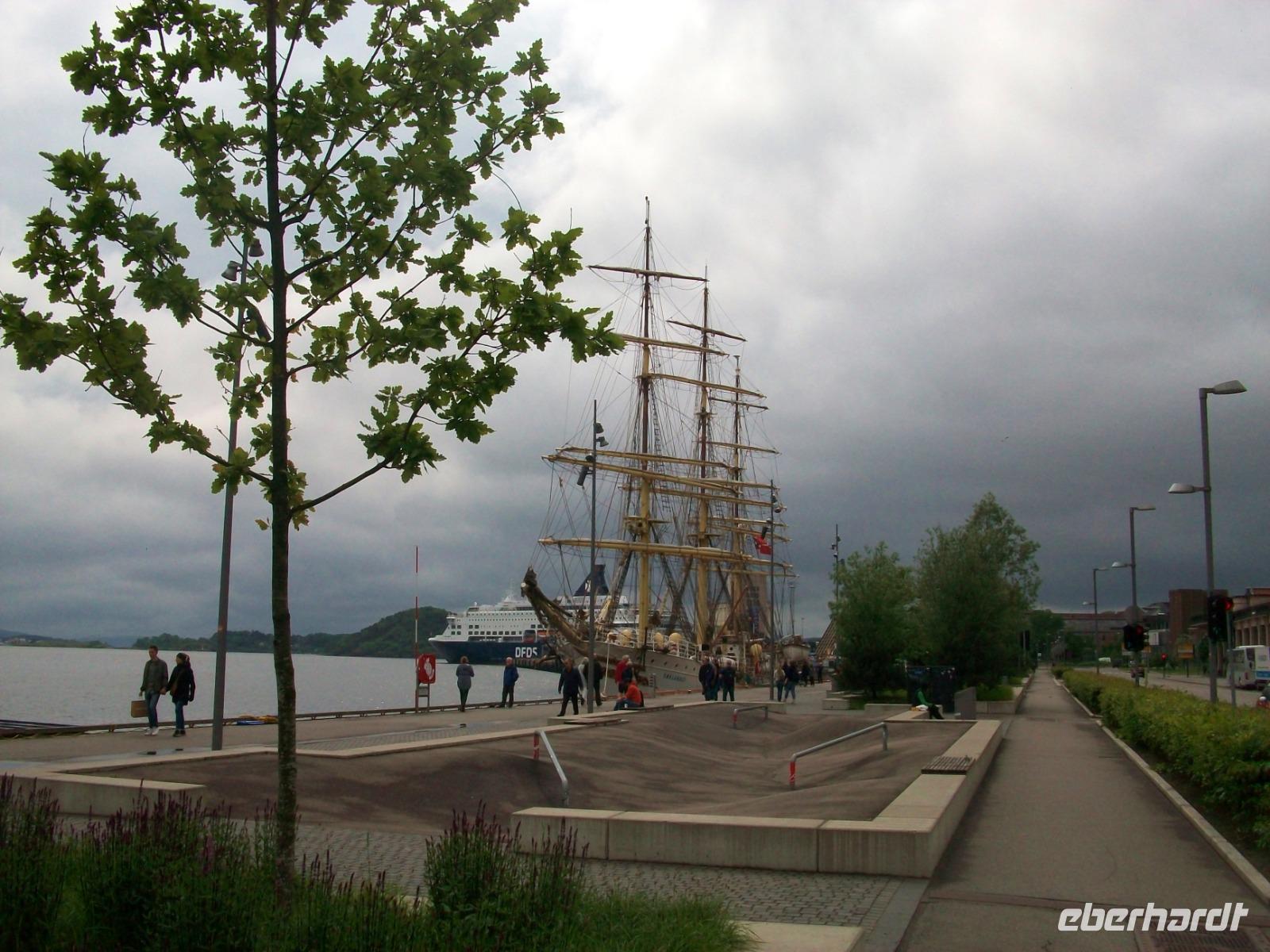 Leider hat sich der Himmel mehr und mehr bezogen als wir an unserem Ziel, dem Hafenort Stavanger, ankommen. Rechtzeitig um noch einen Bummel zu unternehmen; gleich vom Wasser aus gelangen wir in die wunderschöne Altstadt mit ihren malerischen hellen Holzhäusern. Im Hafen sehen wir die Industrie, denn draußen auf dem Meer wird Erdöl gewonnen, eine wichtige Einnahmequelle Norwegens.