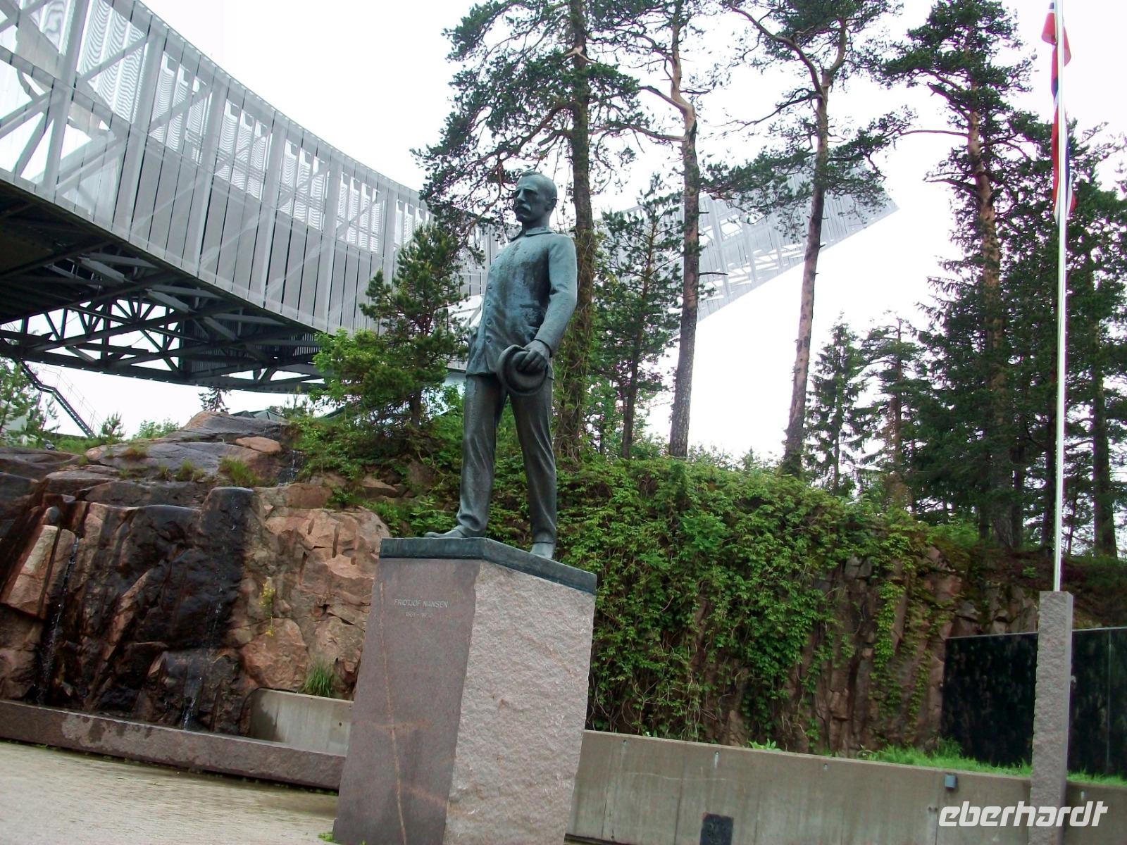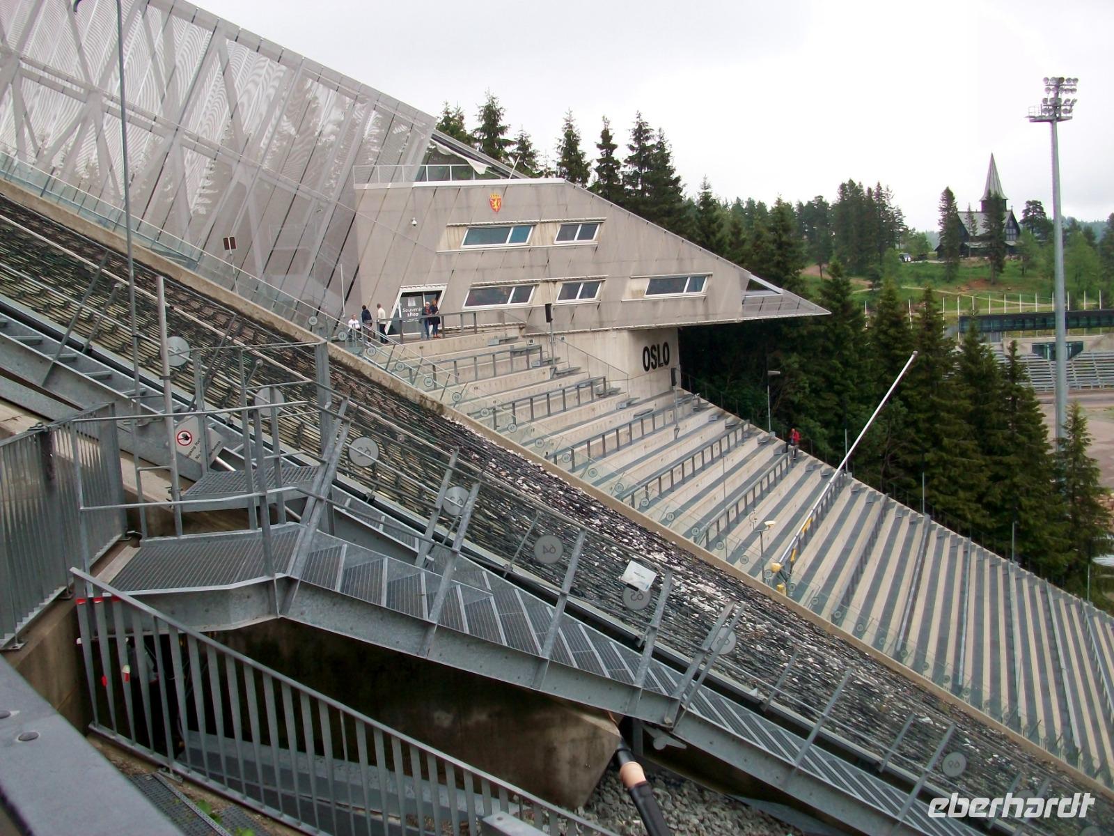 Nun geht es weiter in Richtung Oslo; durch den Operntunnel gelangen wir bald zur Festung Akershus und nach etwas Freizeit geht es gegen drei auf Erkundung in der Norwegischen Hauptstadt. Kreuz und quer durch den historischen Teil, an der sehr modernen Oper entlang geht es bald bergauf. Wenig später sehen wir den futuristischen Bau einer Sprungschanze, wir sind auf dem berühmten Holmenkollen angelangt. Das ist nicht nur etwas für die Sportfreunde, denn von hier oben genießen wir auch einen schönen Blick hinunter auf die Stadt und den Fjord.