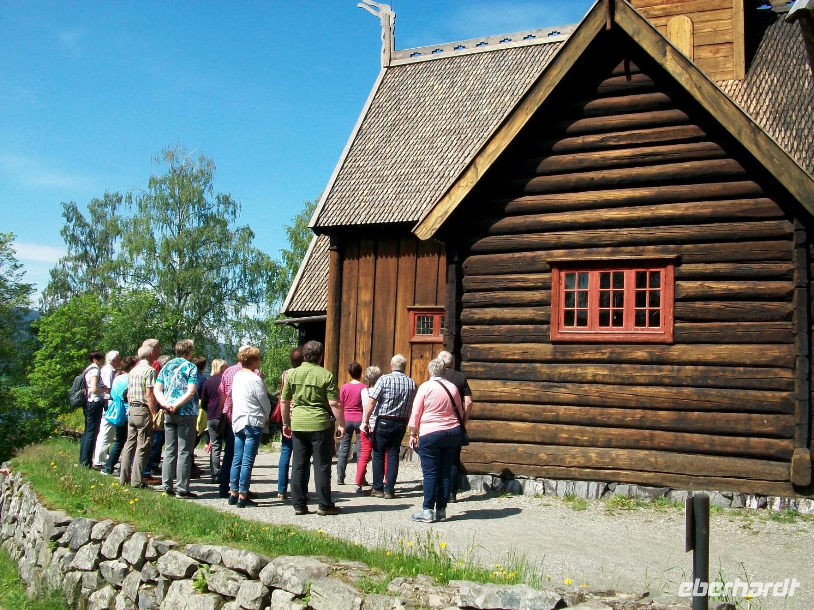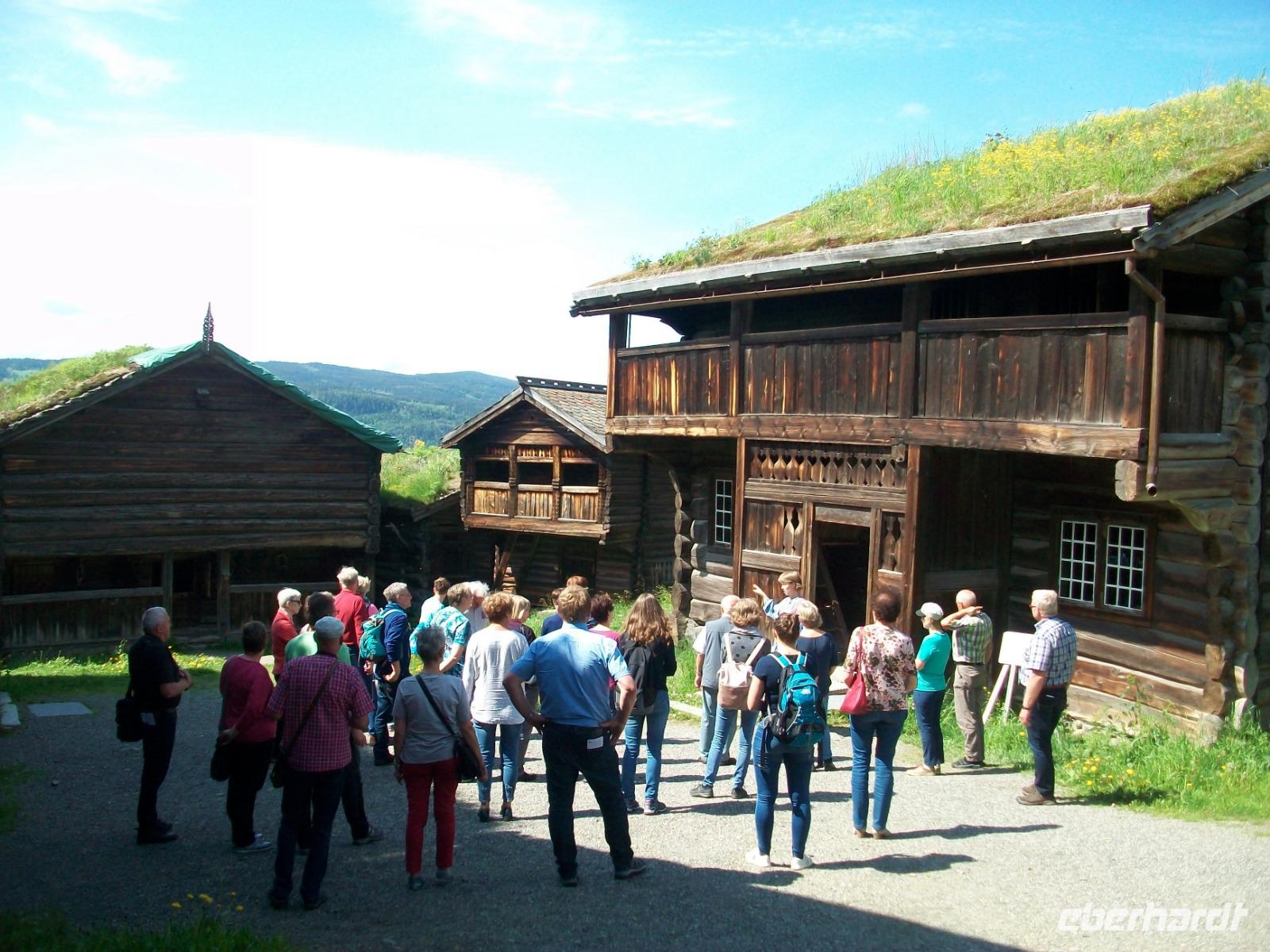 Nach diesem schönen Vormittag genehmigen wir uns ein besonderes Erlebnis und drehen die Zeit dabei gleich um Jahrhunderte zurück. Im Ethnodorf Maihaugen schauen wir uns an wie die Bauern in Norwegen damals lebten. Wir lernen eine Stabkirche, eine alte Schule, einen Bauernhof und vieles mehr kennen.