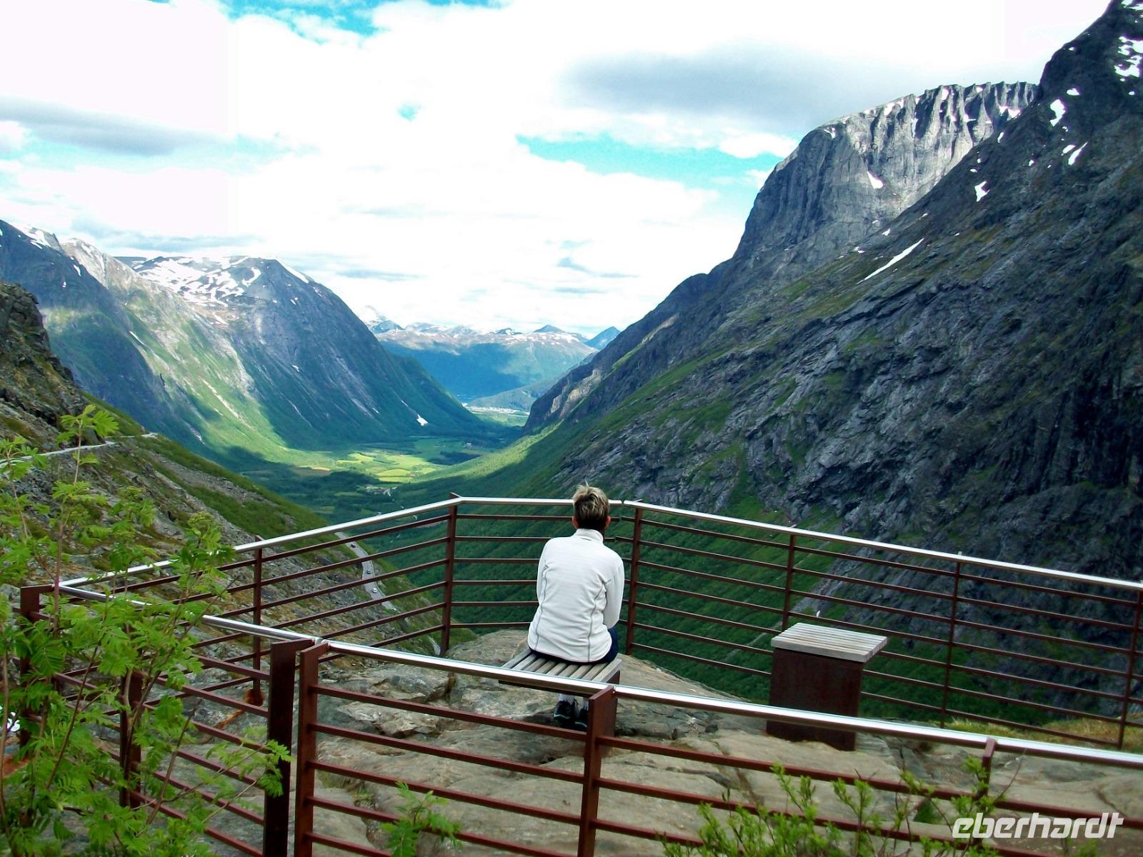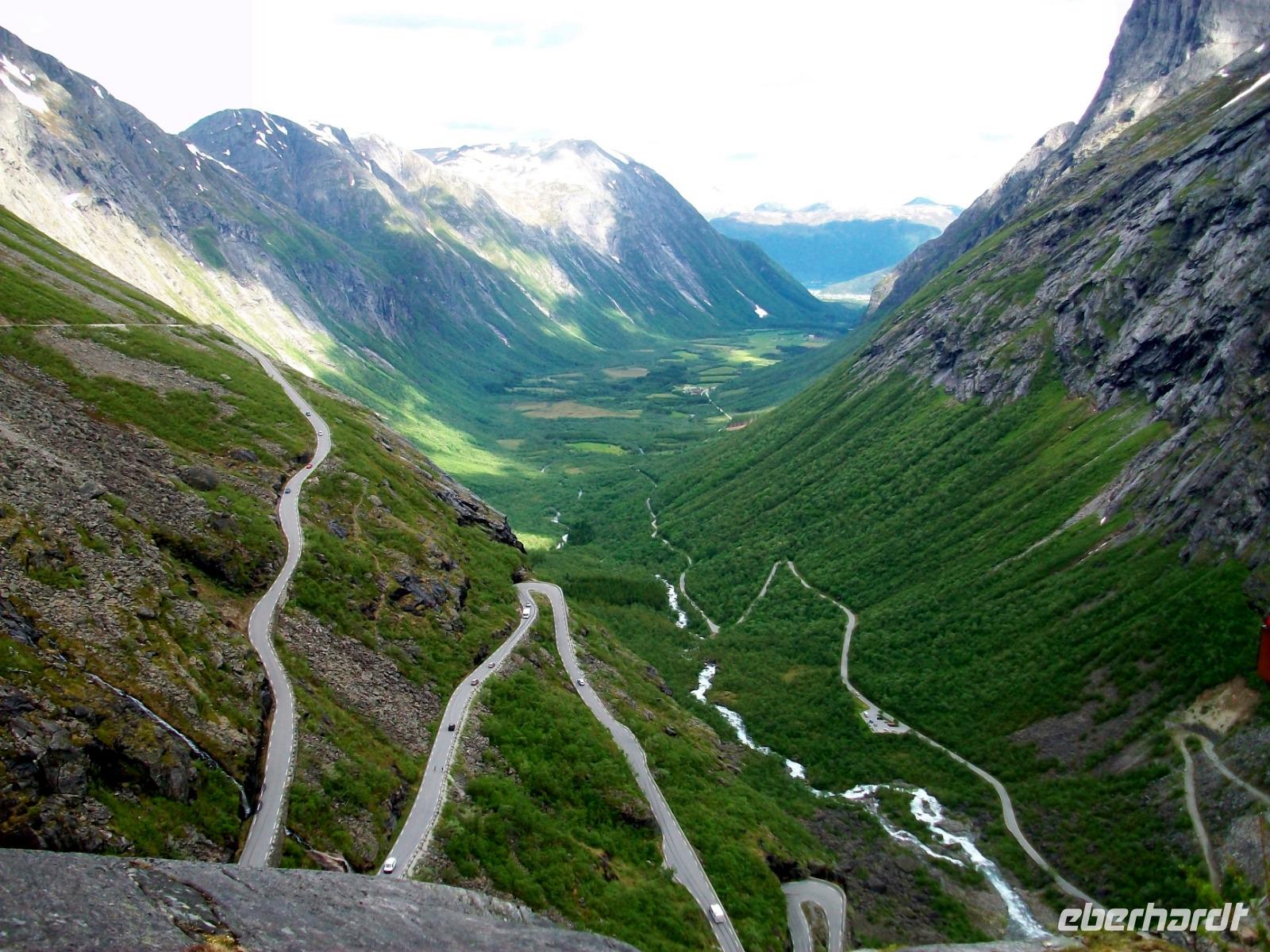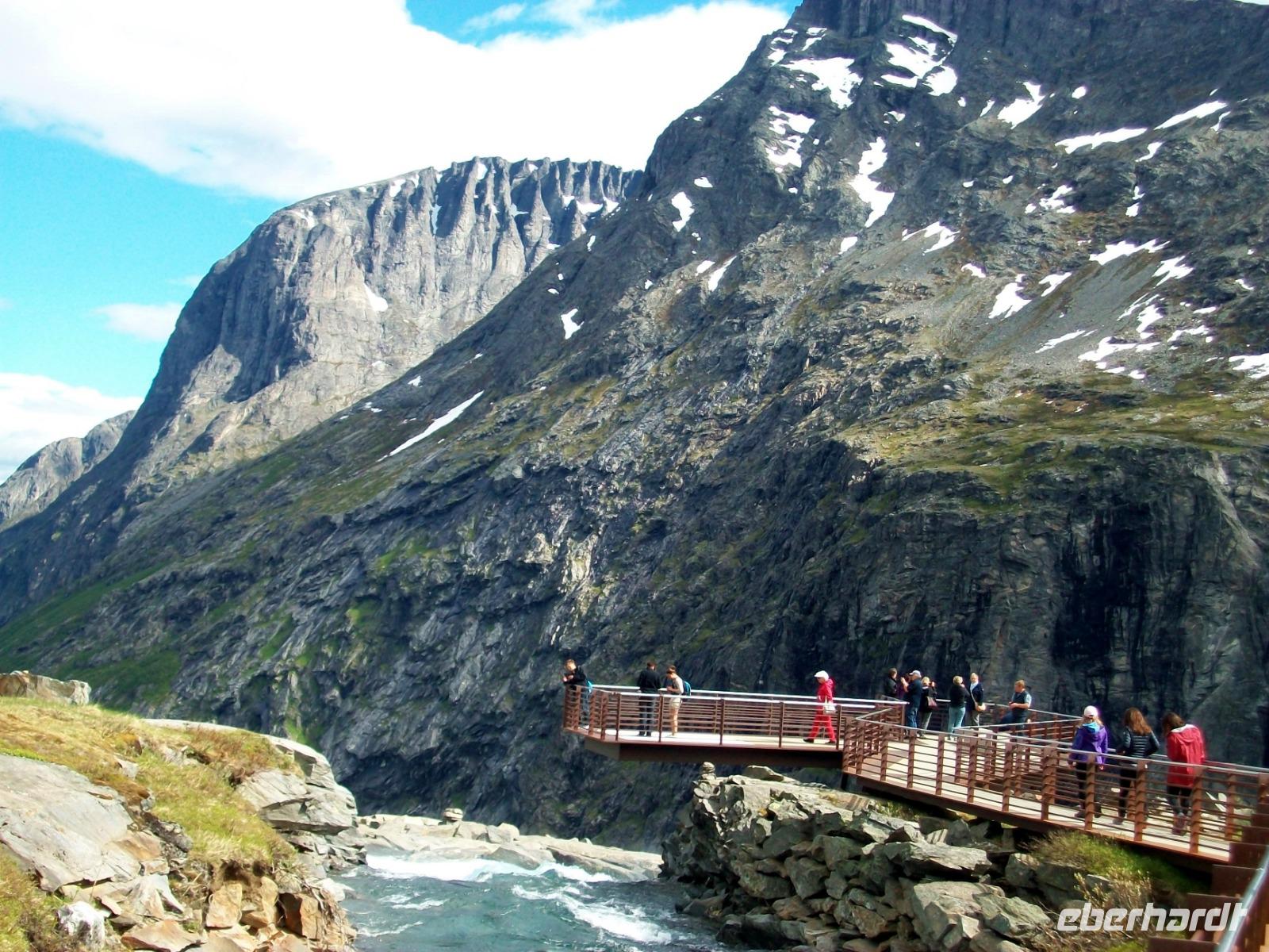 Bald kommen mächtige Berge in unser Blickfeld die immer näher an die Straße heranrücken, sehr beeindruckend ist hier die Trollwand die einen Kilometer senkrecht ansteigt.
