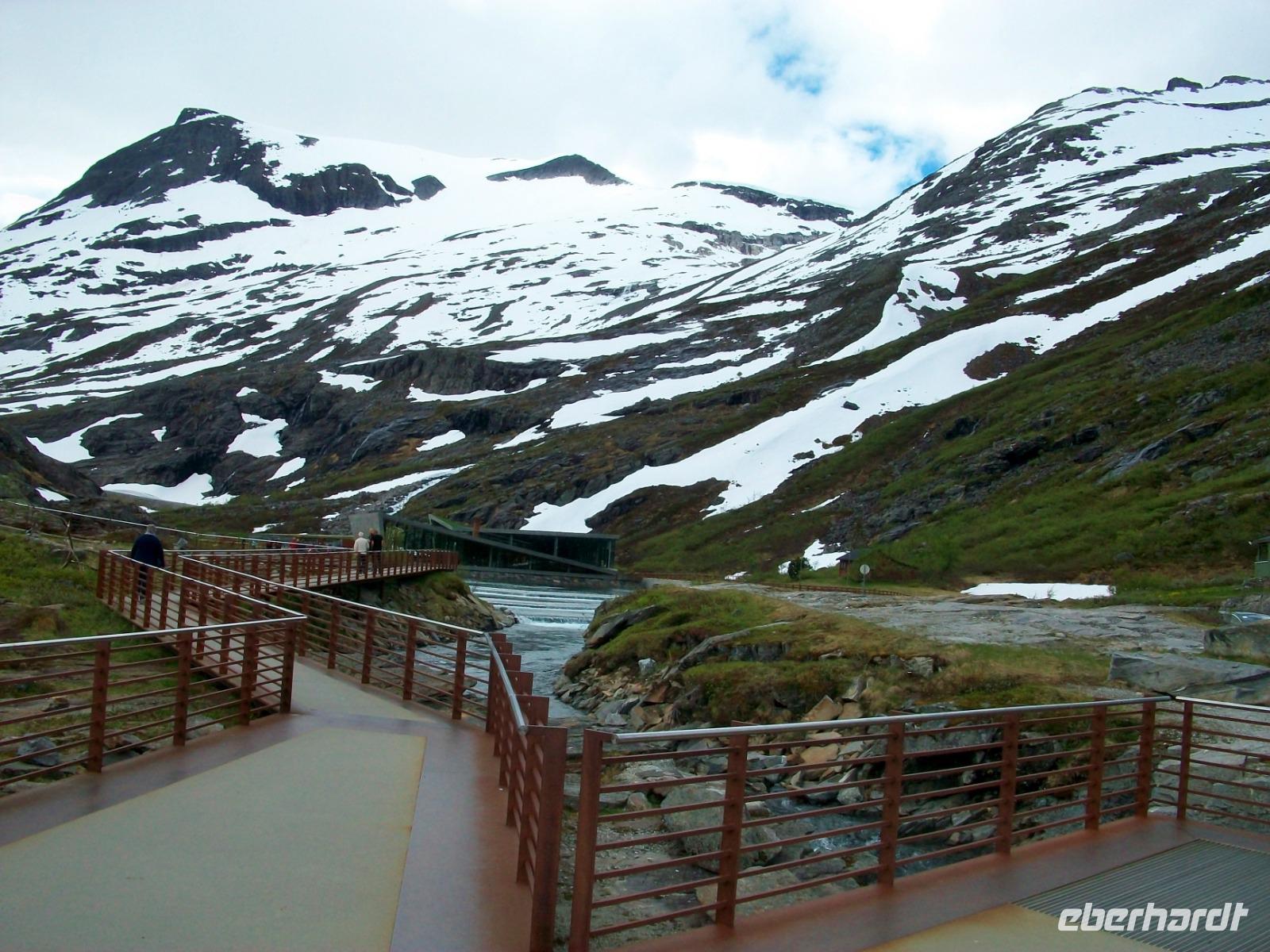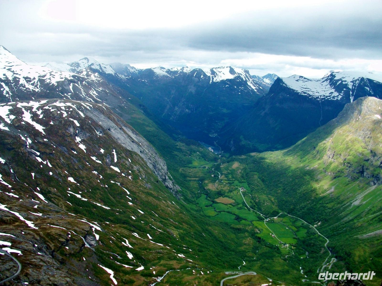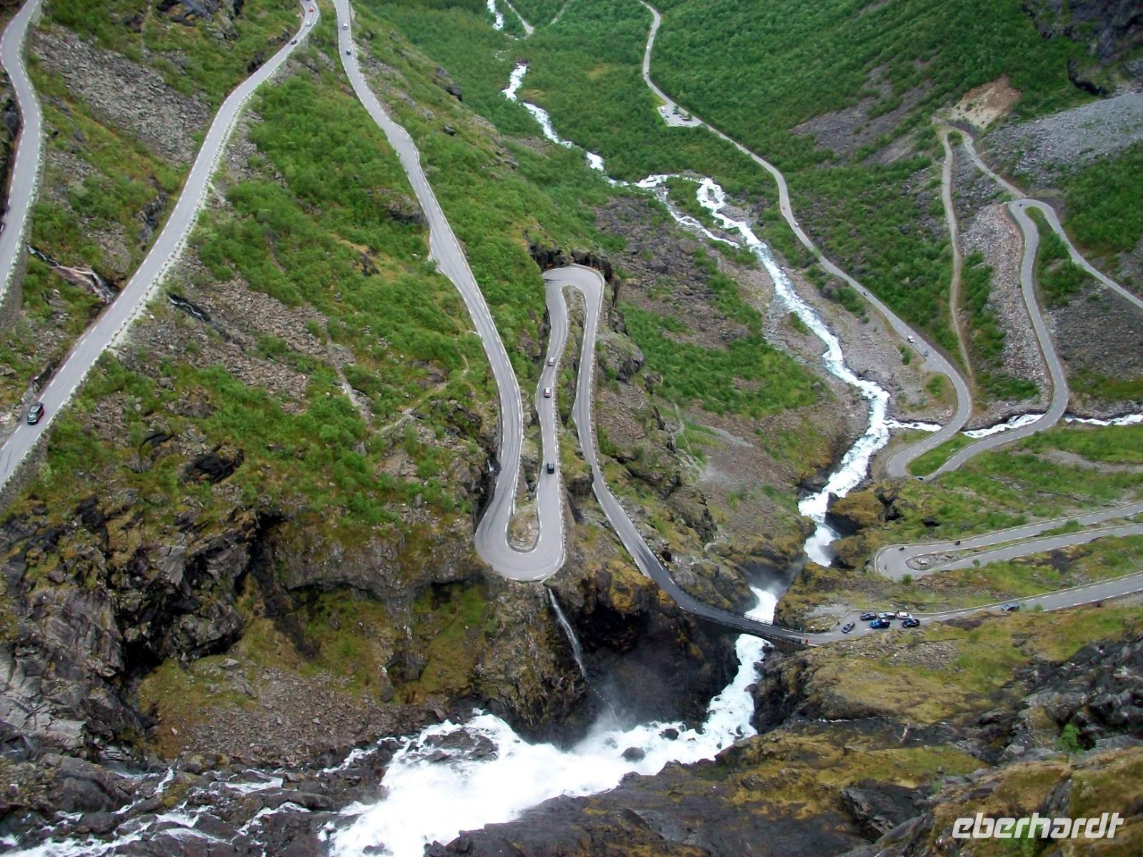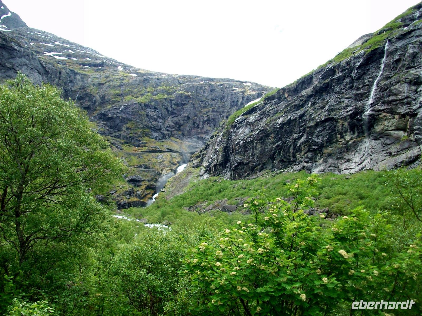 Bald kommen mächtige Berge in unser Blickfeld die immer näher an die Straße heranrücken, sehr beeindruckend ist hier die Trollwand die einen Kilometer senkrecht ansteigt.