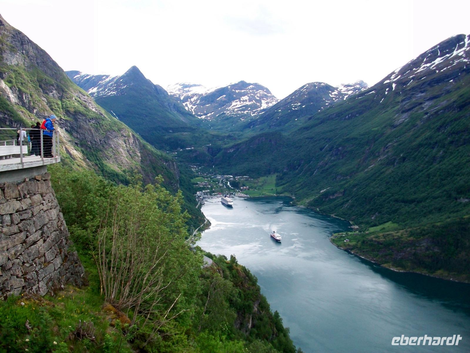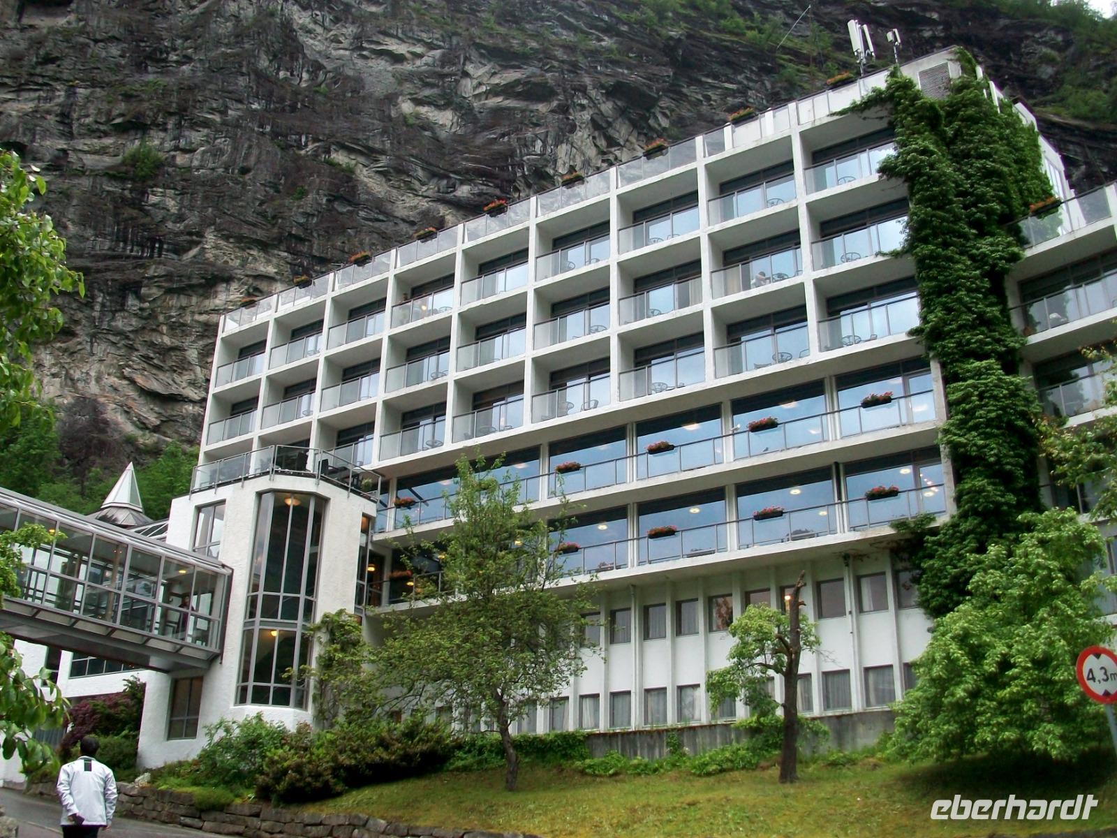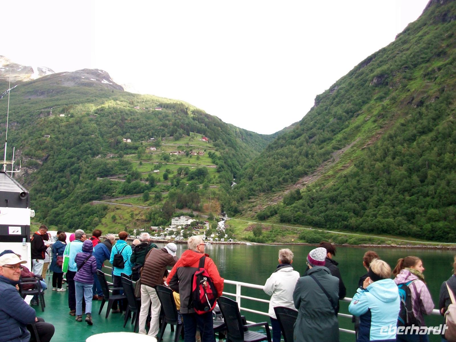Als wir dann an unserem Hotel im Ort Geiranger erreichen, verliert Petrus seine gute Laune und lässt es regnen, das stört uns nun aber nicht mehr! Bei einem gemütlichen Spaziergang nach dem Diner direkt am Fjord, lugt dann schon wieder die Sonne zwischen den Wolken hervor.