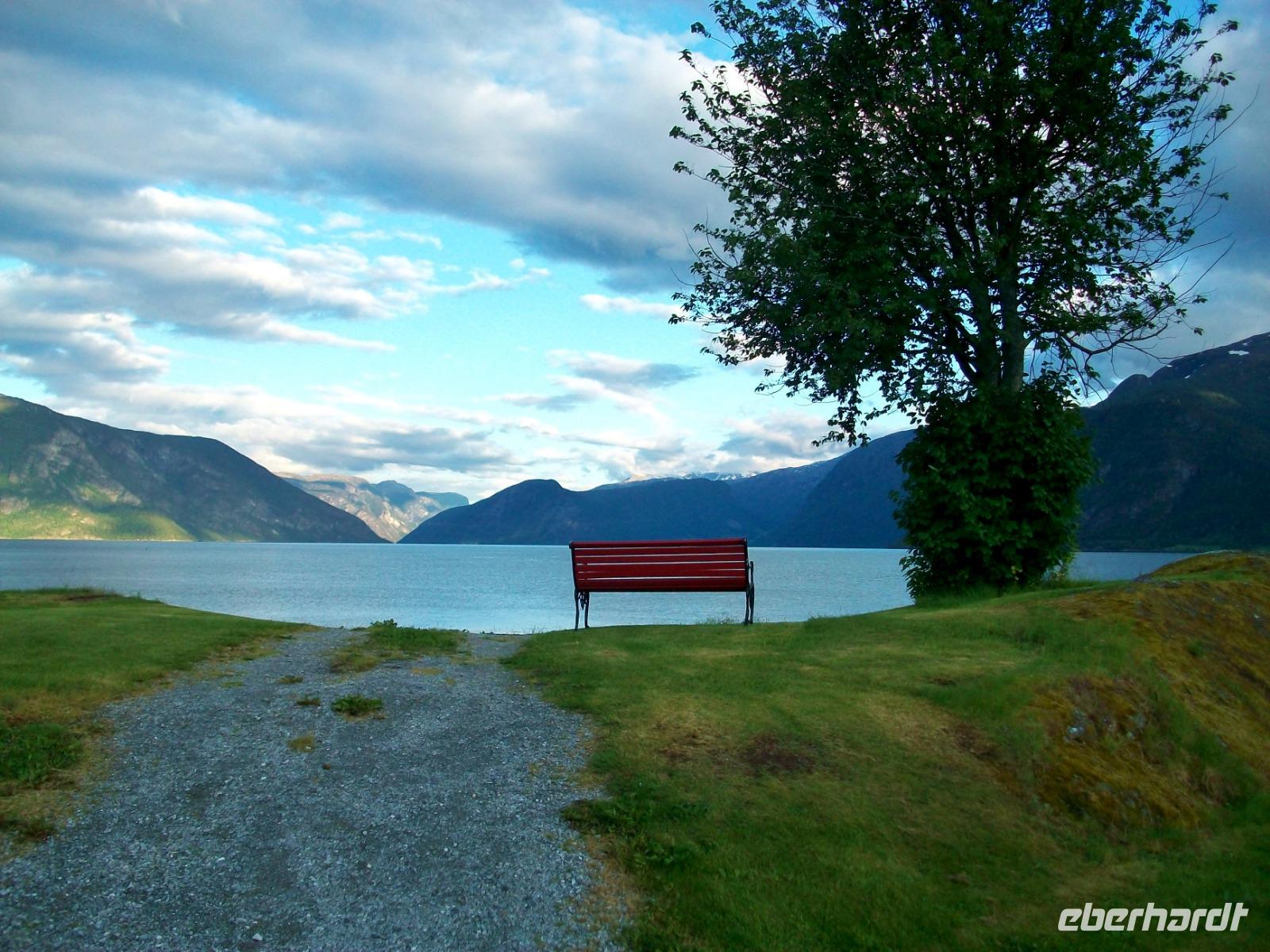 Auch die Weiterfahrt ist voller Eindrücke, mal unten am Fjord, dann wieder oben auf dem Fjell, das macht einfach Spaß. Es ist dann kurz vor sieben als wir in Leikanger anlangen. Das einsame Hotel, historisch und nett eingerichtet, liegt direkt am Sognefjord in einer unberührten, grünen Landschaft; der Bummel hinunter zum Wasser nach der abendlichen Stärkung wird auch hier zum Genuss!