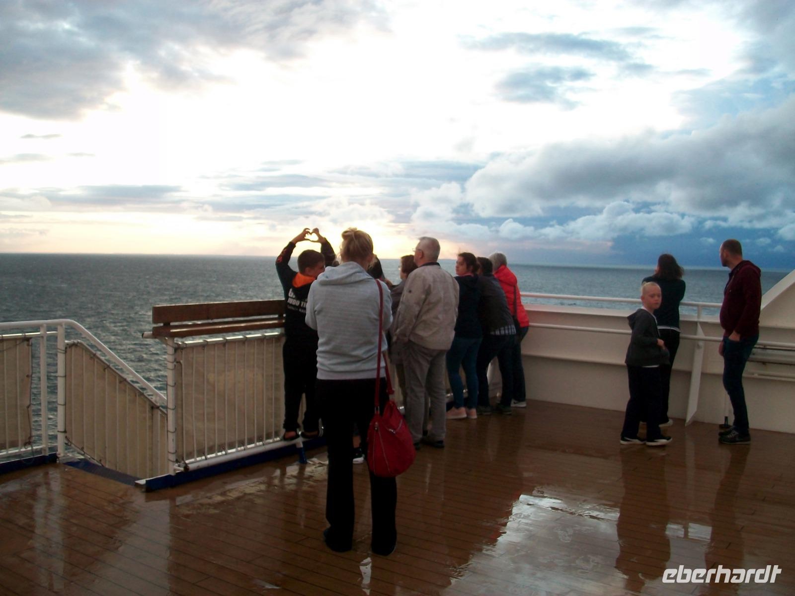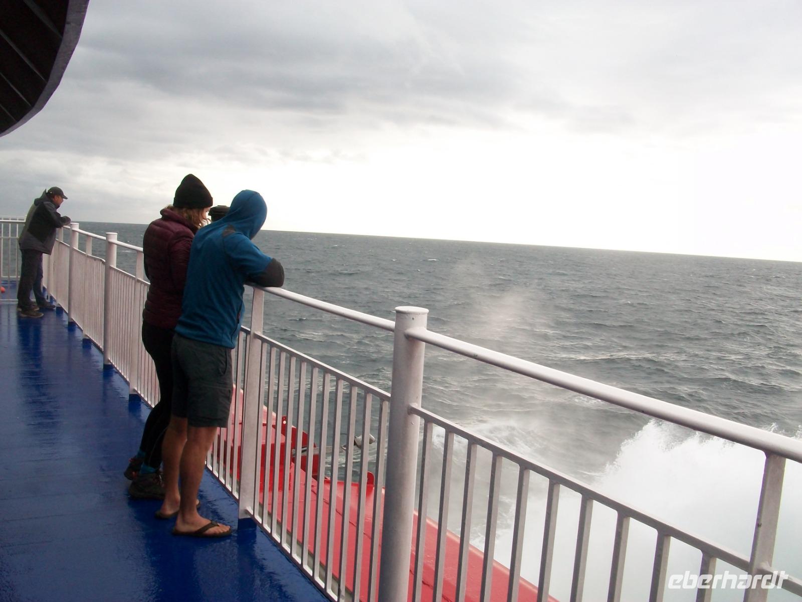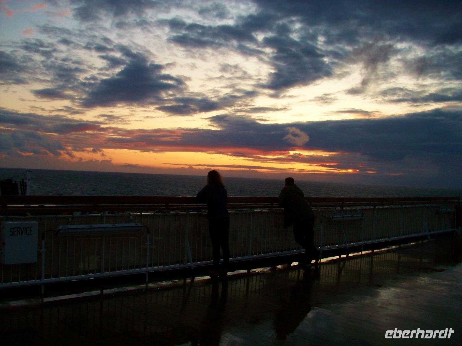 Die Leinen sind eingeholt und langsam setzt sich die Fähre in Bewegung; die Hafenanlagen ziehen an den Fenstern vorbei und gut geborgen genießen wir später eine ruhige Nacht an Bord.
