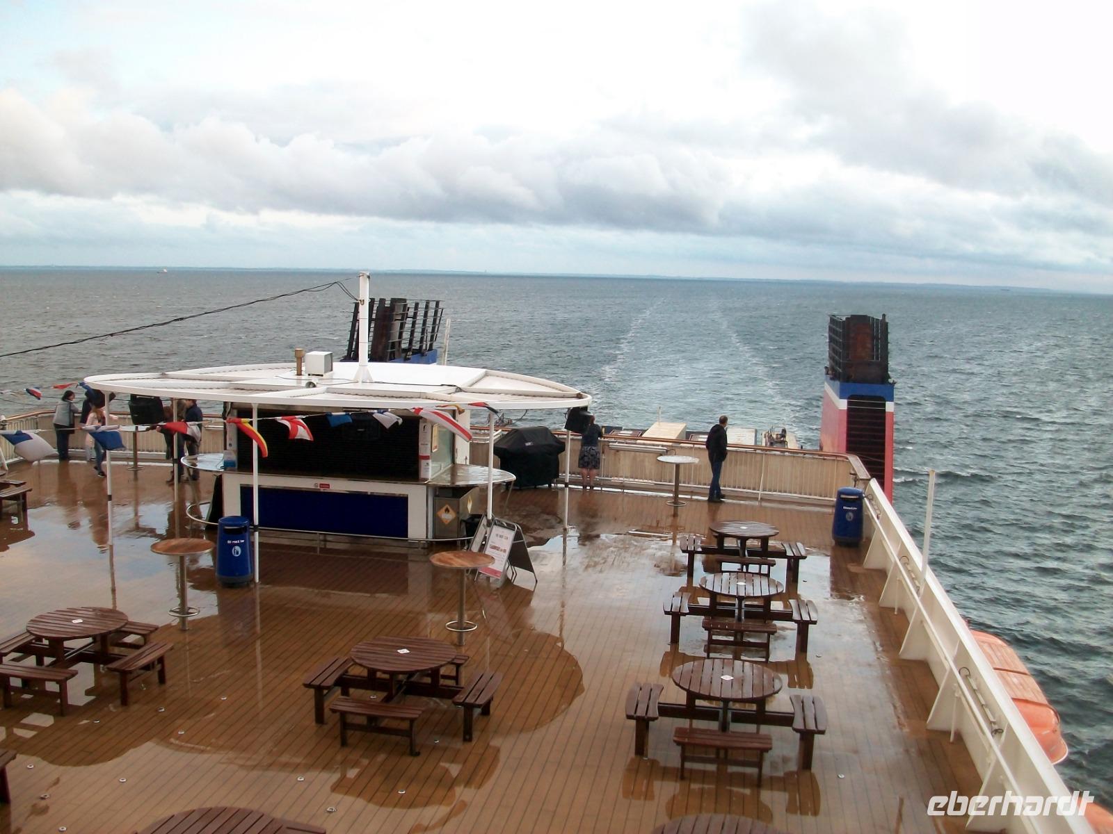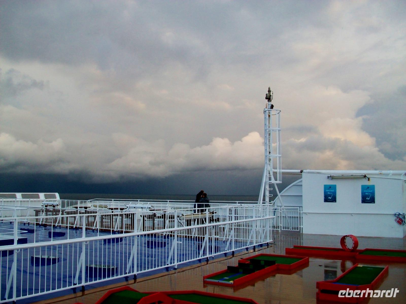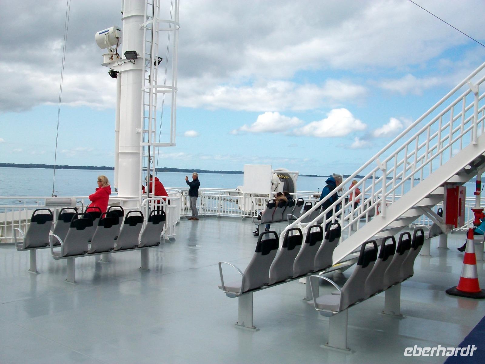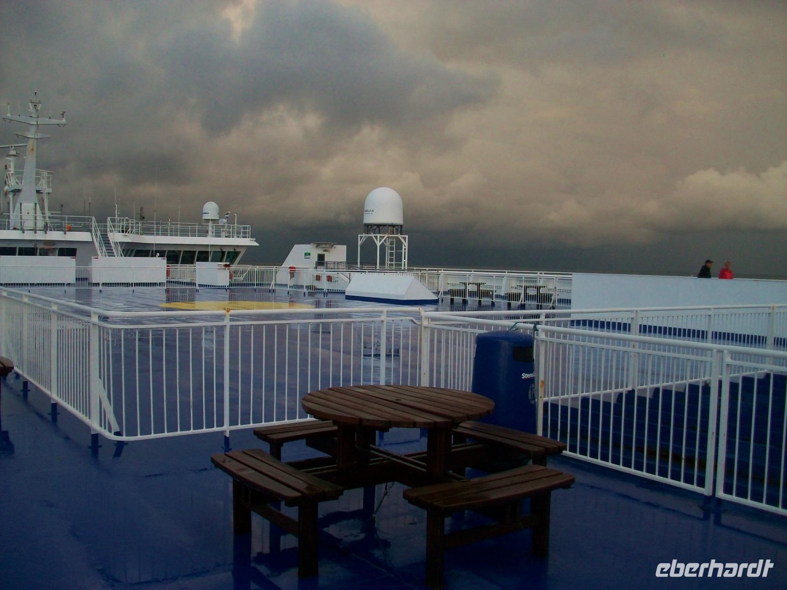Die Leinen sind eingeholt und langsam setzt sich die Fähre in Bewegung; die Hafenanlagen ziehen an den Fenstern vorbei und gut geborgen genießen wir später eine ruhige Nacht an Bord.