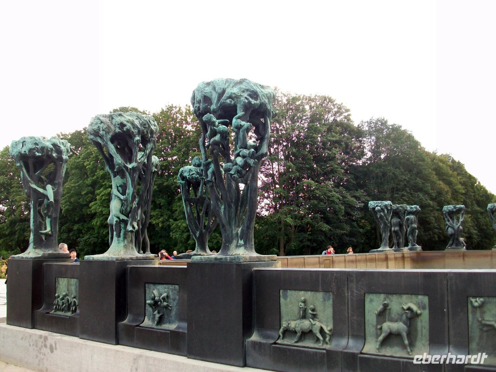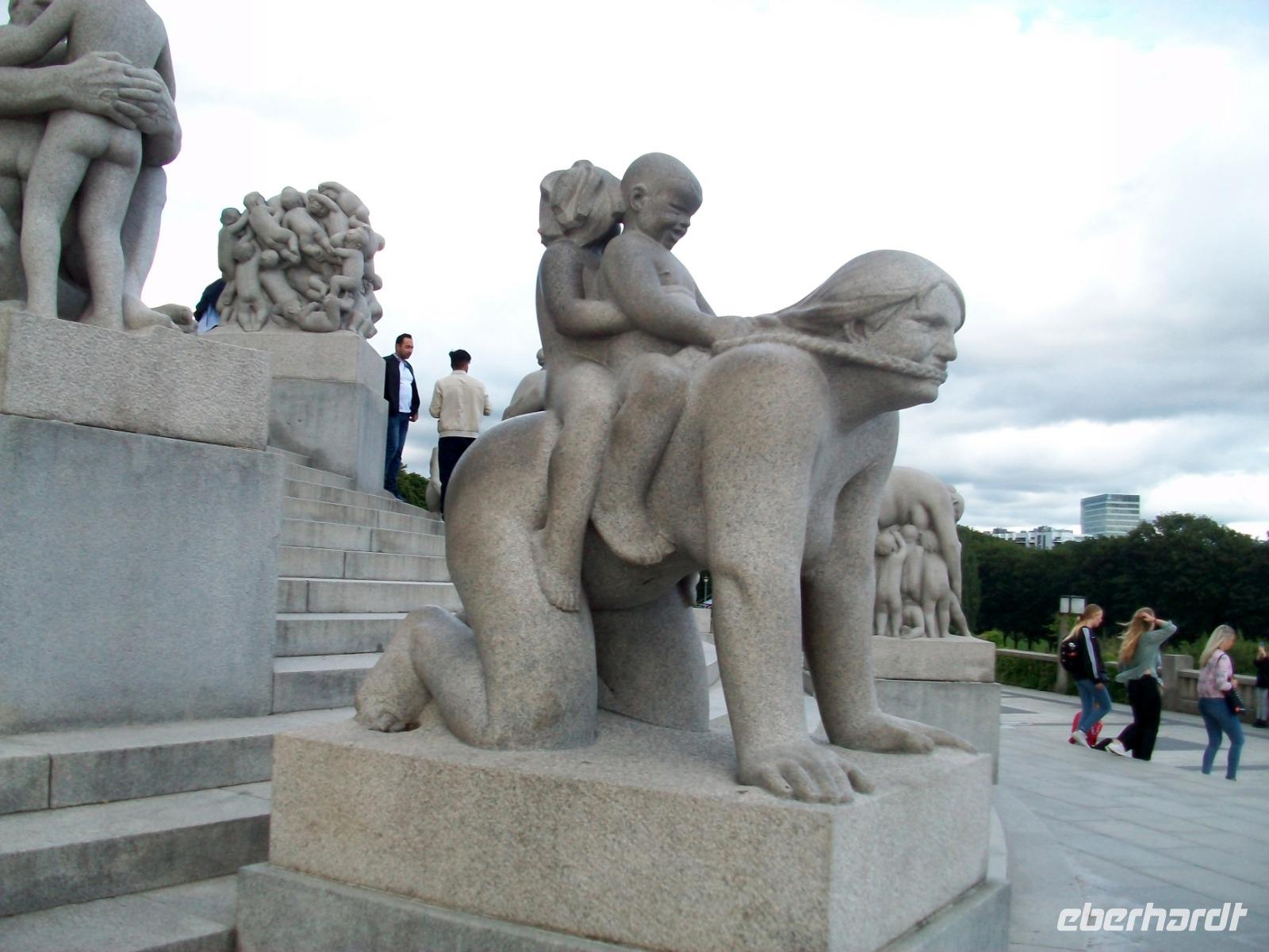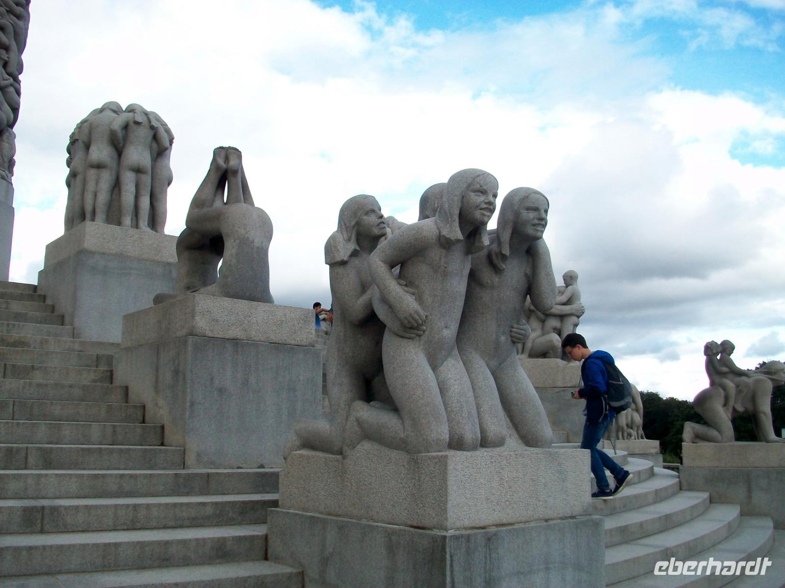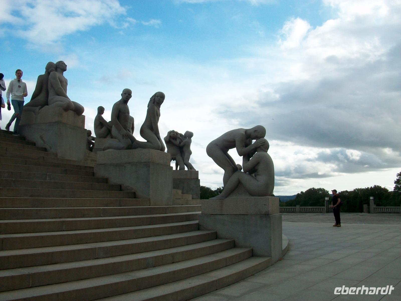 Zum Schluss ein letzter großer Höhepunkt: Wir besuchen den Skulpturenpark den Gustav Vigeland einst schuf. Wir lauschen den Erklärungen unseres Stadtführers und erfahren viel über die Symbolik: den Kreis des Lebens. Dann, gegen sechs, machen wir uns auf, unser Weg führt uns noch ein Stück nach Norden, nach einer Stunde langen wir im Hotel bei Dal an, ein schöner Tag wird mit einem leckeren Diner beendet.