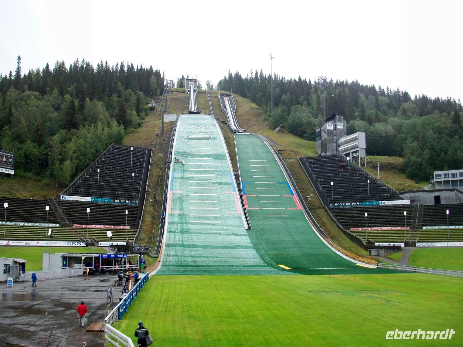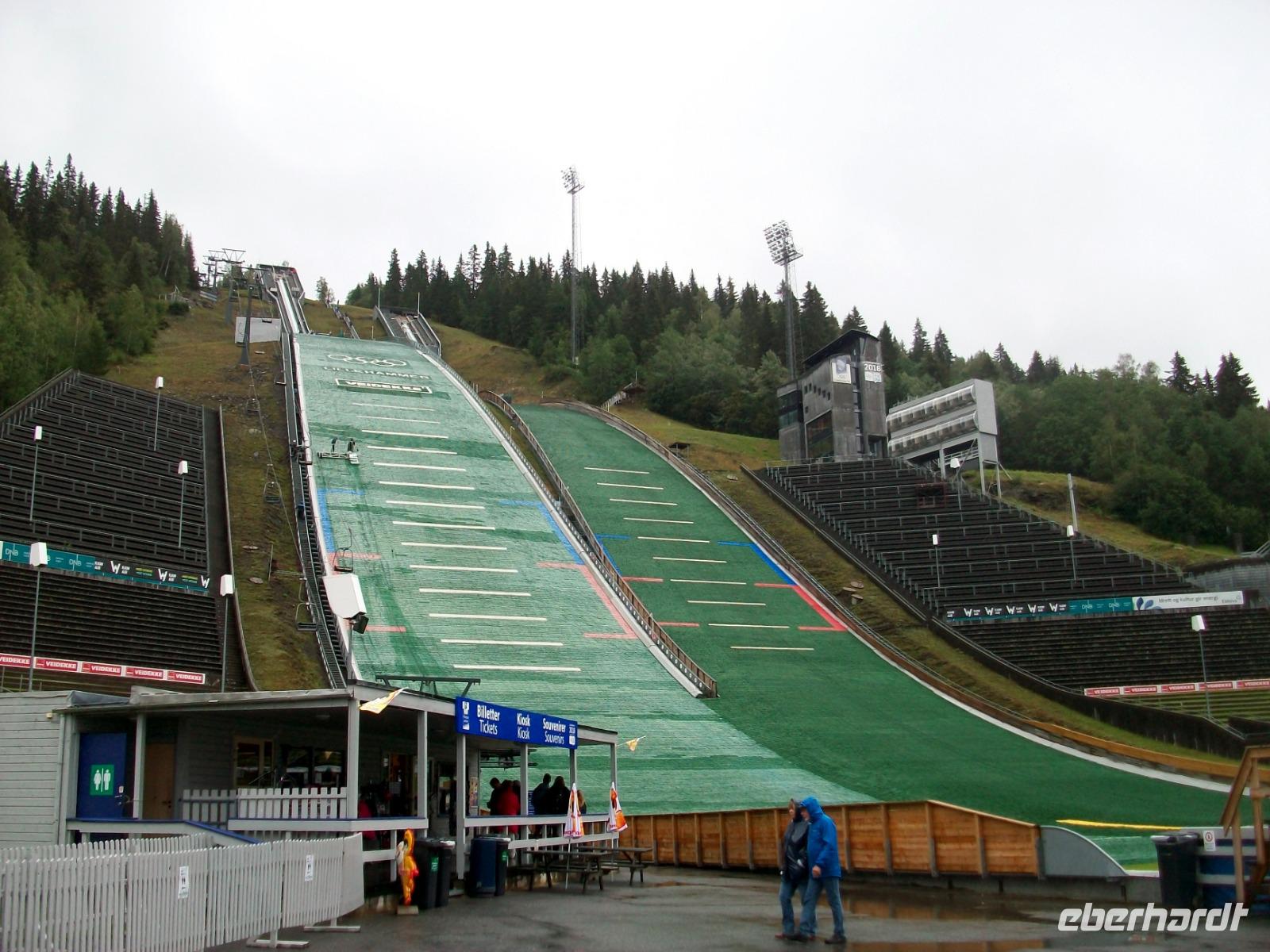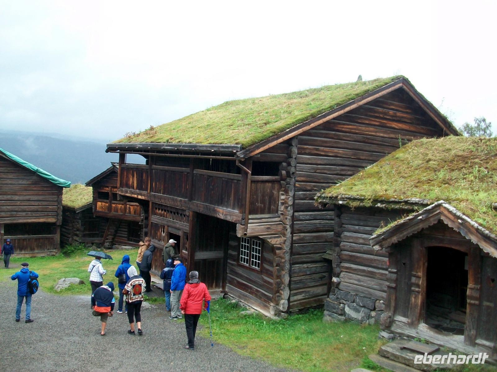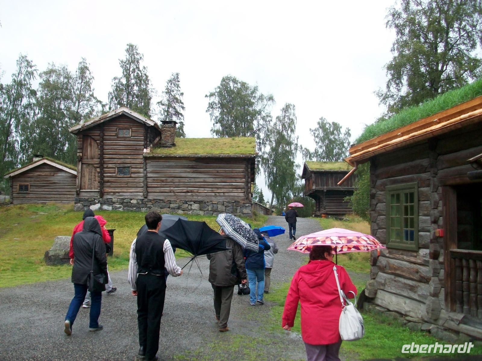 Pünktlich gegen neun starten wir und gelangen über die Europastraße 6 gen Norden. Bald zeigt sich uns auf der linken Seite die große Wasserfläche des Mjøsasees, an seinem Ufer entlang verläuft unsere Tour. Norwegen ist ein Wintersportland, 1994 fanden hier Olympische Winterspiele statt und im Ort Hamar bewundern wir die Eissporthalle die wie ein Wikingerschiff aussieht. Bald kommt aber Lillehammer in Sicht, von Fern sehen wir die Sprungschanzen, ihnen gilt unser nächster Besuch. Staunend schauen wir vom Auslauf hinauf zum Turm, der Mut der Sportler die sich hier hinunterwagen scheint grenzenlos zu sein.