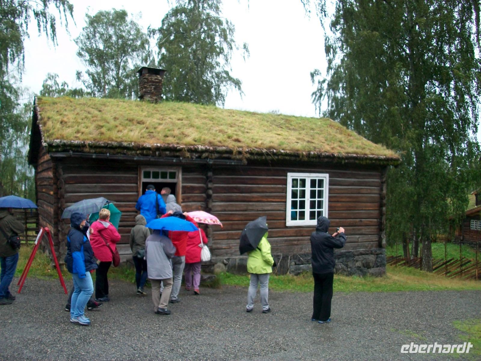 Dann brechen wir auf, begleitet von Schauern gelangen wir ins Gudbranstal, hier lebte einst Peer Gynt und wir genießen im Trockenen sitzend die schöne Natur und die reizvollen Orte im Vorüberfahren. Am Ende unserer heutigen Reise langen wir oben im Ort Dombås an und nach dem Abendessen lässt sich sogar kurz die Sonne sehen, das lässt hoffen!
