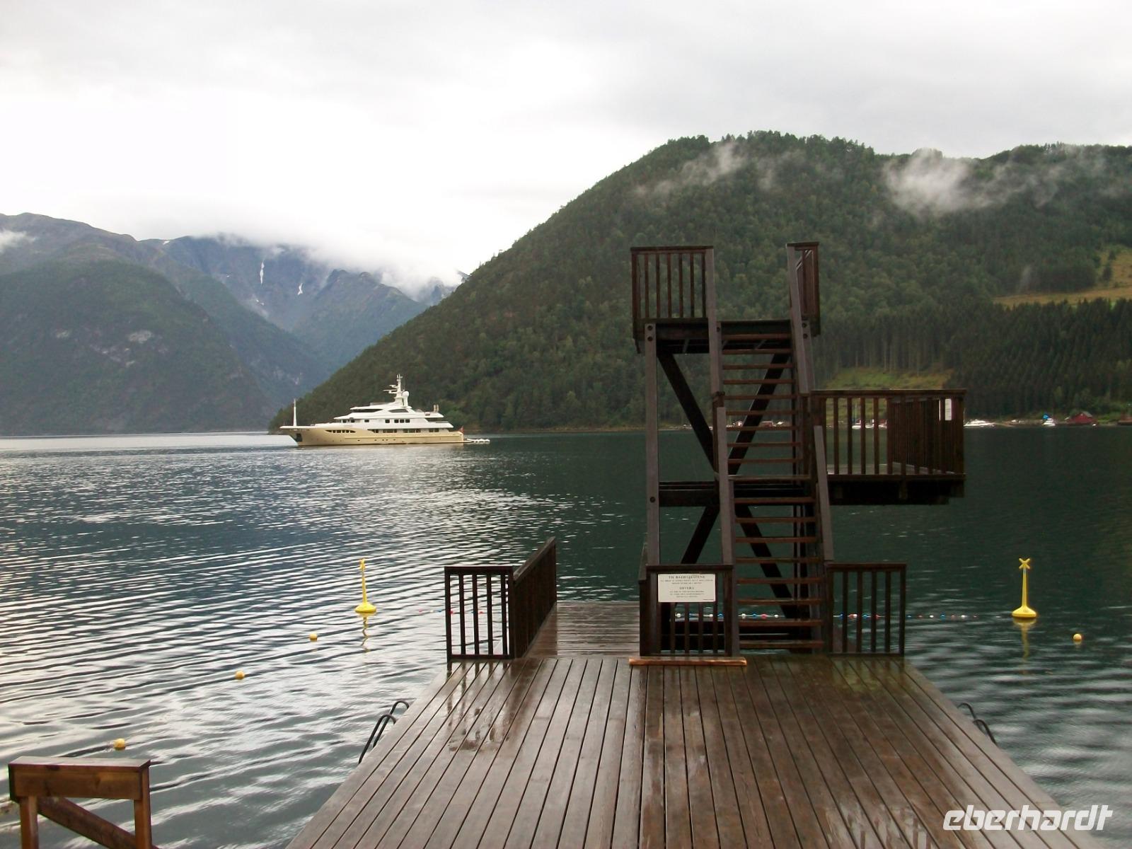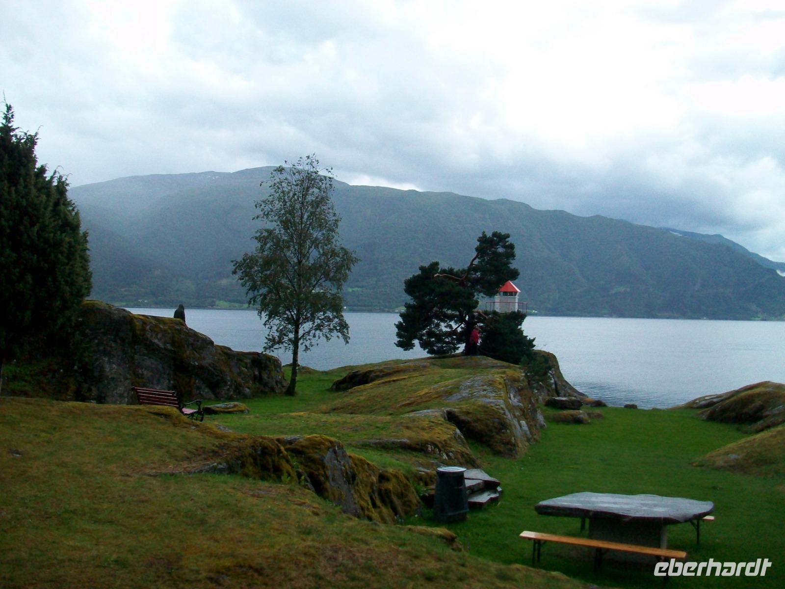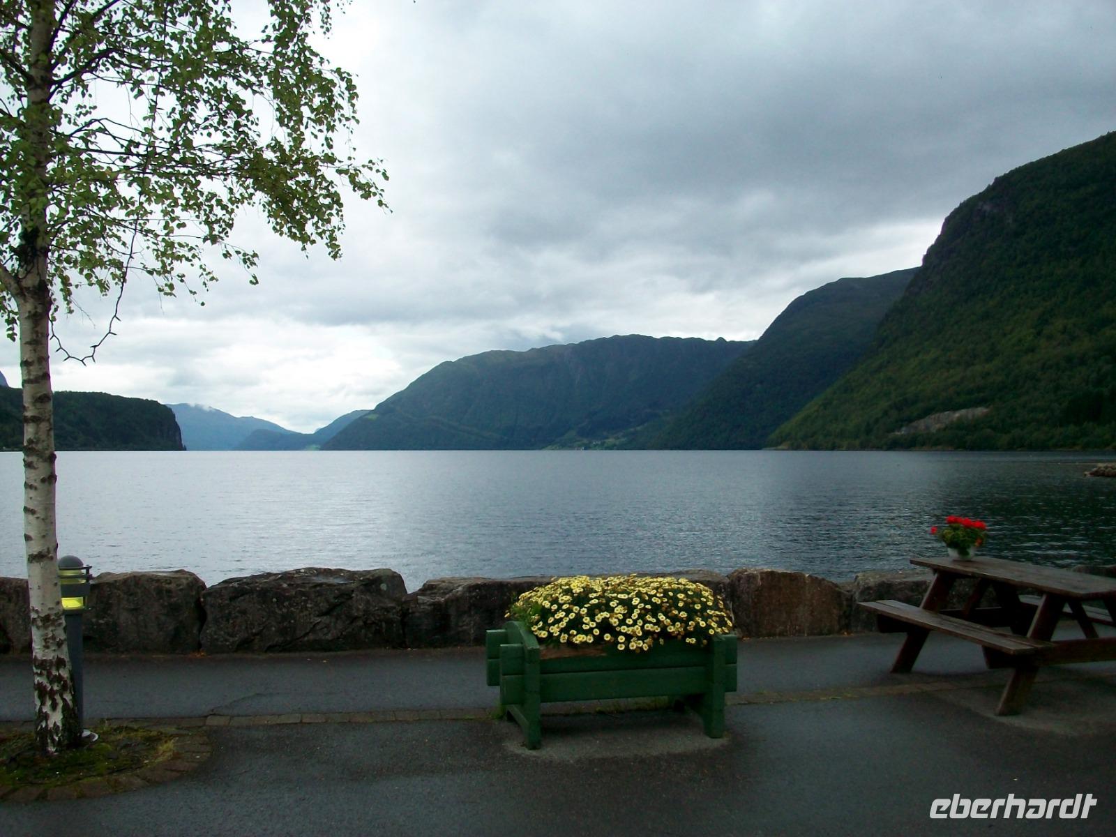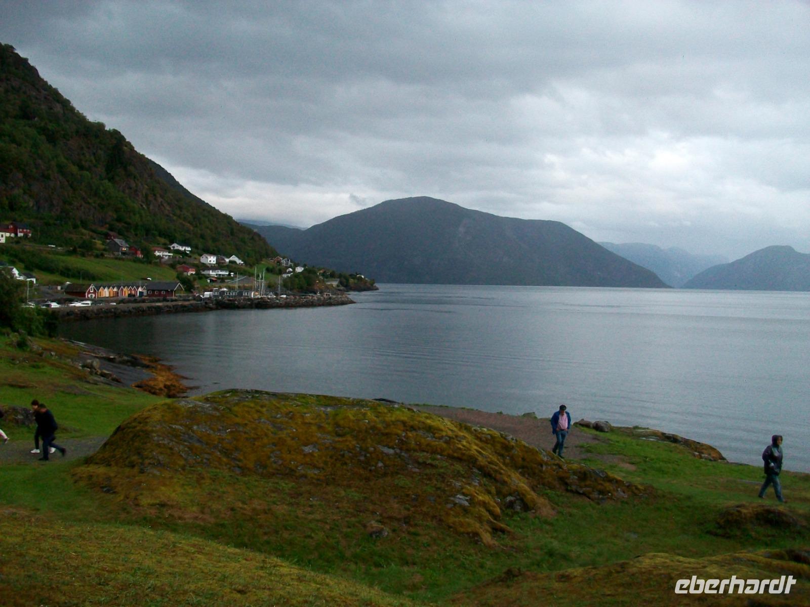 Nun ist der Regen für den Rest des Tages unser Begleiter, aber er stört uns nicht mehr, denn warm und trocken sitzen wir geborgen im Bus und kommen unserem Ziel für heute immer näher. Über Fjells und durch tiefe Wälder, entlang von Hochebenen und vorbei an malerischen Orten senkt sich die Straße bald ab und vor uns taucht die weite Wasserfläche des Sognefjords auf, wir haben unser heutiges Ziel erreicht. Im Hotel in Leikanger genießen wir einen besonderen Aufenthalt, die wunderbare Einrichtung versetzt uns in vergangene Jahrhunderte und solcherart urig genießen wir hier, direkt, am Fjord, eine schöne Zeit.