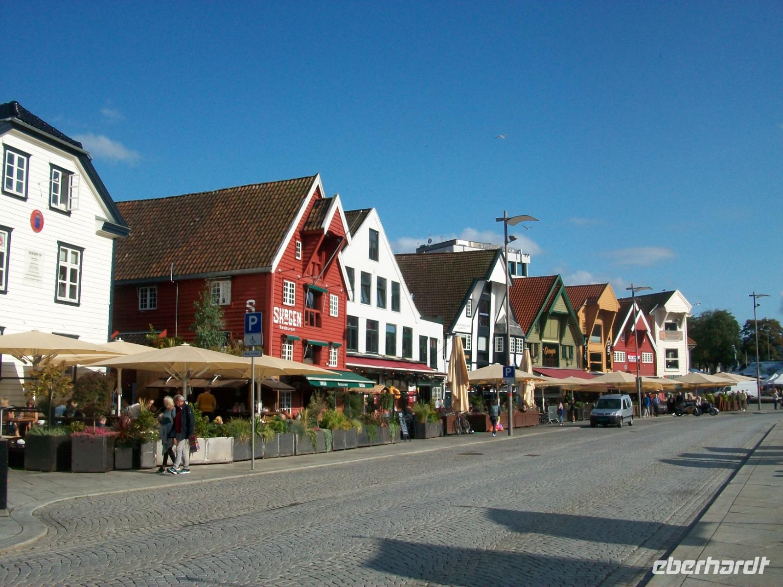 Dann kommen wir dem Wasser ganz nah und im Ort Stavanger genehmigen wir uns noch ein Stündchen für einen Bummel in der pittoresken Altstadt. Hier kann man schnell vergessen dass die Stadt eigentlich von der Erdölindustrie geprägt ist, überall gemütliche Restaurants, Straßencafés und ein munteres Leben von Menschen aus vielen Nationen.