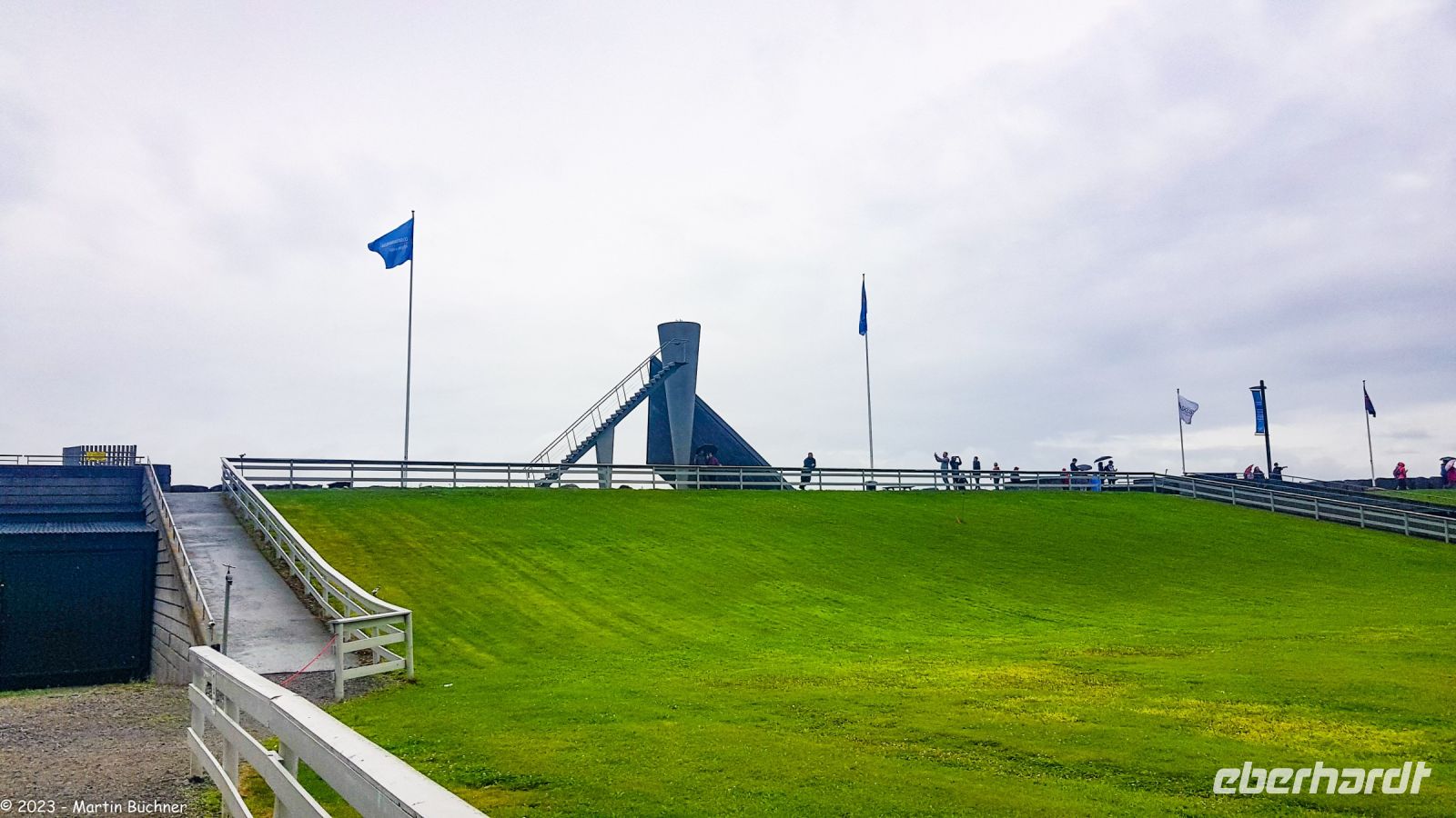 Das Wetter klart im richtigen Moment auf, so dass wir die Schanzen über die Treppen ablaufen können.