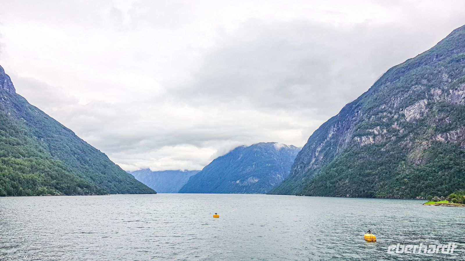 Das Schiff folgt dem Nærøyfjord bis zur Mündung in den Aurlandsfjord, Nebenarm des Sognefjordes.