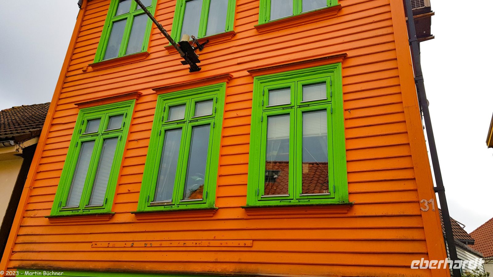 Wir steigen am Bahnhof Myrdal in die Vossbane bis nach Voss um, sie verkehrt auf der Route der berühmten Bergenbahn. Noch einmal Glück – die Bergenbane war aufgrund von „Hans“ komplett gesperrt, nur unsere Vossbane in Richtung Voss und Bergen verrichtete noch ihren Dienst. Am Abend erreichen wir bei Sturm Bergen.