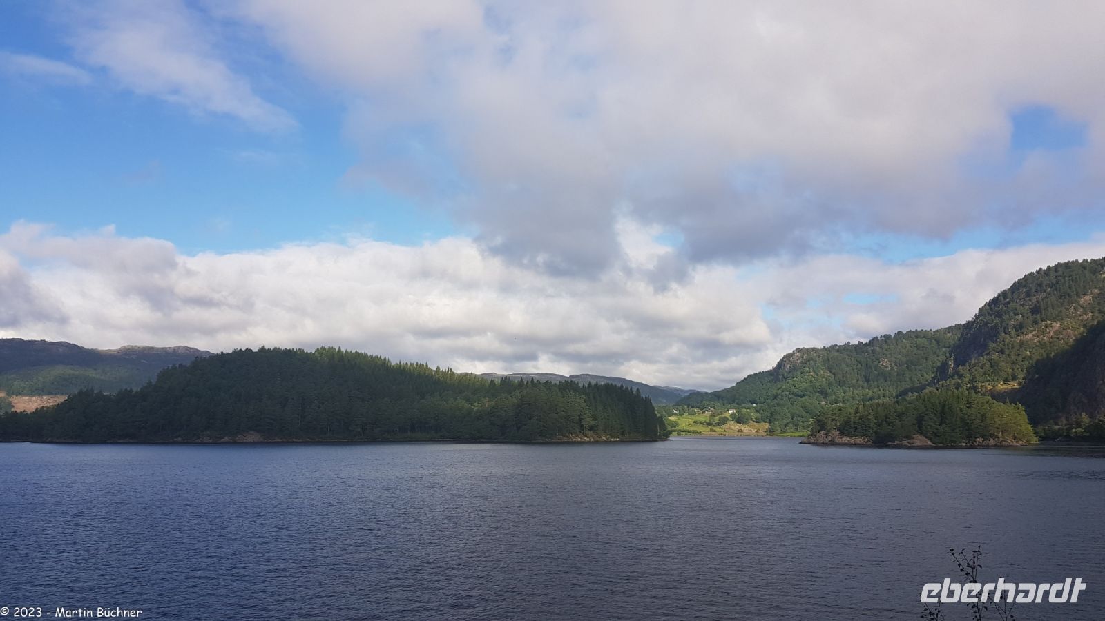 Von Stavanger folgen wir der E39 durch das Sørlandet. Wir fahren vorbei am Kap Lindesnes, dem Südkap Norwegens. Wir erreichen Mandal, die weiße Stadt und Geburtsstadt des Gustav Vigeland (Park in Oslo).