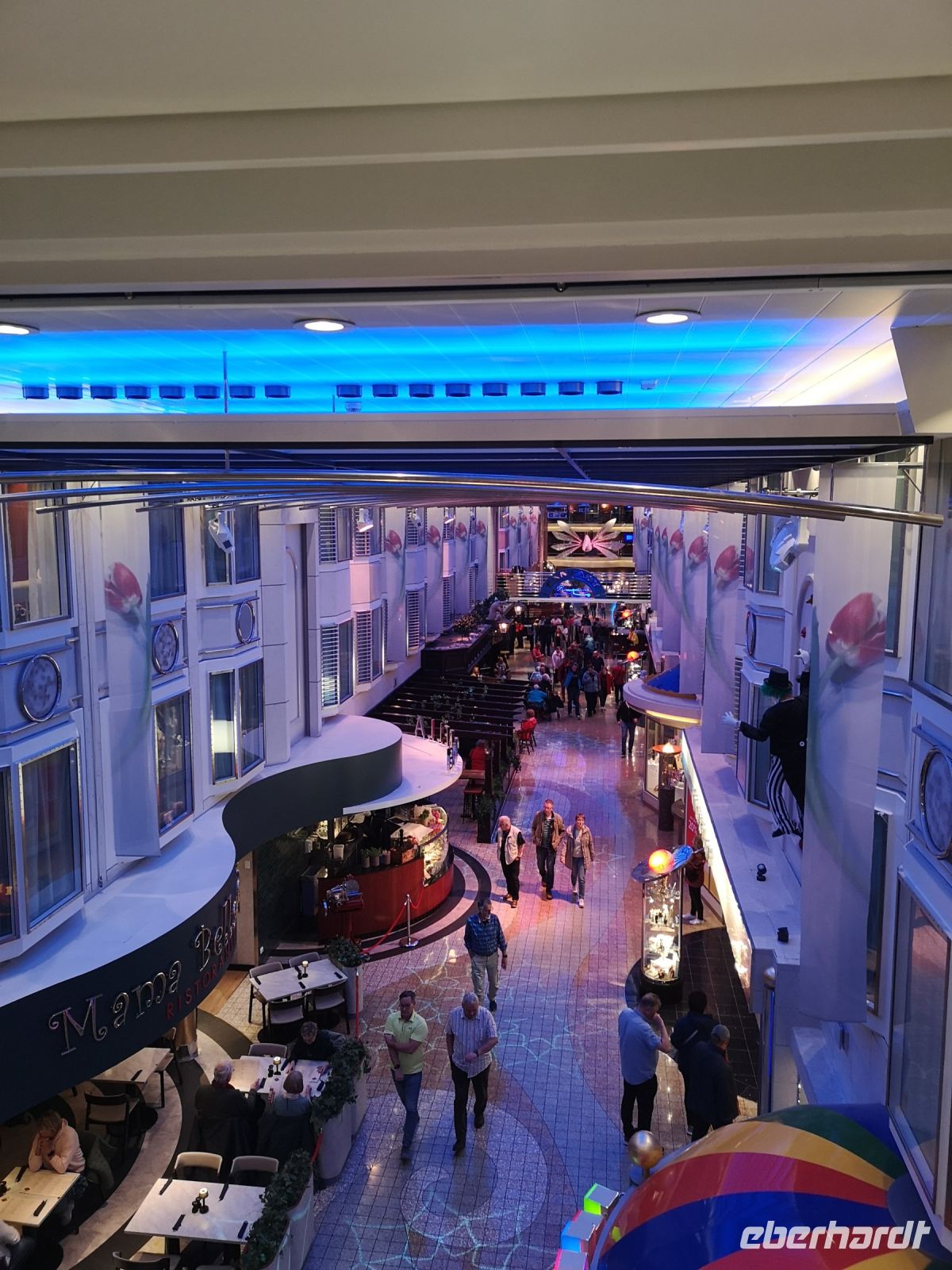Fantasy kam mir vor wie ein großer Bienen(Menschen)stock. Die Stimmen, die sich in ein einziges Summen bündeln, ein leises Brummen von den Schiffsturbinen, aus jeder Lounge oder Bar kam die Musik. Überall Menschen – in den Korridoren, auf dem Promenadendeck,in der Bummelmeile……. Trotz allem kann man das Ganze so schön ausblenden – in der Kaffeelounge bei einer guten Tasse Kaffee. Eine leichte Müdigkeit kroch über den Körper, schließlich ist man seit Mitternacht schon auf den Füssen. Auch viele unserer Gäste haben gewiss kein Auge zugemacht, bevor man um 2.30 Uhr Dresden verlassen hat. 12 Stunden und 650km mit etlichen Abholungen und Stopps lagen zwischen den ersten Begegnungen unserer Reisegruppe