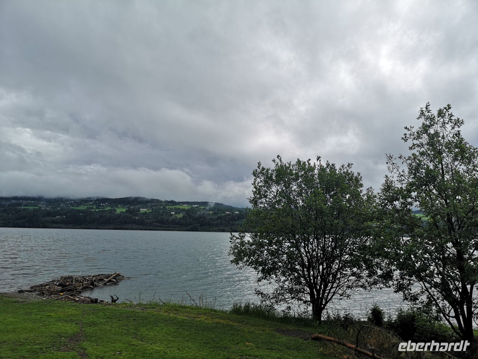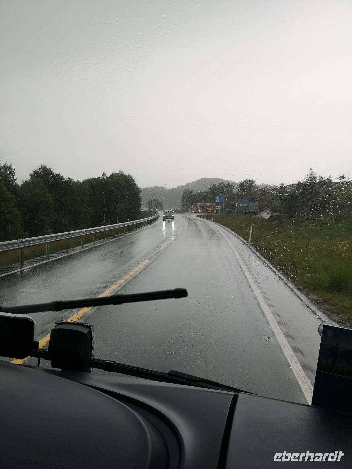 Die anderen 100 Ausdrücken vom Regen kamen bald danach im aller Pracht auf uns runter: nun ja, es ist der letzte Tag, die letzten Kilometer auf norwegischen Boden und so nimmt man den Regen einfach als etwas Selbstverständliches hin. Die Hauptsache ist: wenn man aussteigt, reißt der Himmel für den Moment auf und so blieben die Regenschirme in unserem Gepäck verstaut. Und kurz vor Kristiansand kam noch die Sonne zum Vorschein, als ob sie sagen wollte: es gibt mich, auch hier in Norwegen.