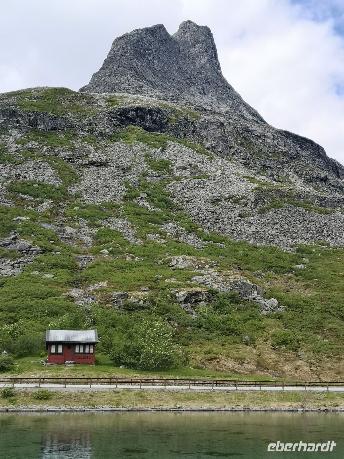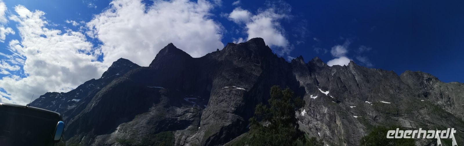 Es lag in der Luft – eine Vorahnung, dass dieser Tag etwas Besonderes wird. Sonnenstrahlen, die Blumenwiesen am Rande unseres Weges, der Rauma Fluss, zuerst ruhig und dann aufbrausend und laut, der rauschende Slettafossen, die Kyllingbrücke und letztlich die Trollwand, wo viele, mit Adrenalin und vielleicht sogar mit Übermut gefüllten Herzen der Bergkletterer ihr letzter Ruheplatz gefunden haben.