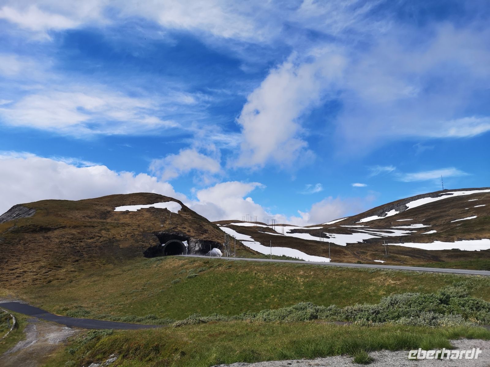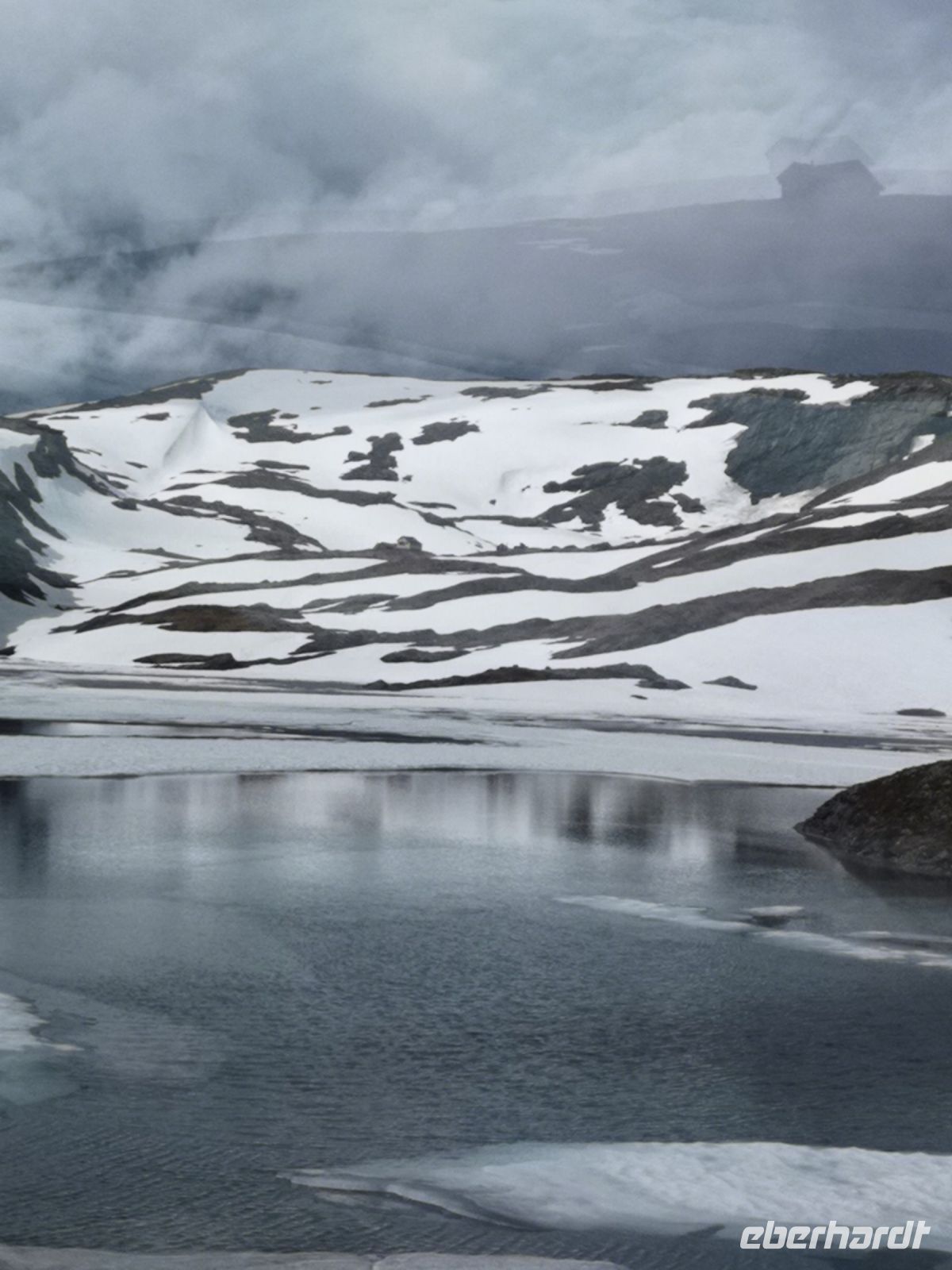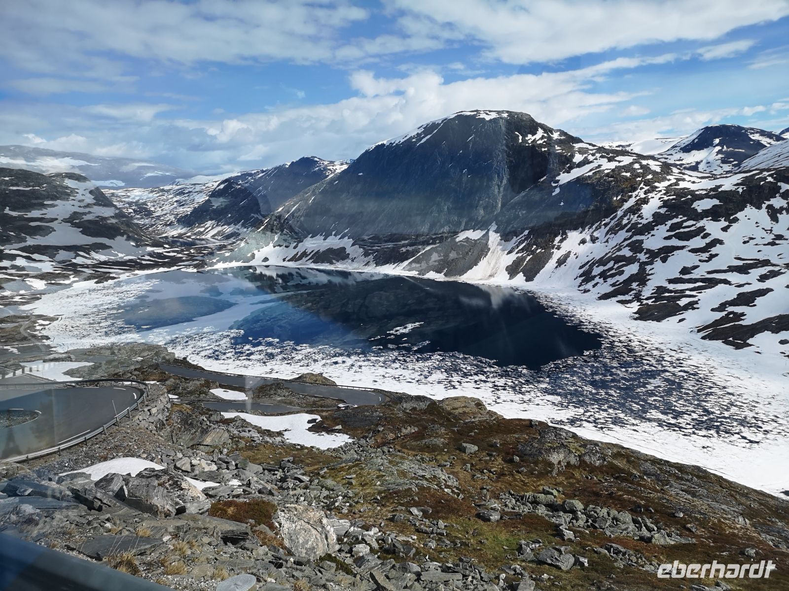 Die Krönung des Tages war allemal die Fahrt auf der Geiranger Strasse. Flydalsjuvet, Knuten und Djupvatnet vorbei und dann weiter auf dem Nibbevegen. Jan und sein Bus waren eins, ruhig und souverän brachten sie uns auf fast 1500m liegende Bergzipfel Dalsnibba mit einem wundervollen Ausblick über die Berge und hinunter zum Geiranger Fjord. Nicht jedem Reisenden ist dieser herrliche Blick gewährleistet, weil immer das Wetter das letzte Wort hat.