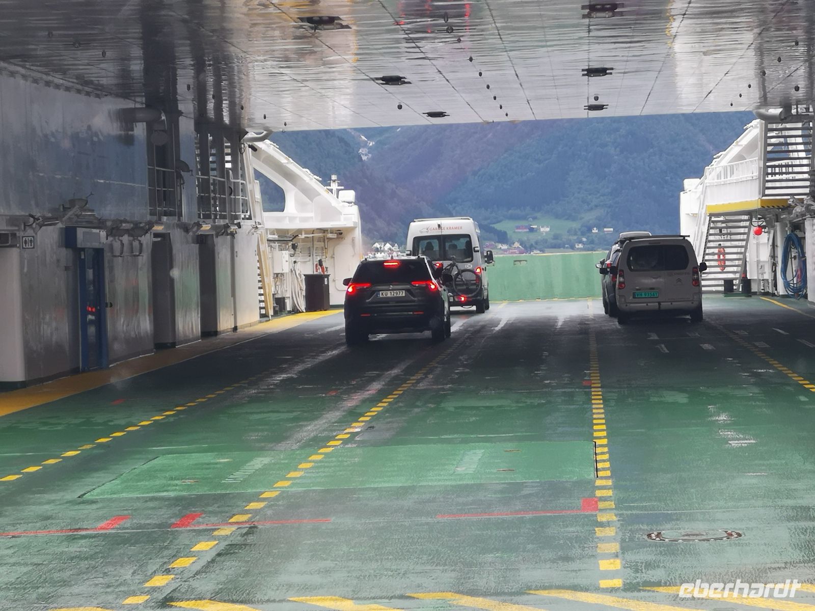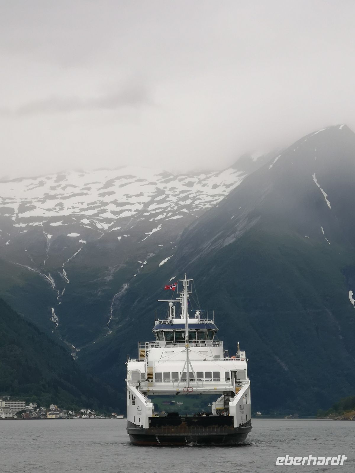 Bei der Klamm vorbei, wo der Gundbrand, zumindest der Legende nach, mit seinen langen Beinen und mit der Müller´s Frau auf den Händen rüber gehupft ist und sich dadurch nicht erwischen ließ –, durch das liebliche Valldal führte uns der Weg bis Linge, wo wir zum ersten Mal mit einem norwegischen „Bus“ – die Fähre über Fjord – fuhren.